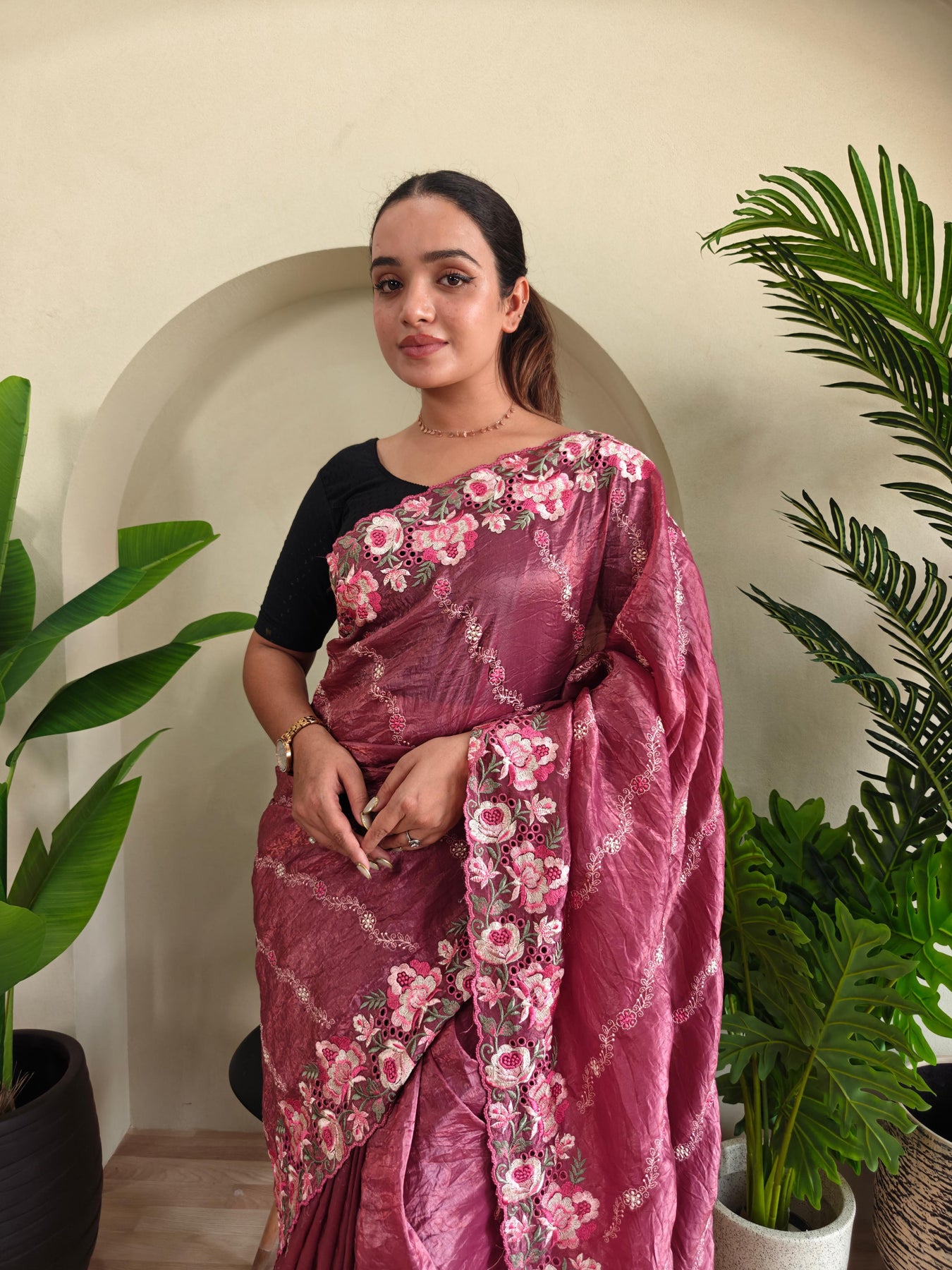 Delight Pink Woven Banarasi Designer Tissue Silk Saree With Embroidered Blouse