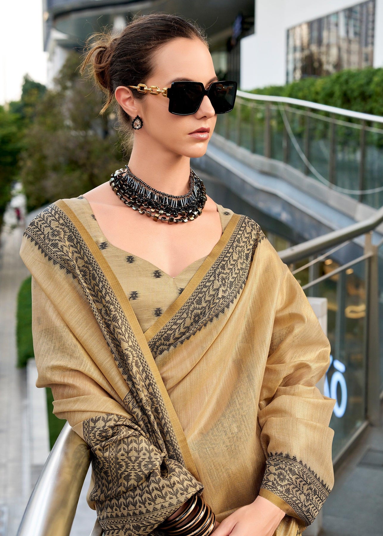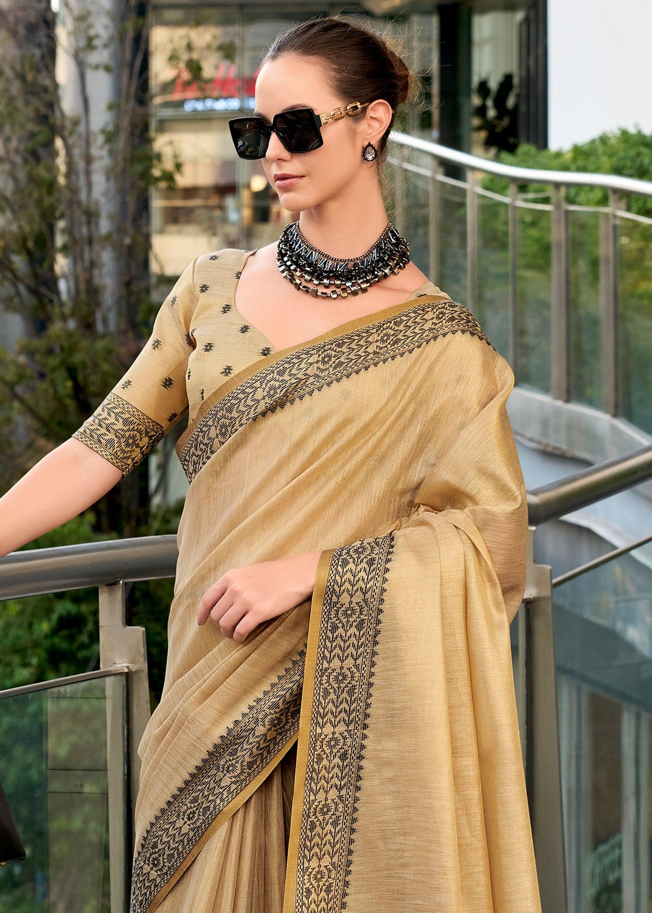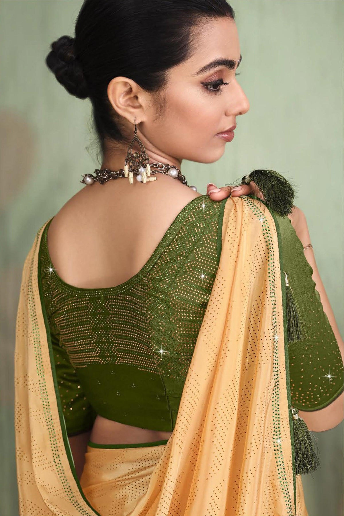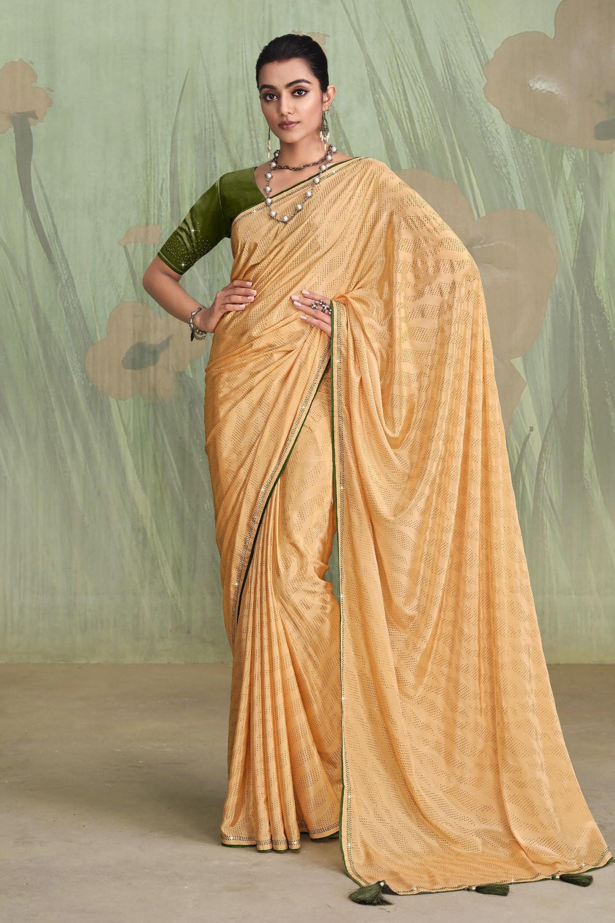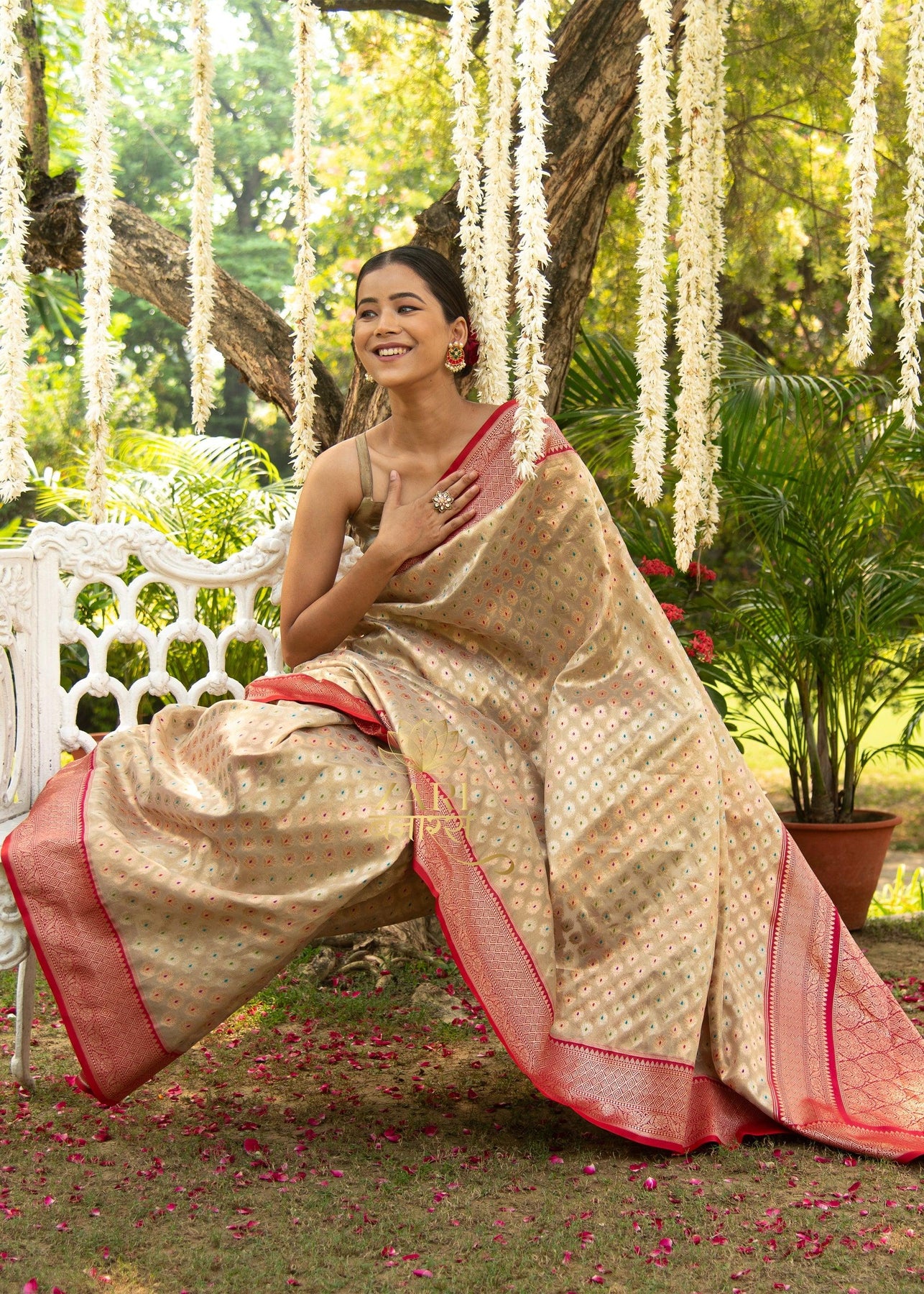 Incredible Satin Crepe Beige Color Saree With Contrast Blouse