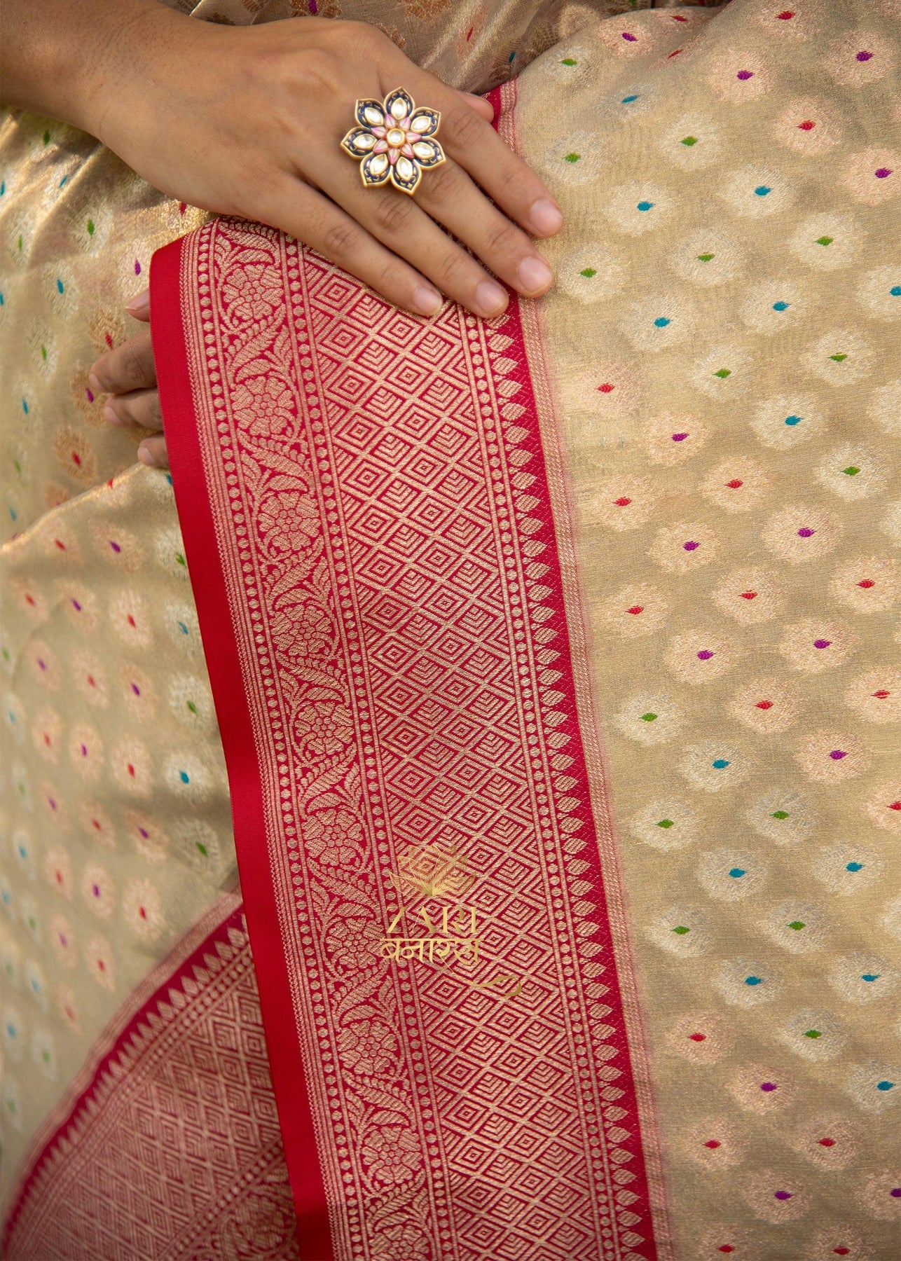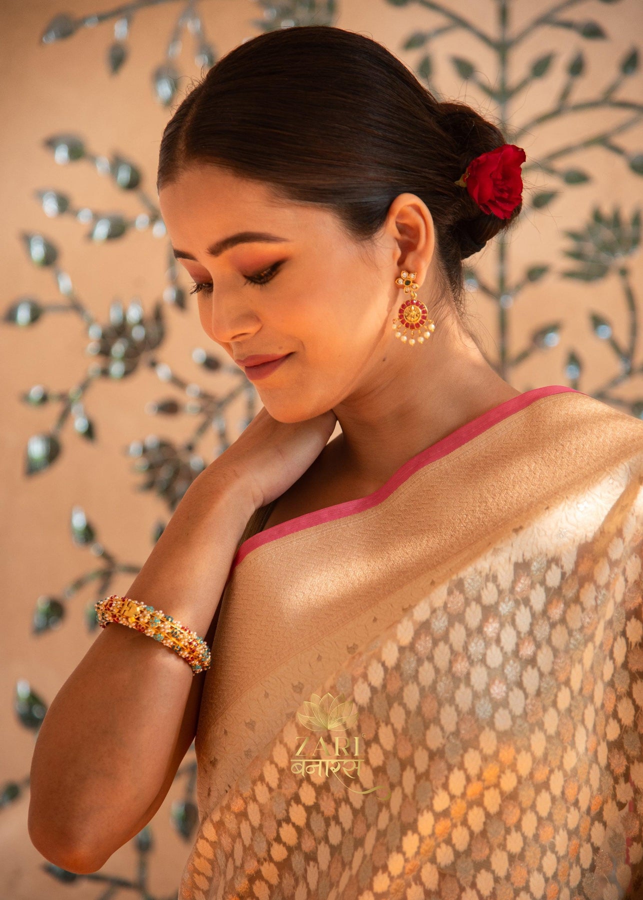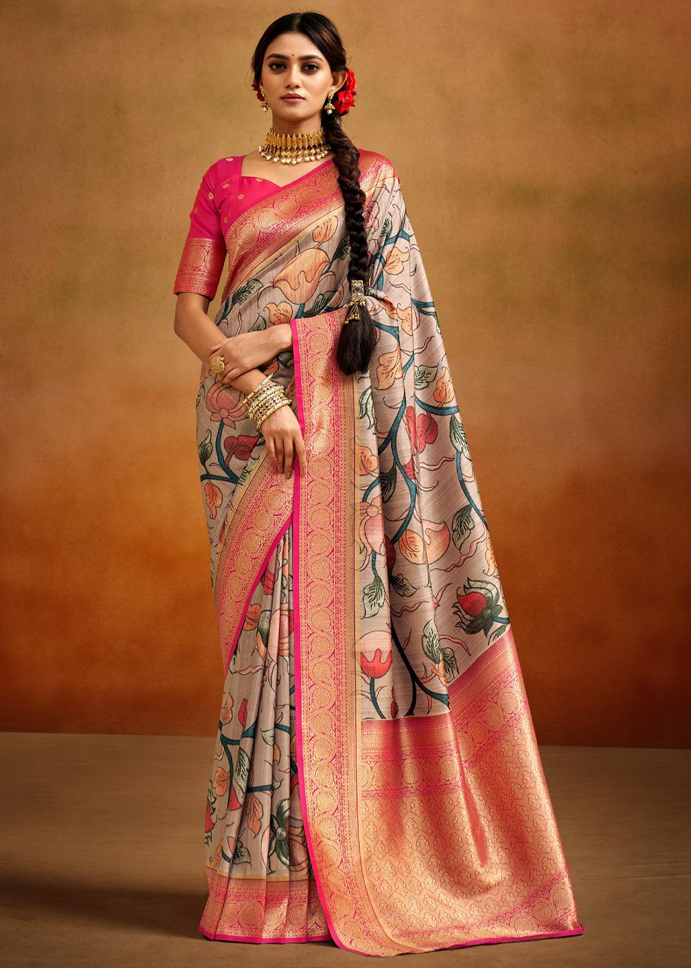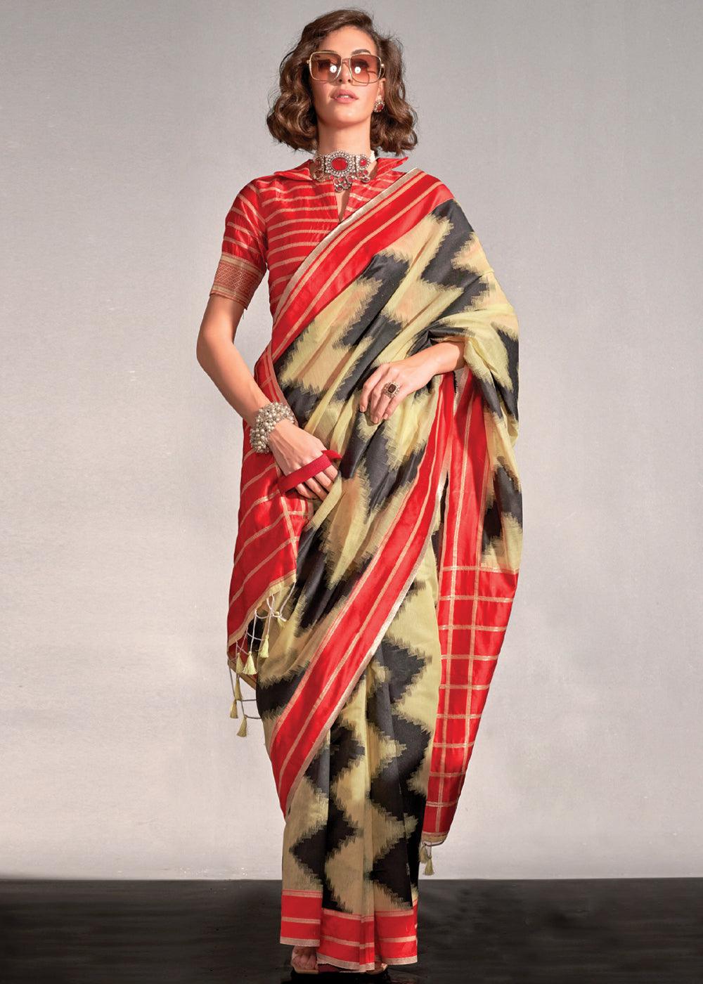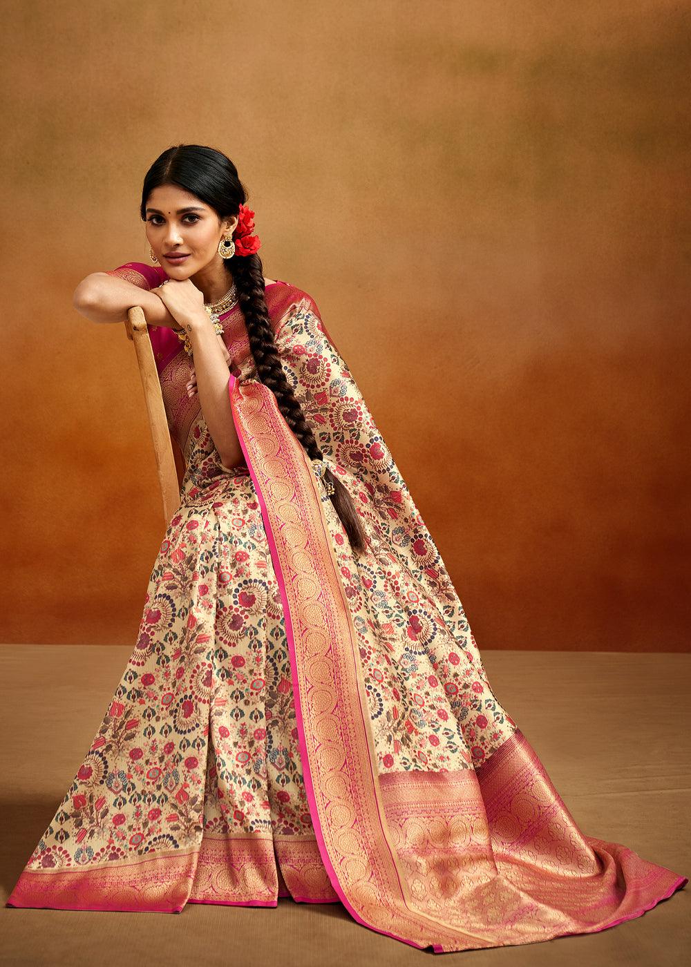 Incredible Satin Crepe Beige Color Saree With Contrast Blouse