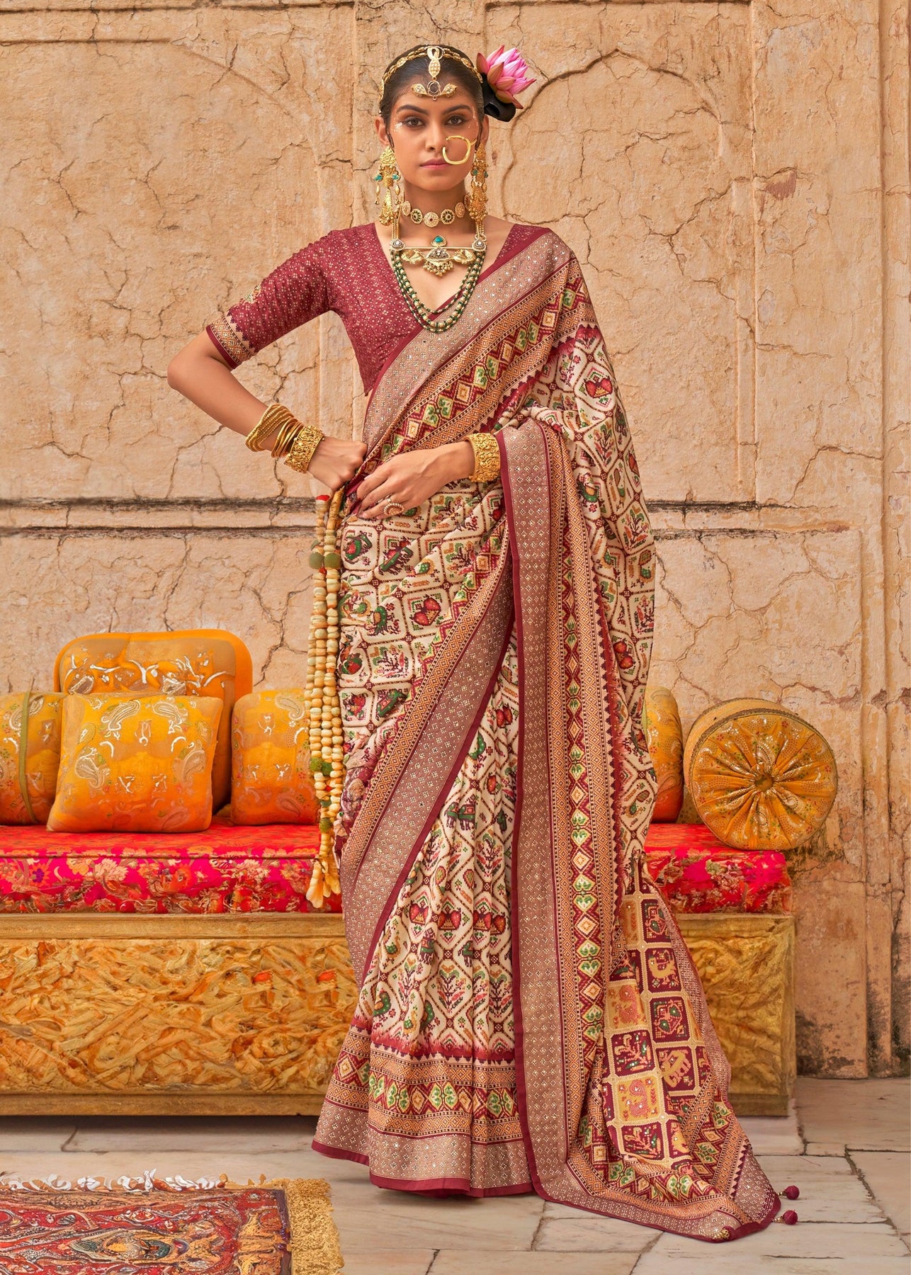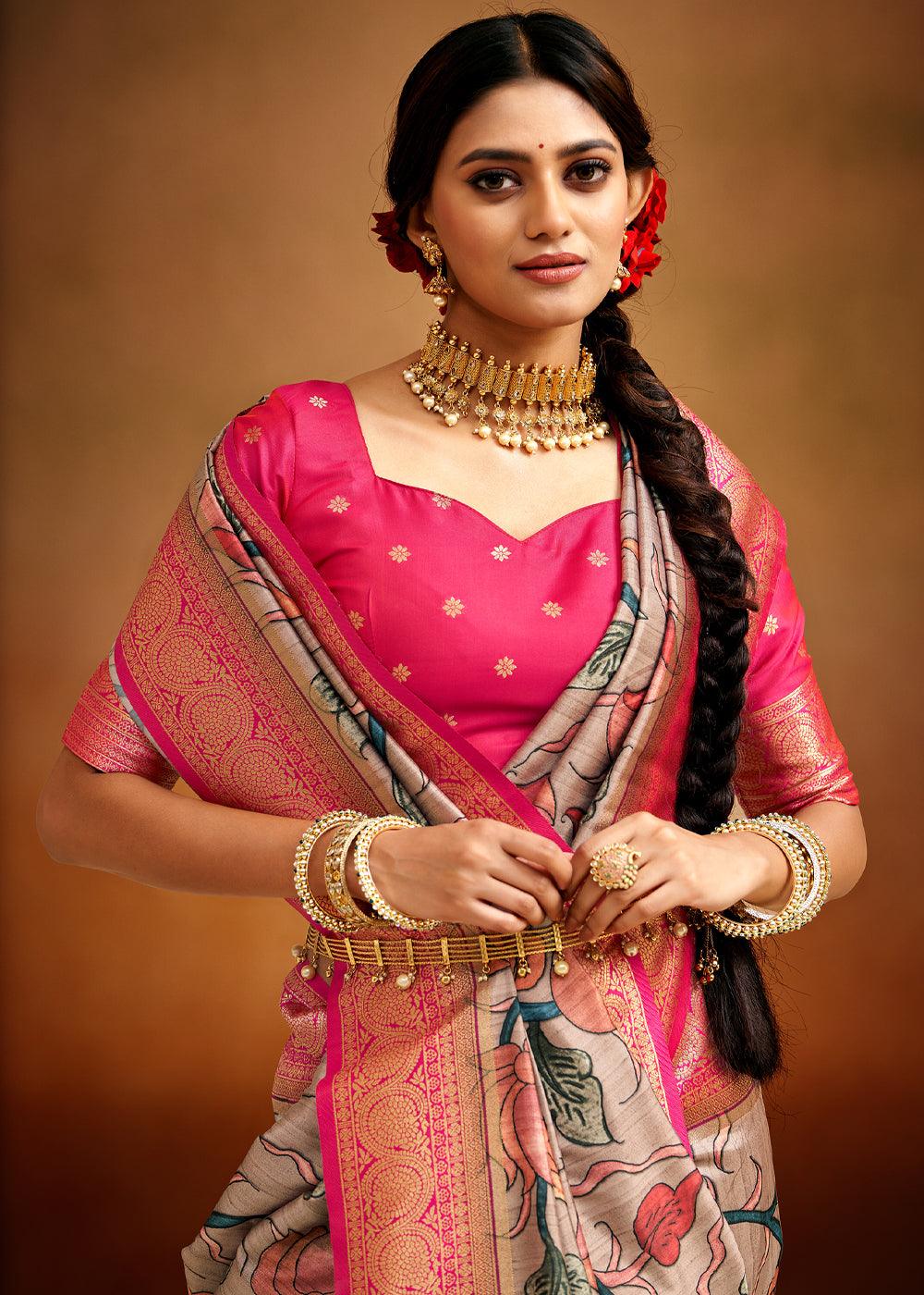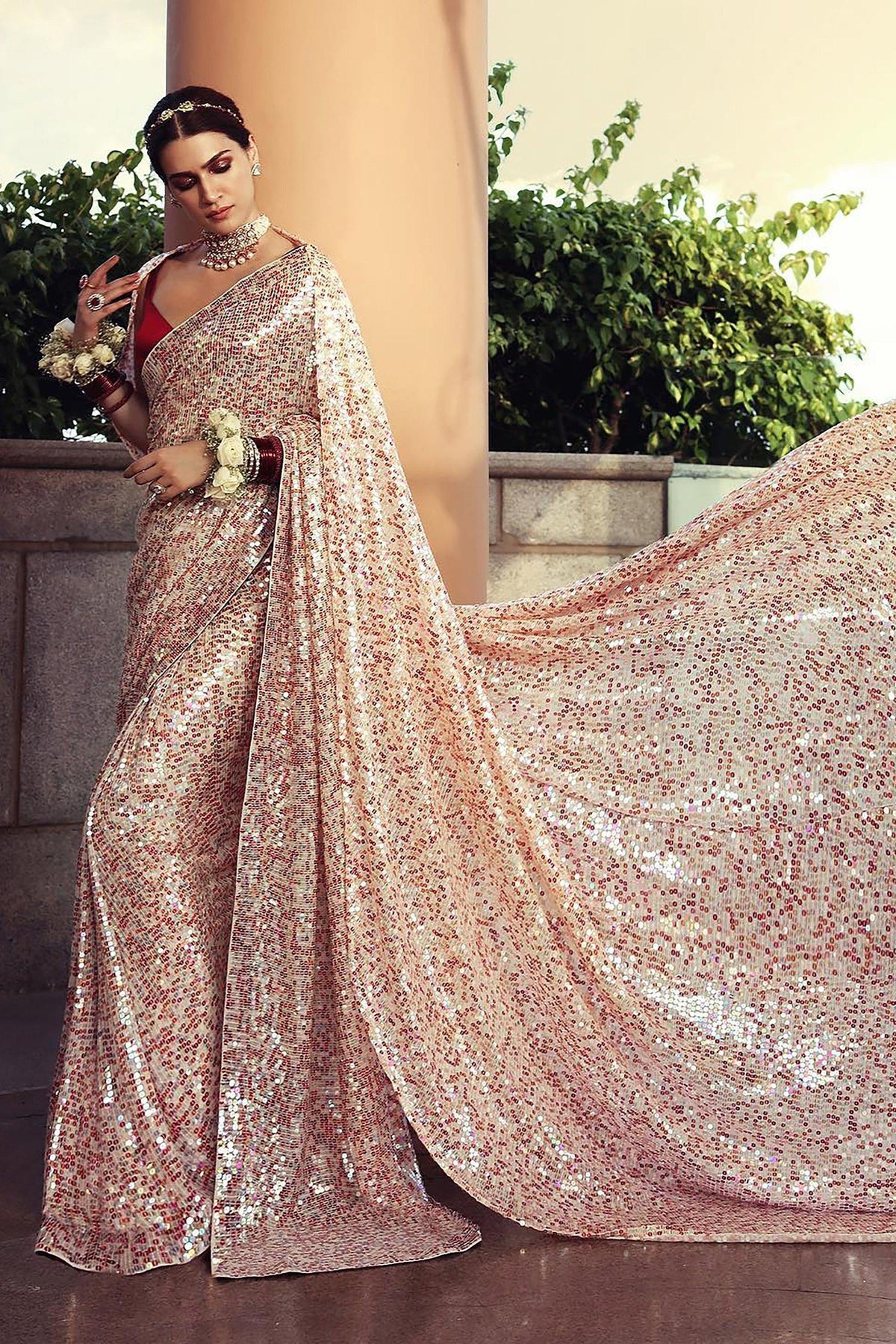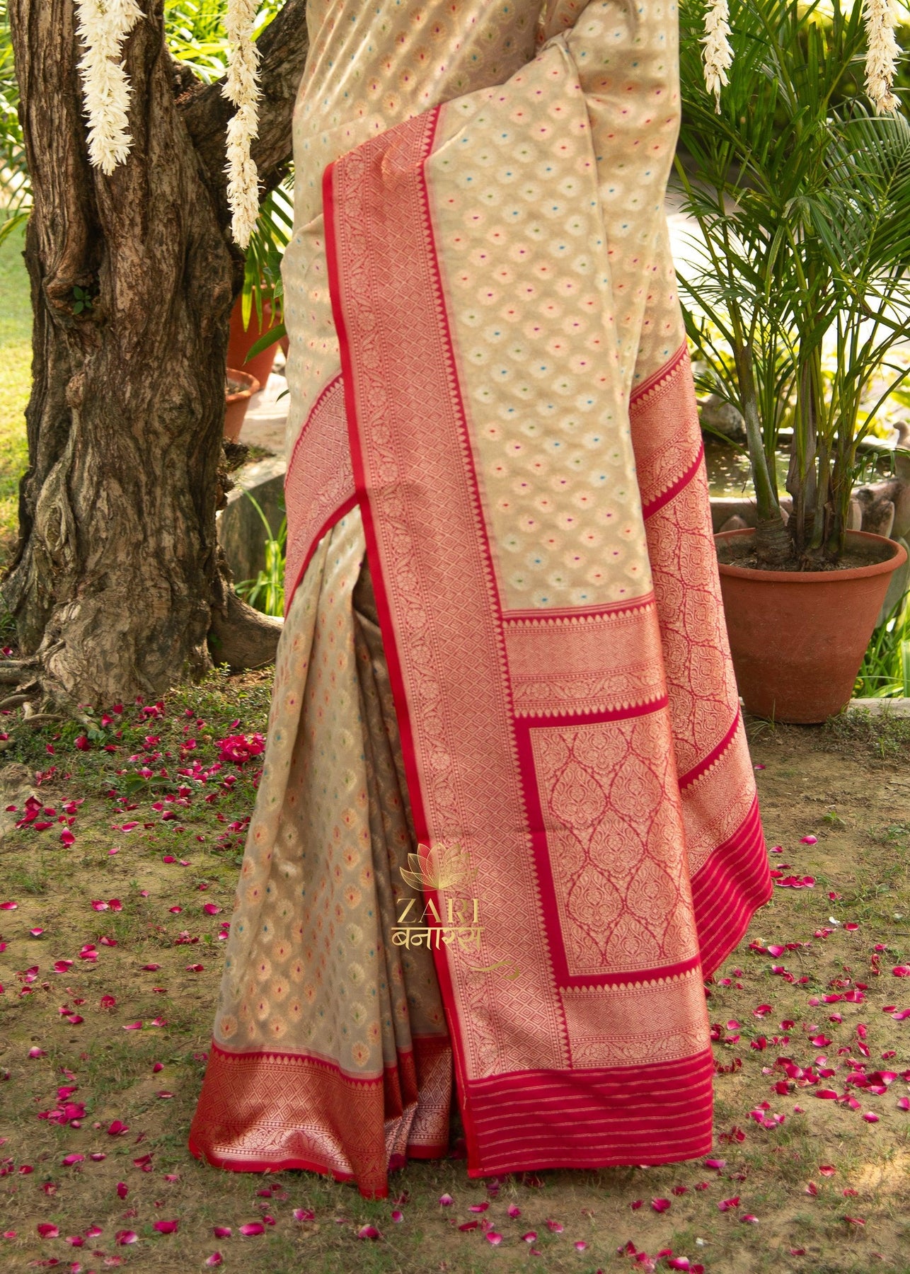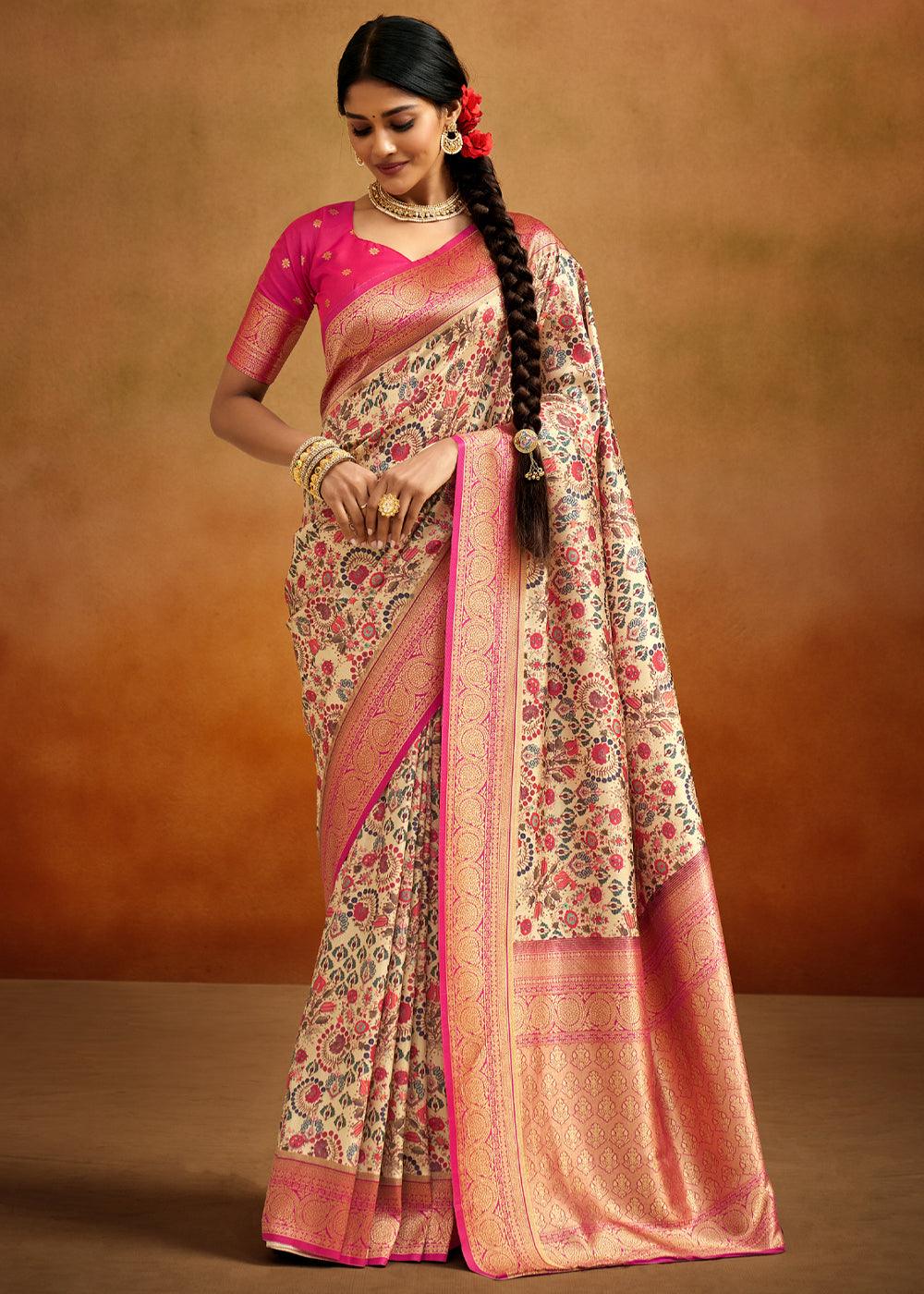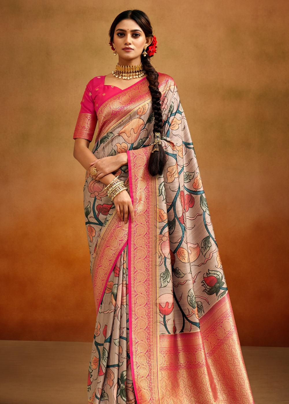 Incredible Satin Crepe Beige Color Saree With Contrast Blouse