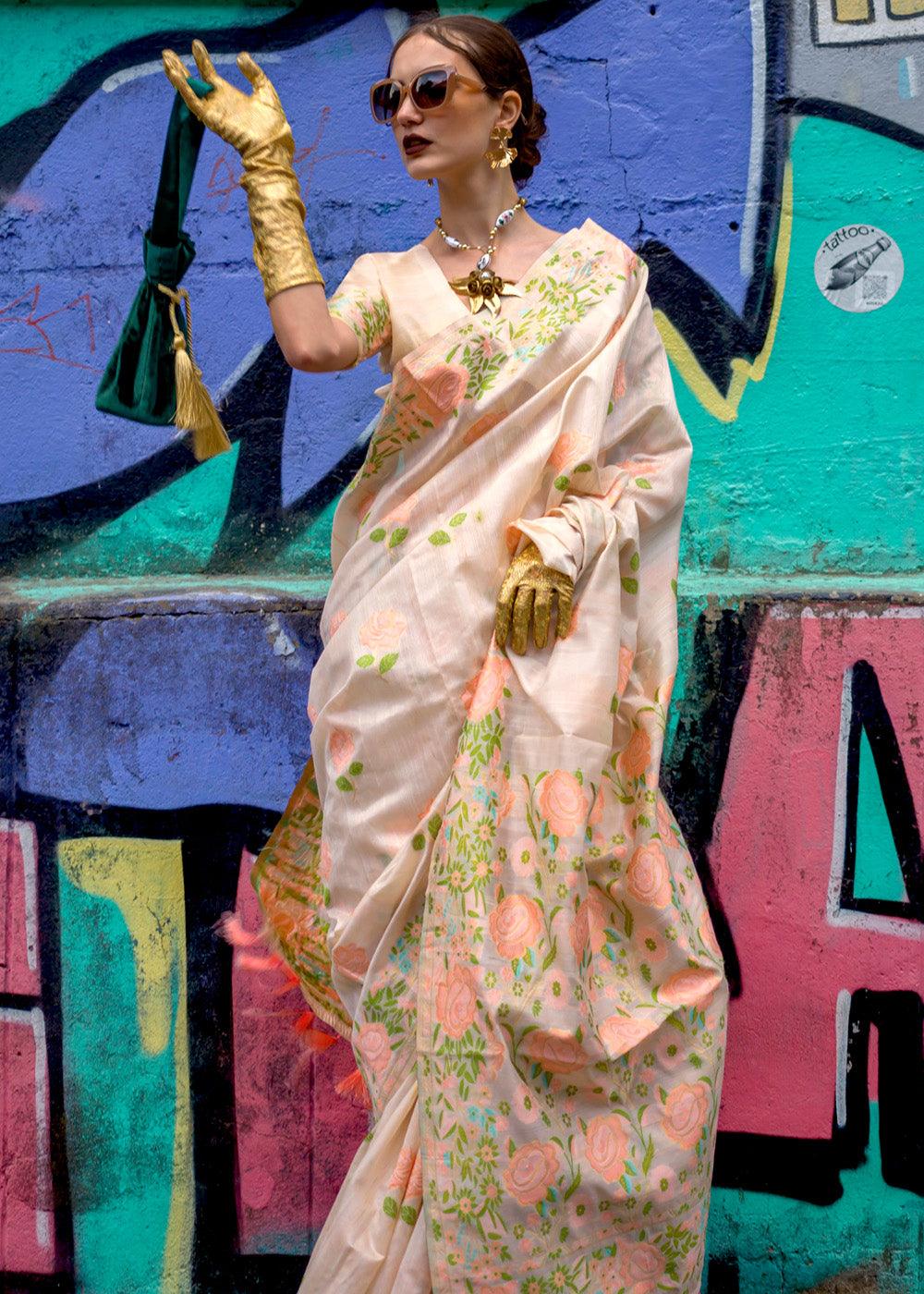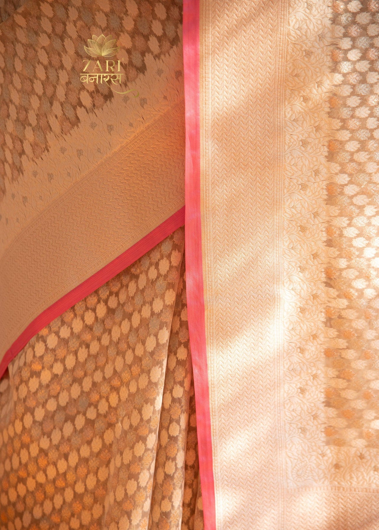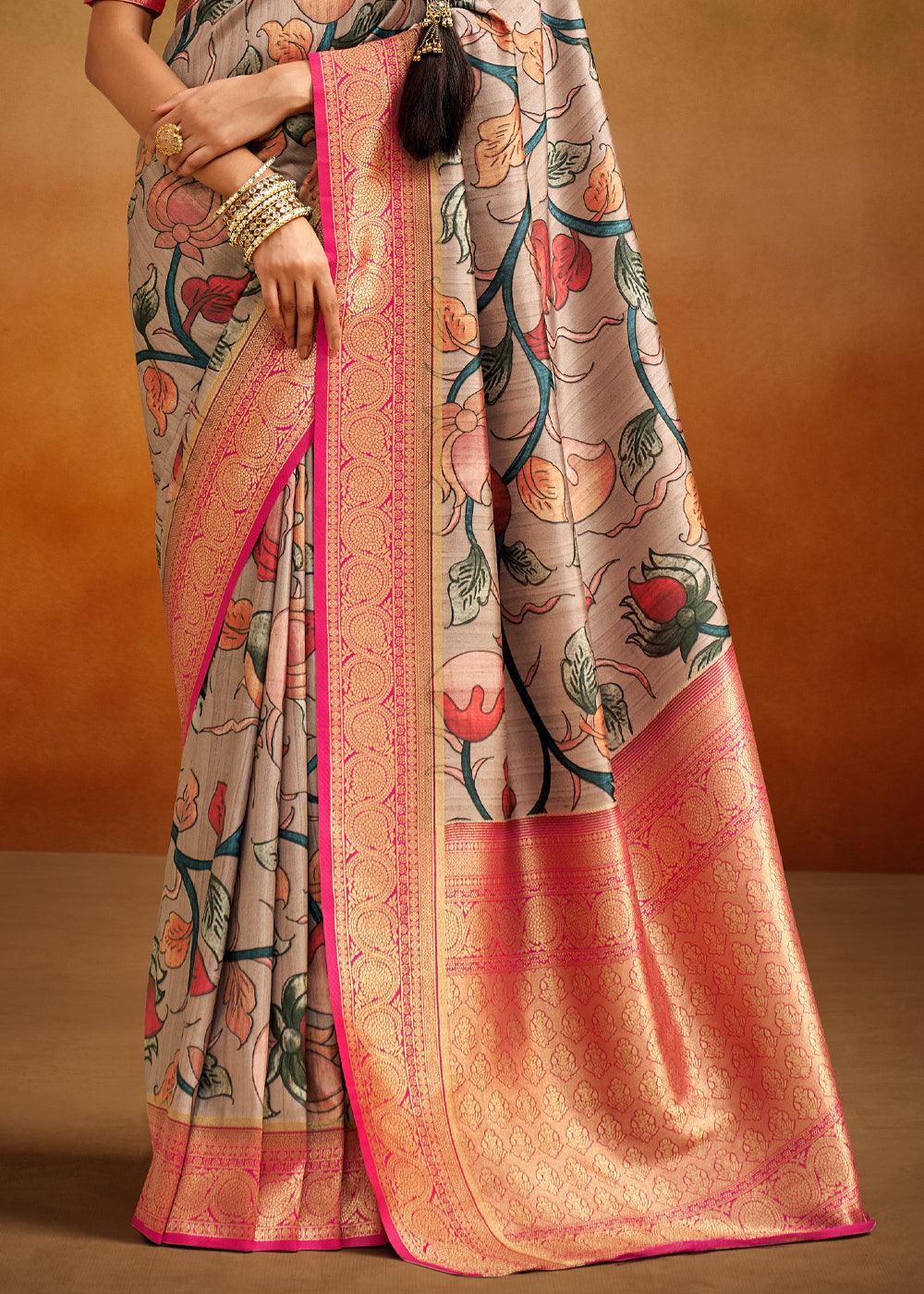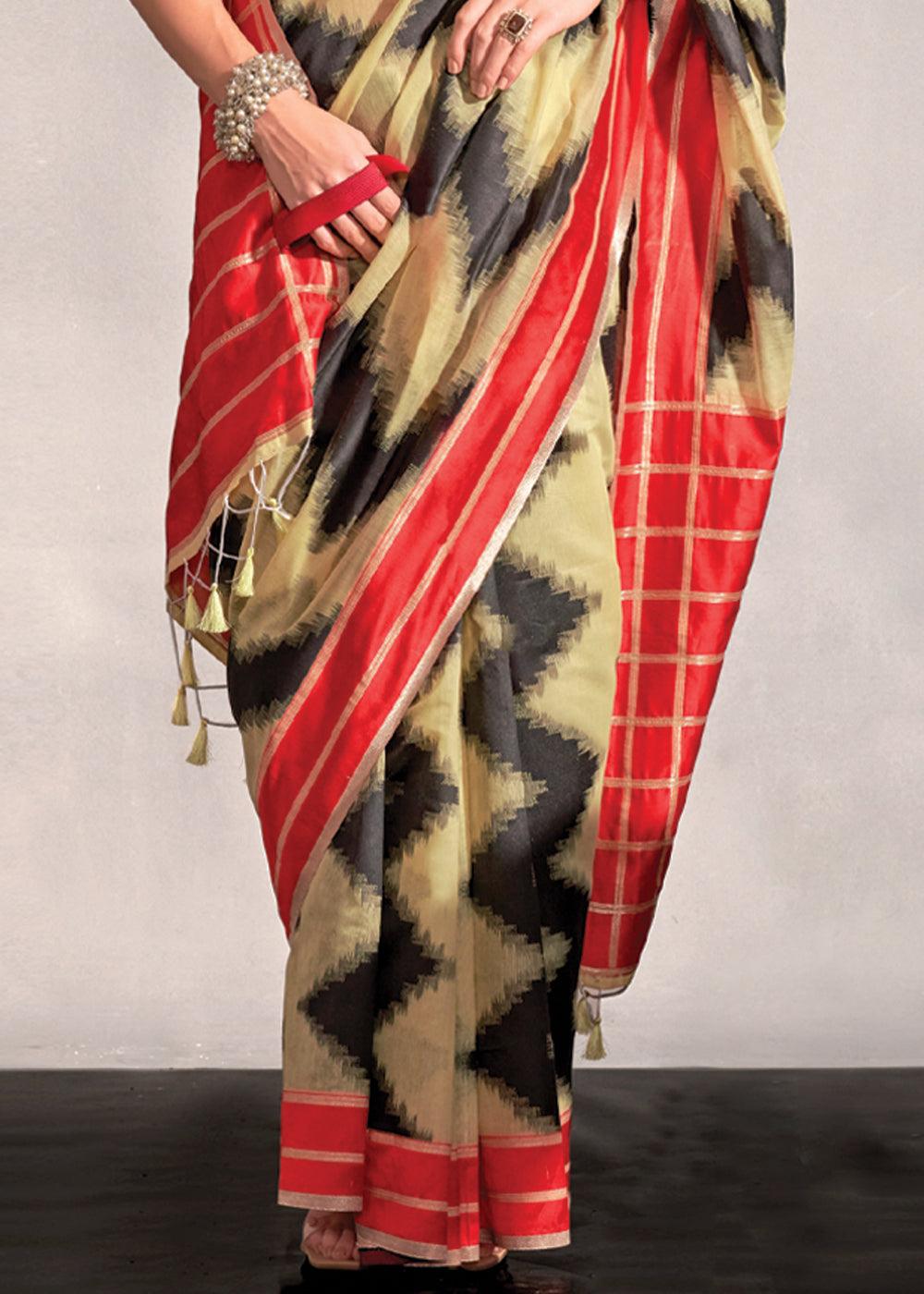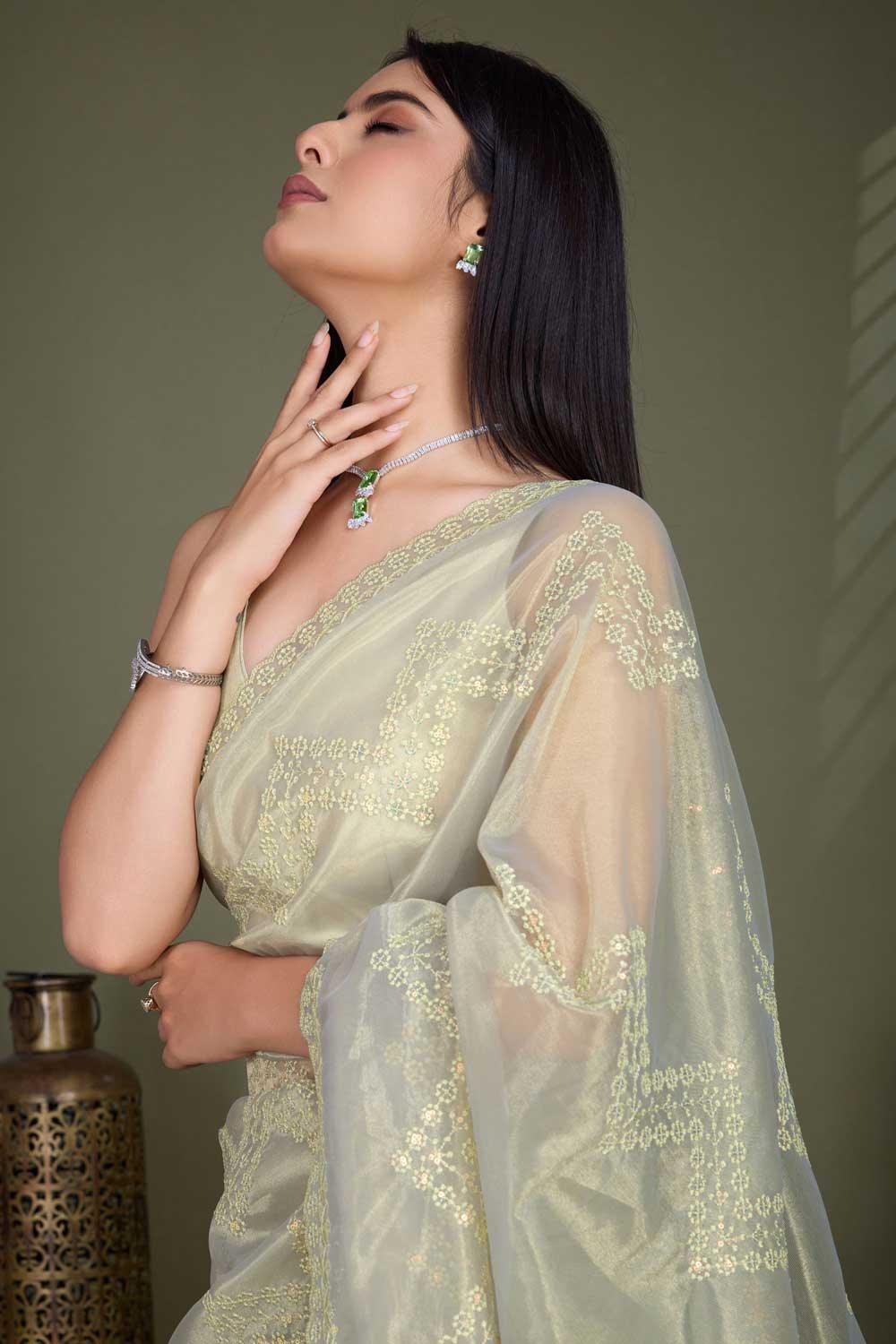 Incredible Satin Crepe Beige Color Saree With Contrast Blouse
