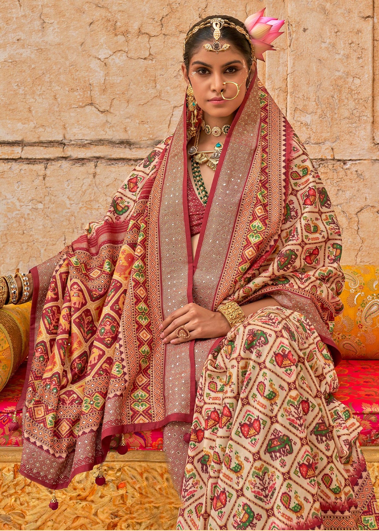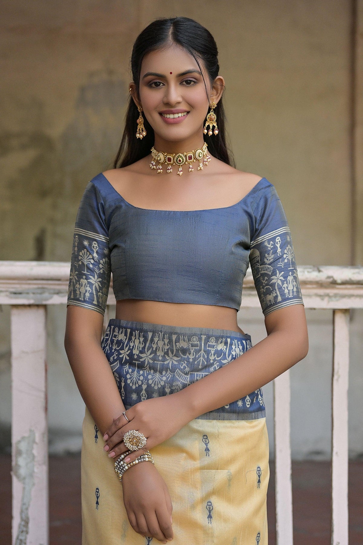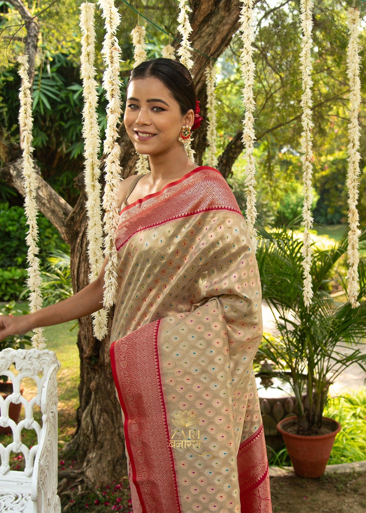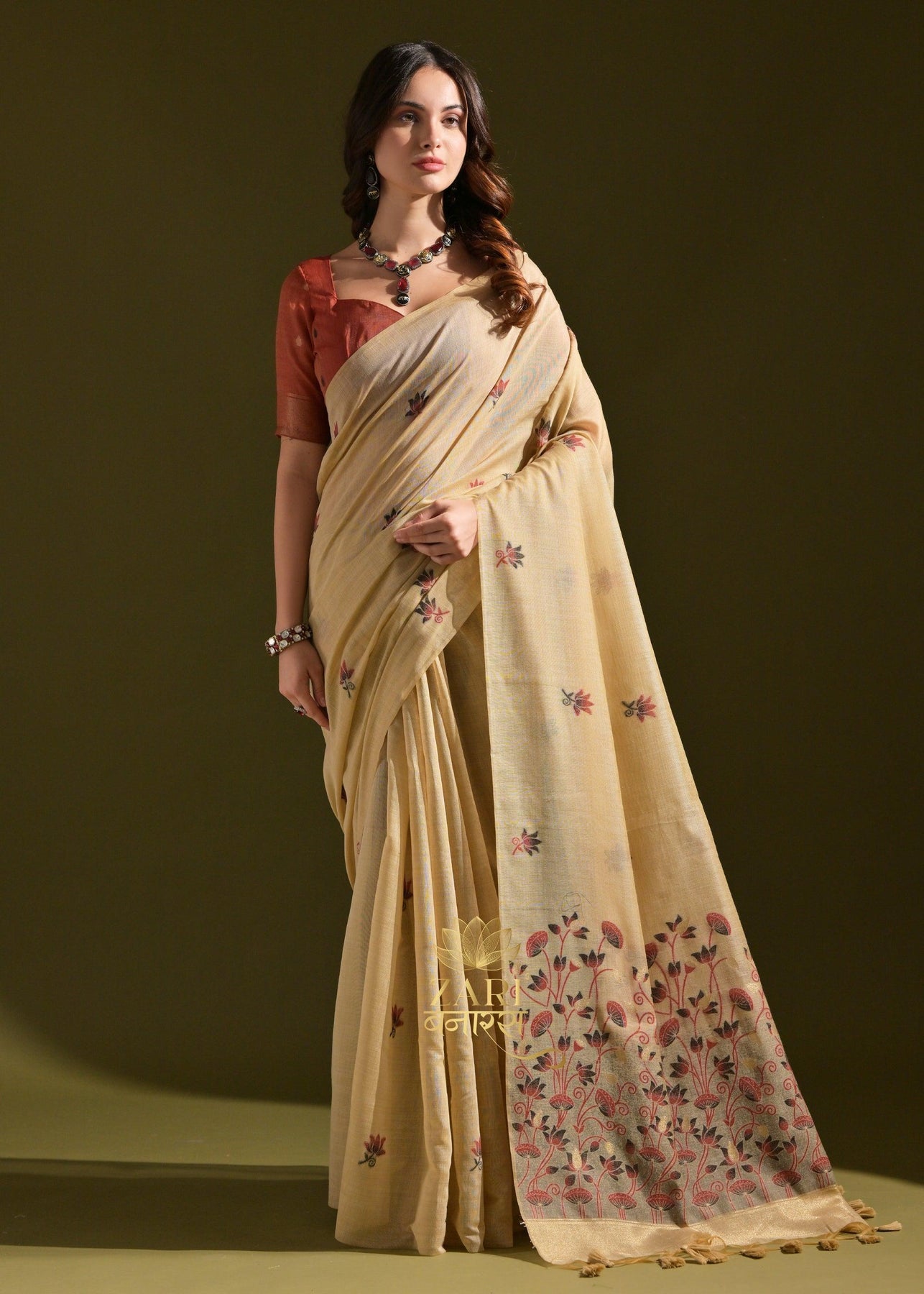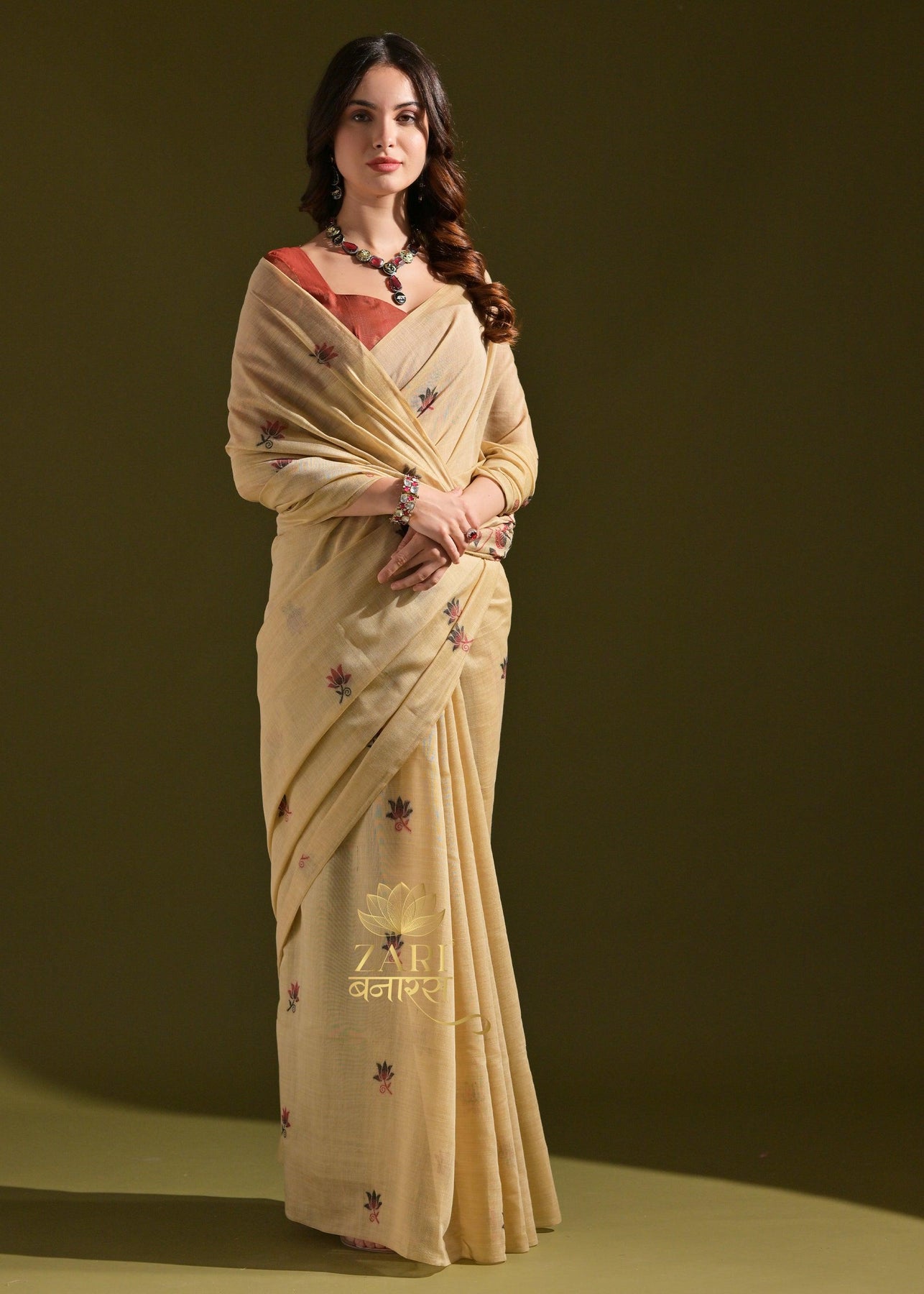 Incredible Satin Crepe Beige Color Saree With Contrast Blouse