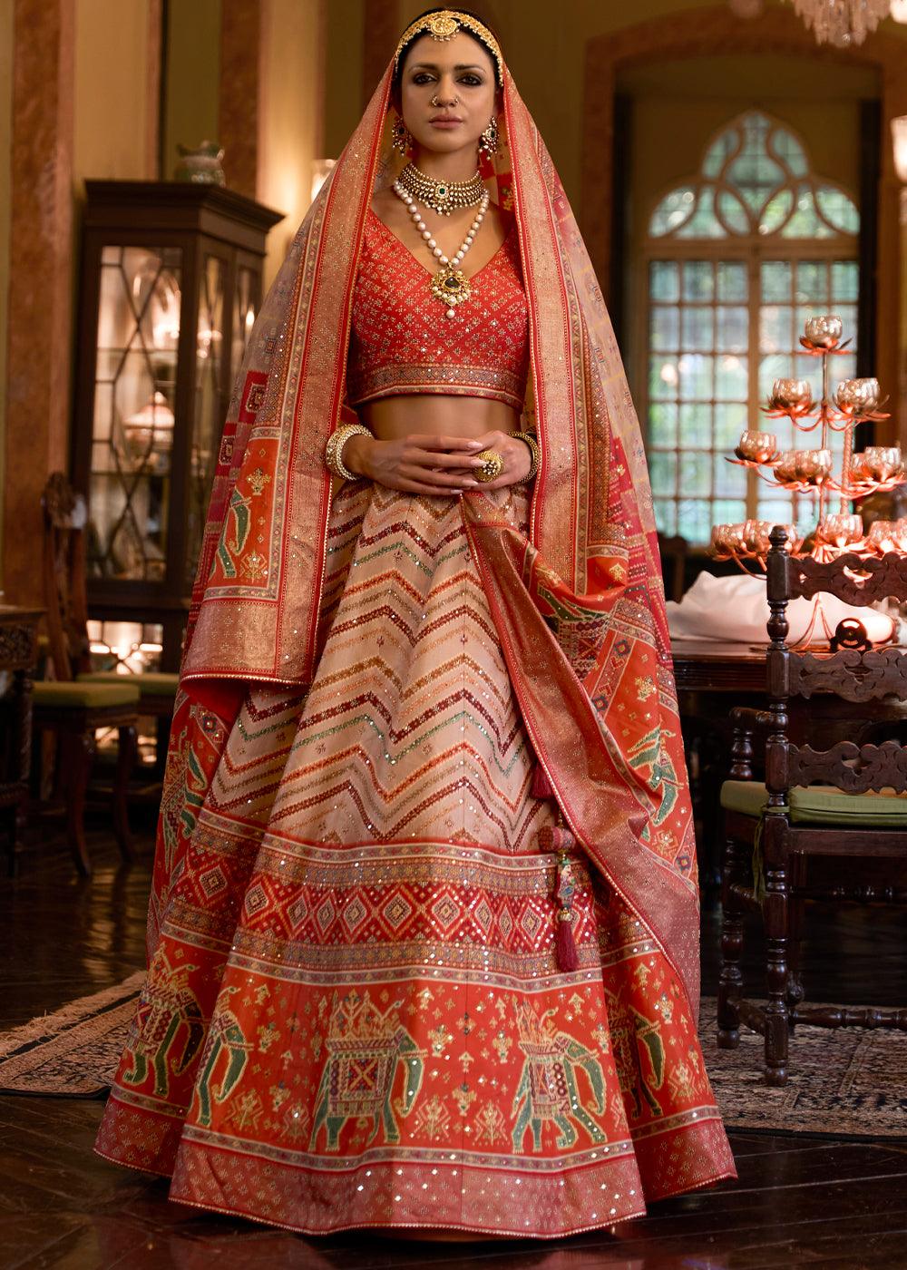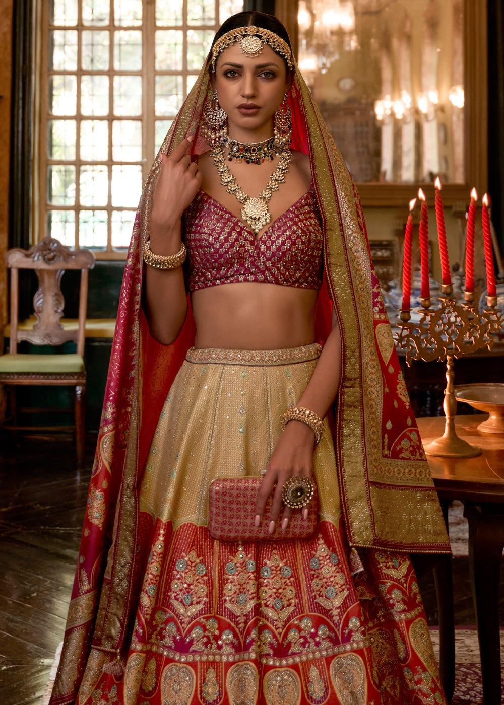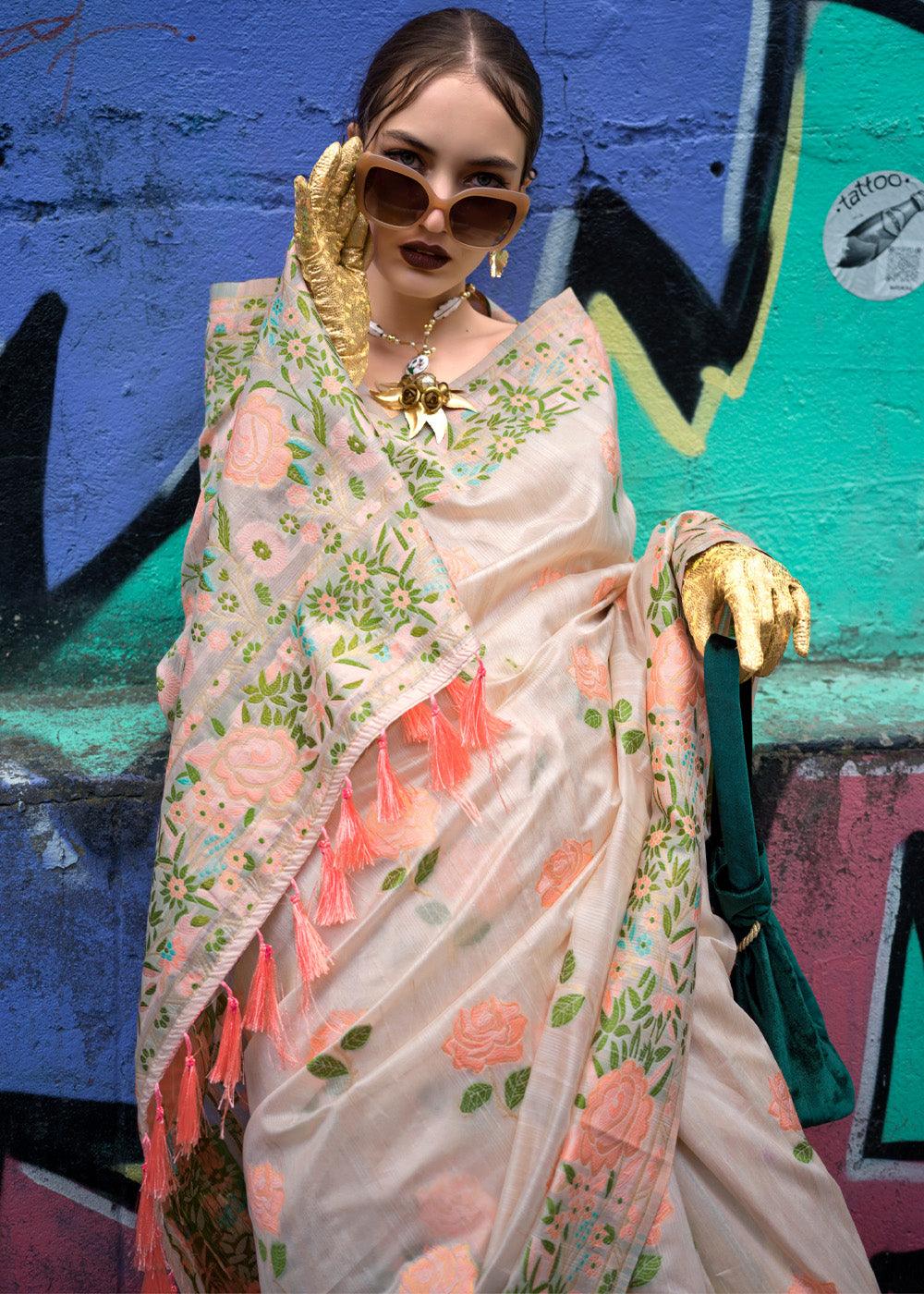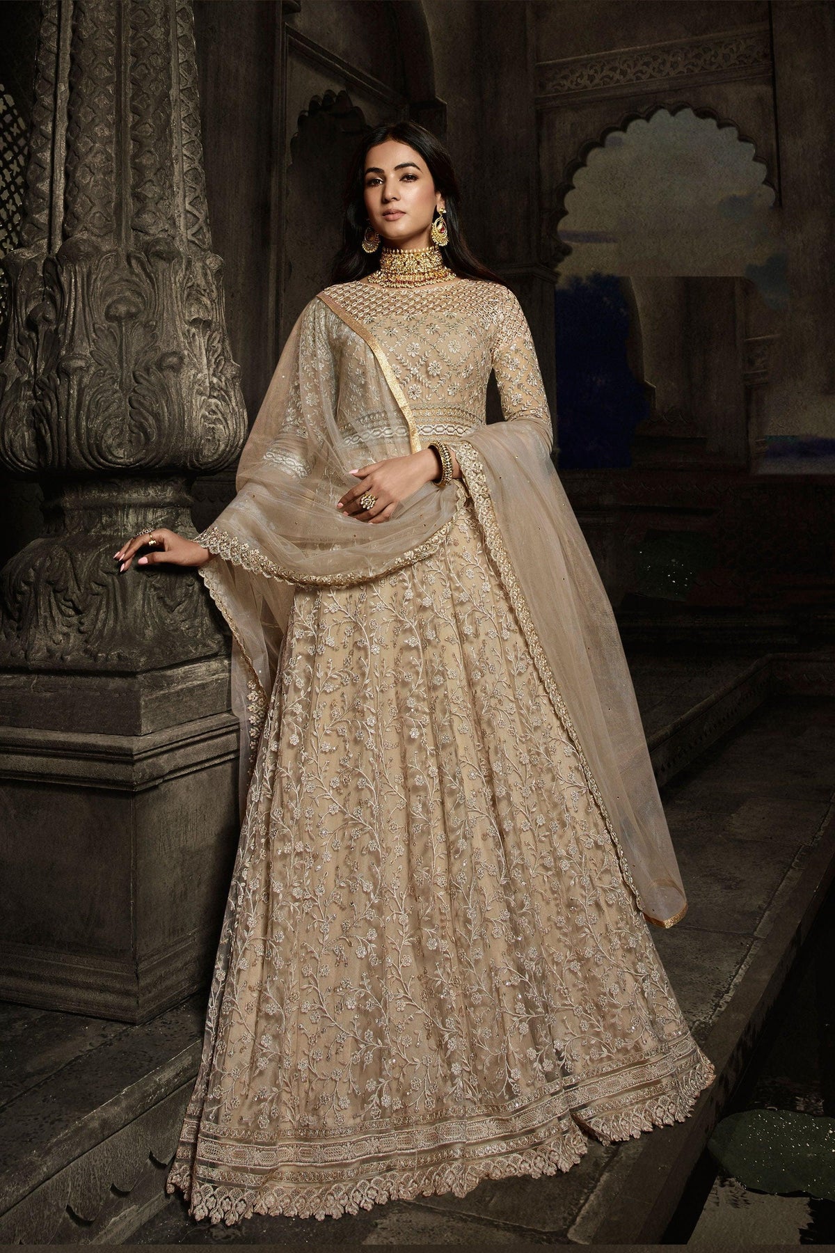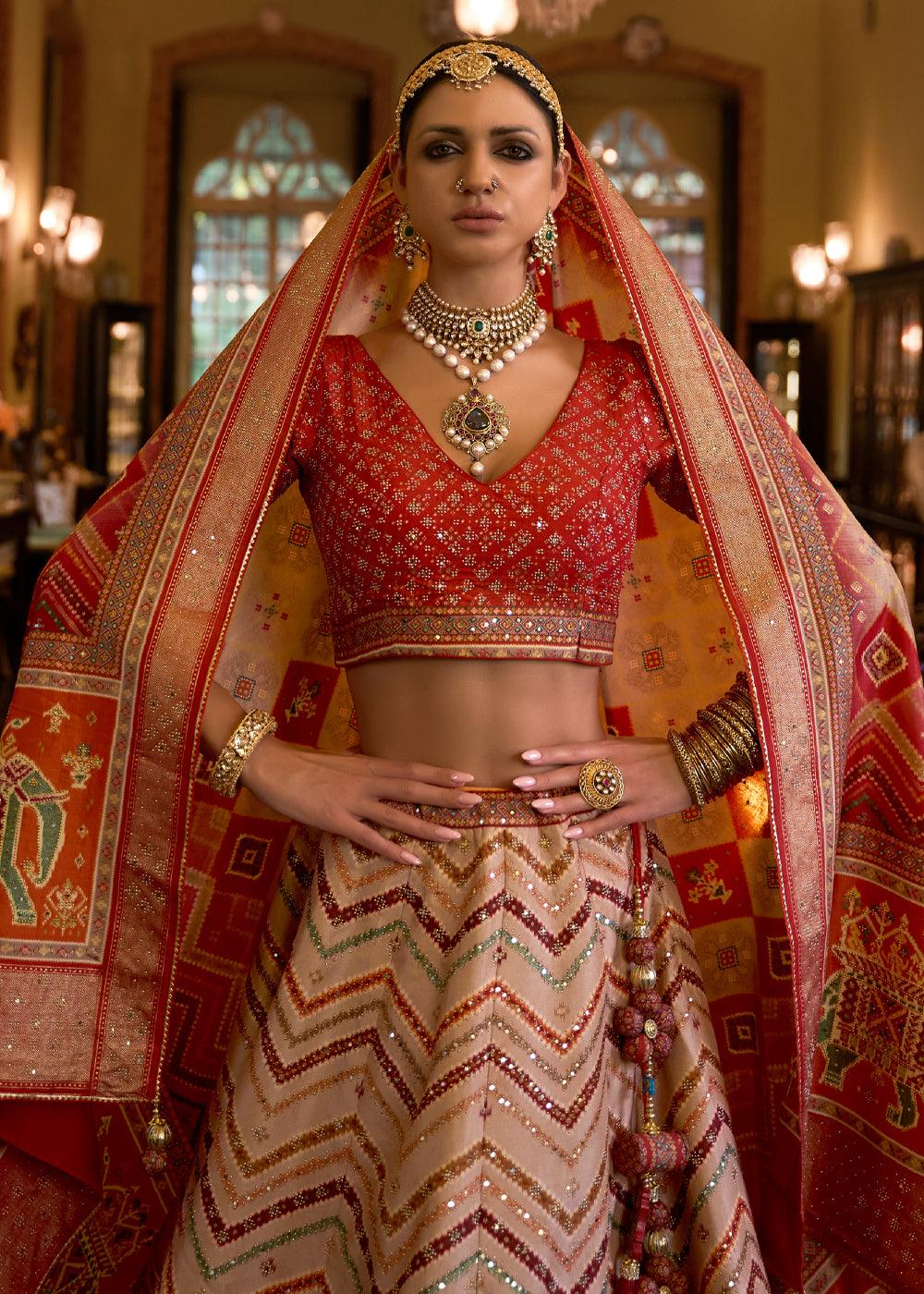 Incredible Satin Crepe Beige Color Saree With Contrast Blouse
