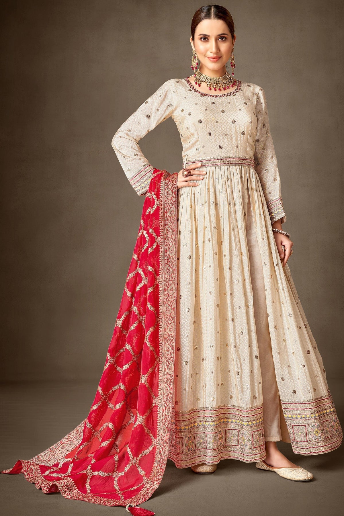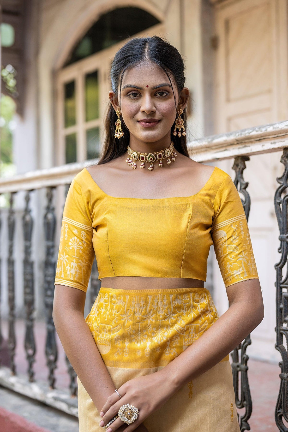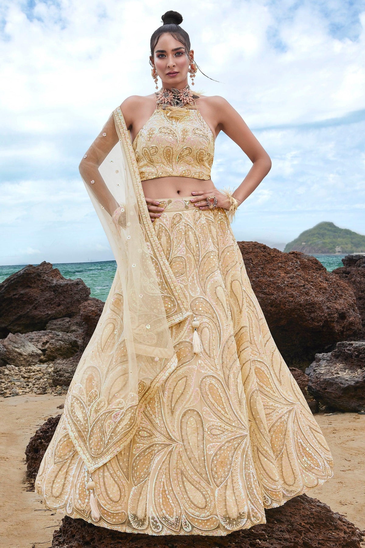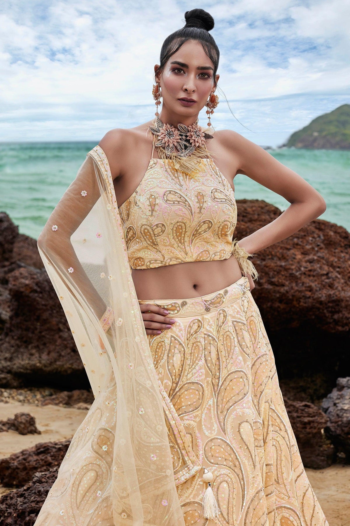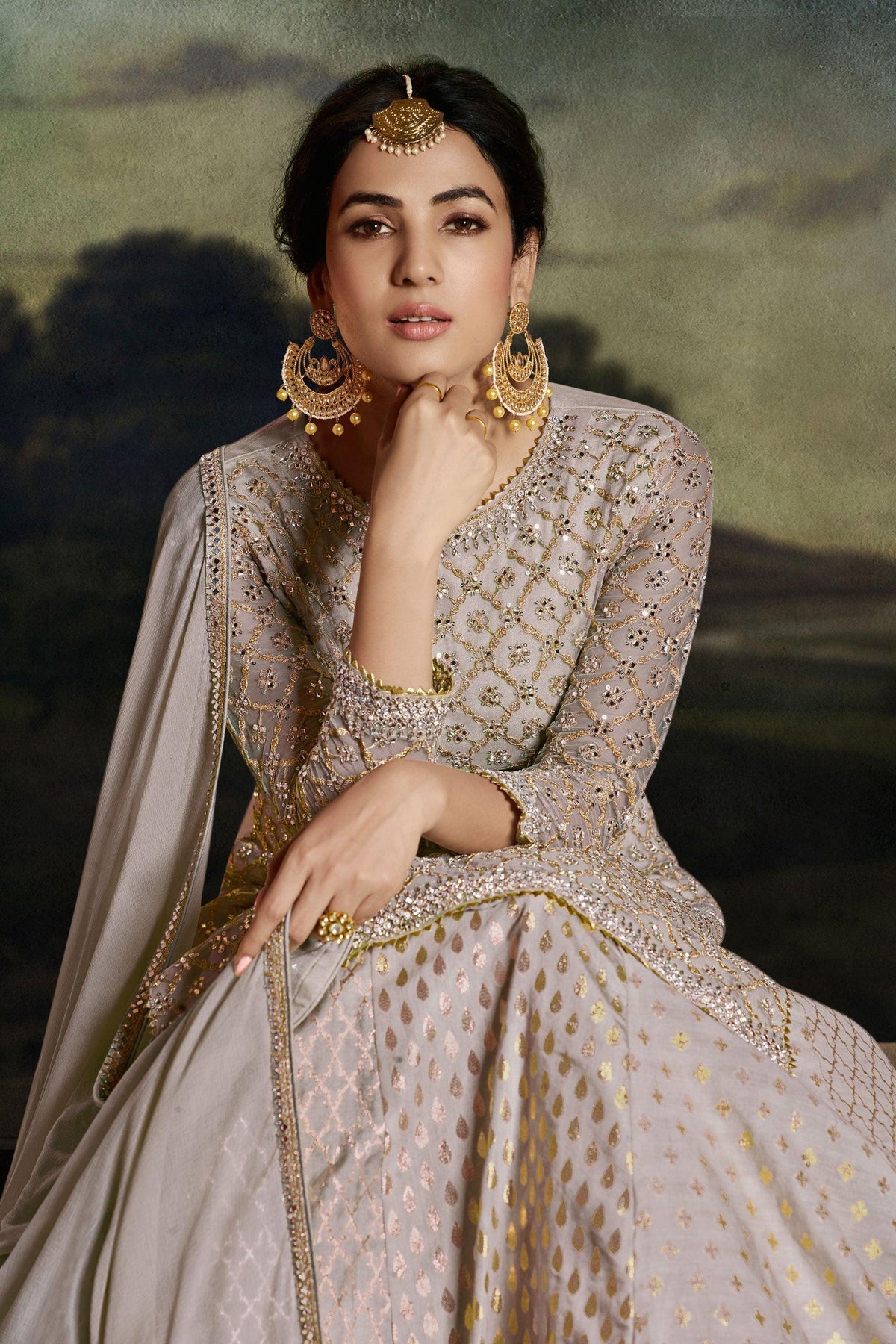 Incredible Satin Crepe Beige Color Saree With Contrast Blouse