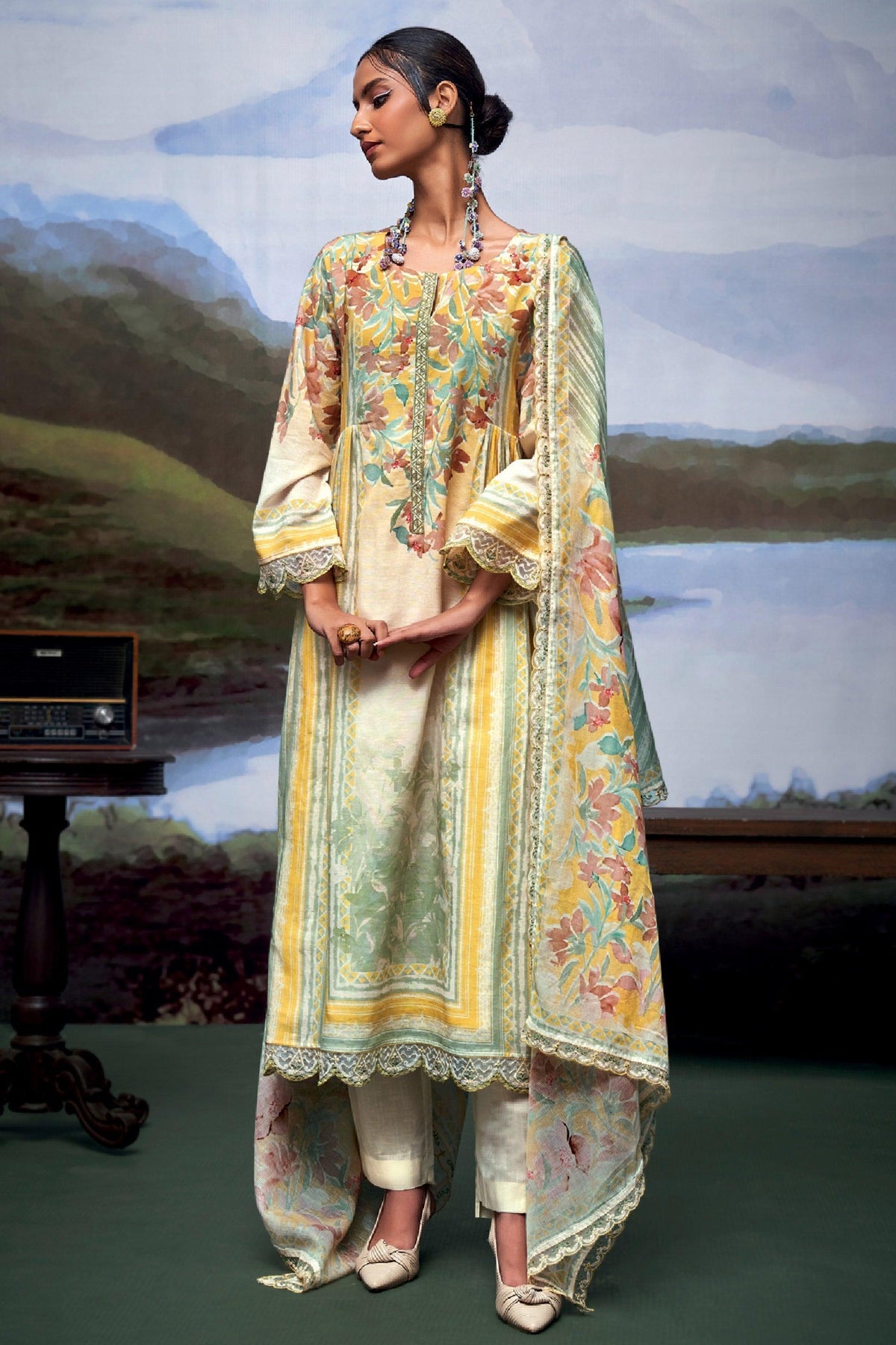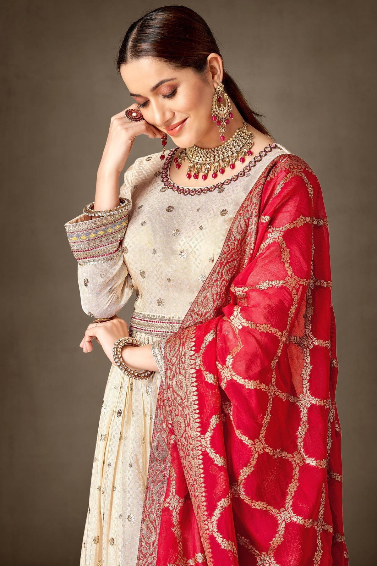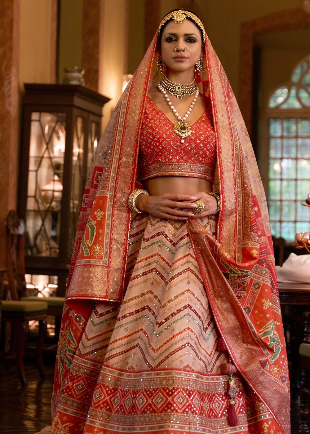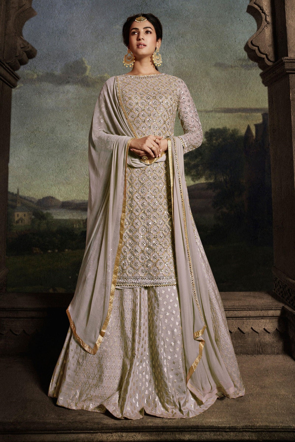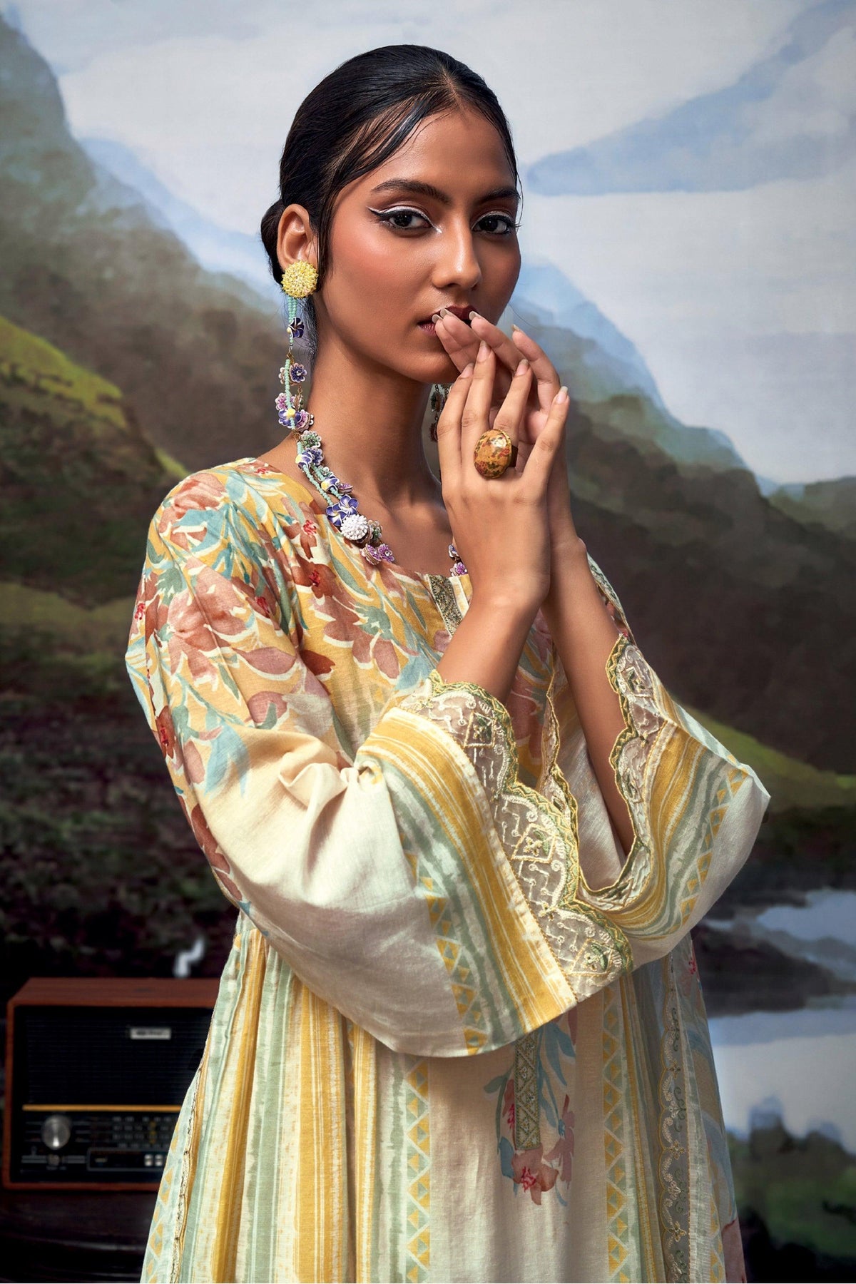 Incredible Satin Crepe Beige Color Saree With Contrast Blouse