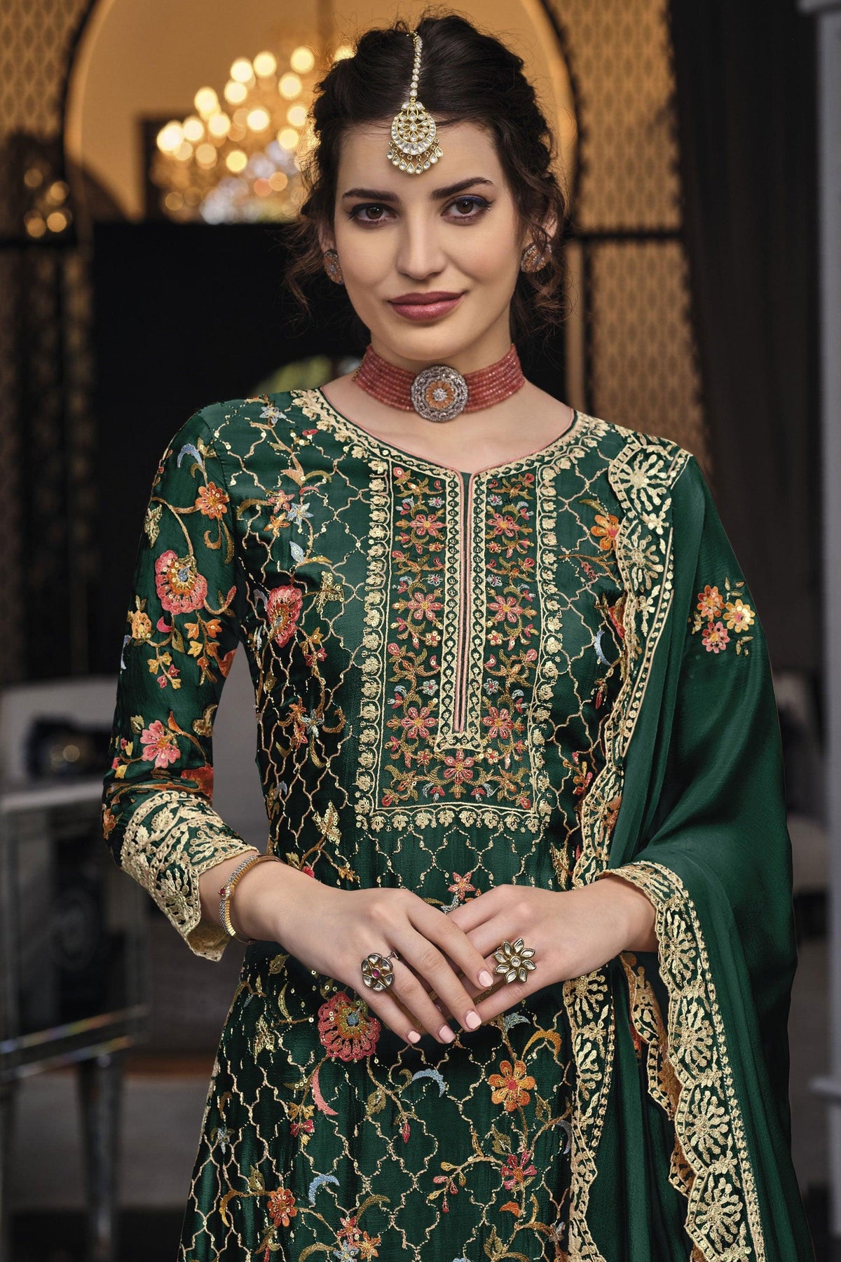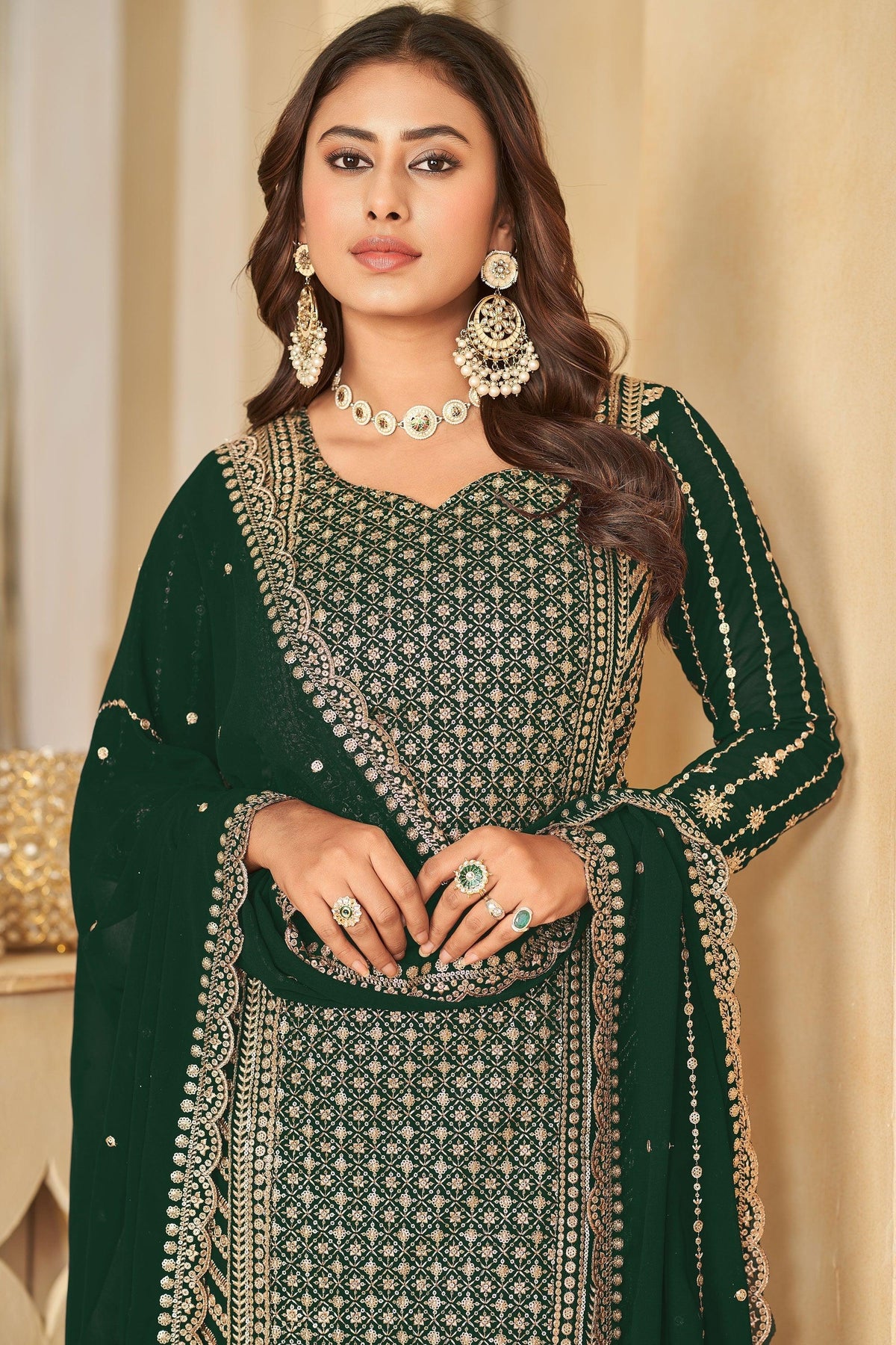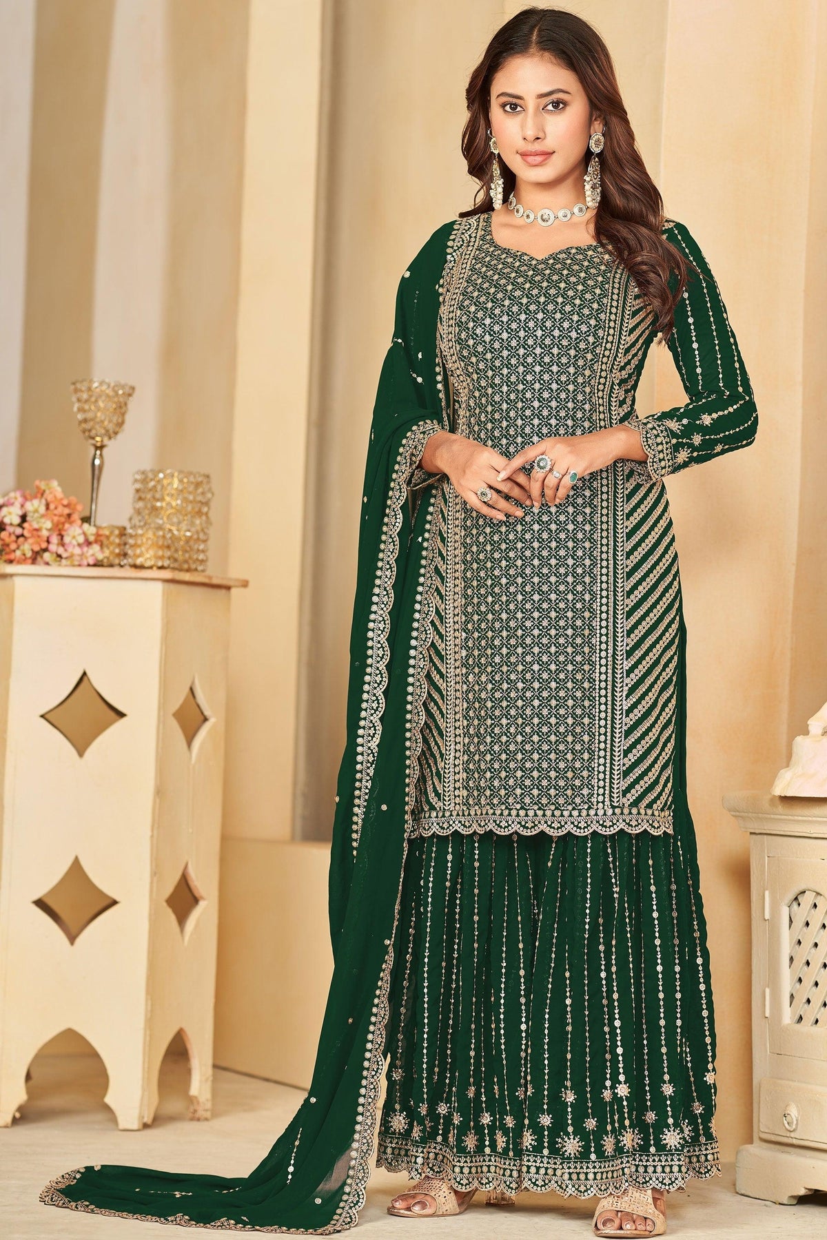 Classic Sea Green Color Function Wear Salwar Suit In Muslin Fabric