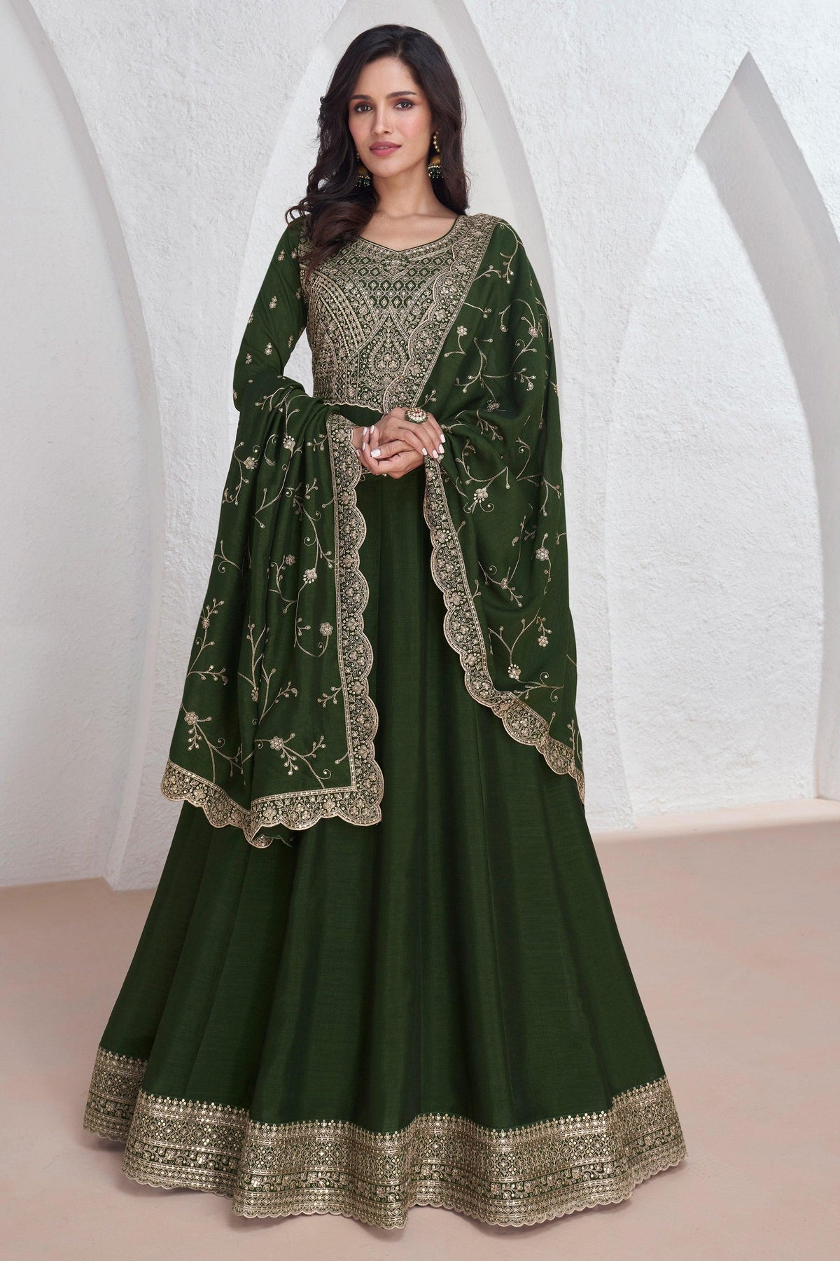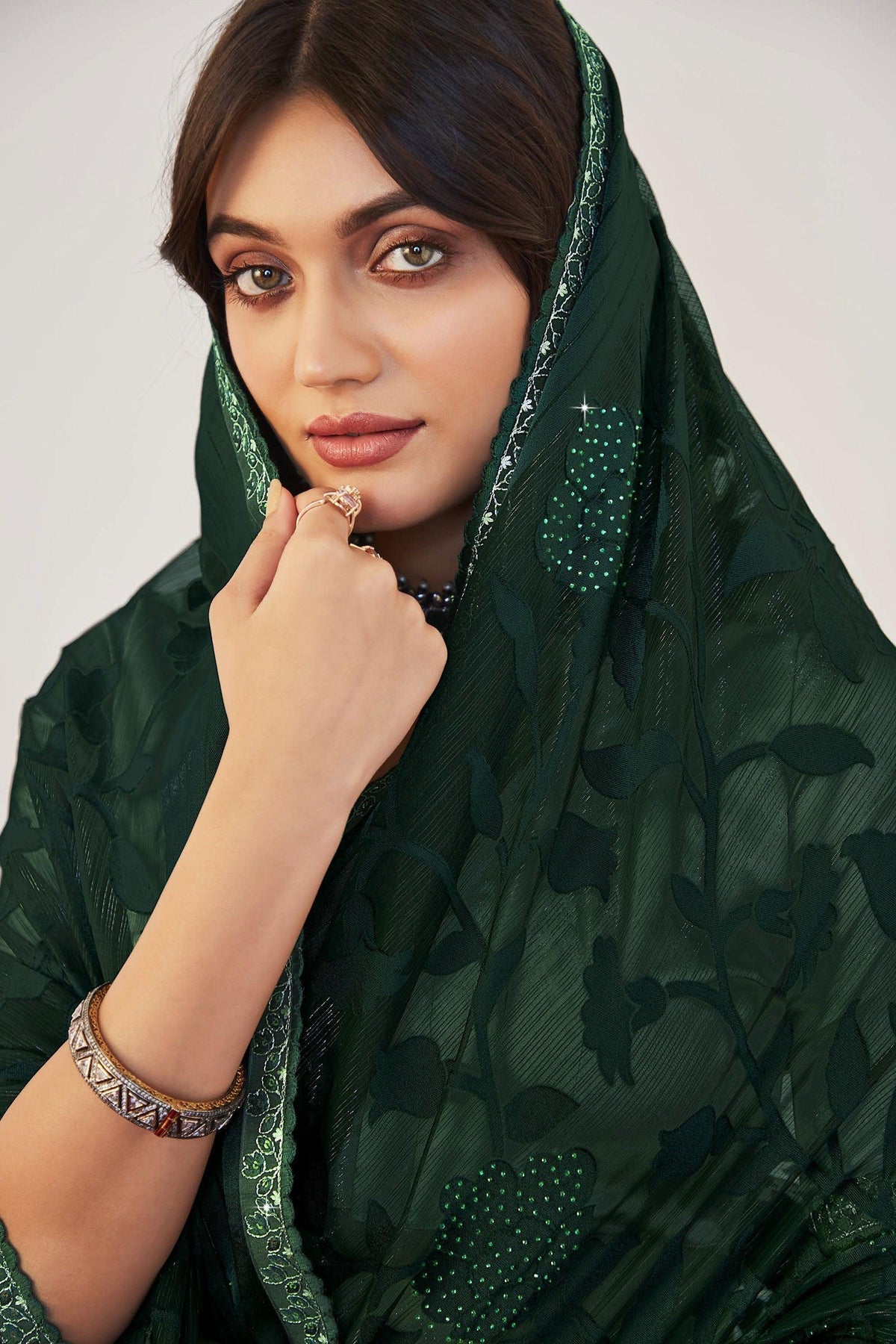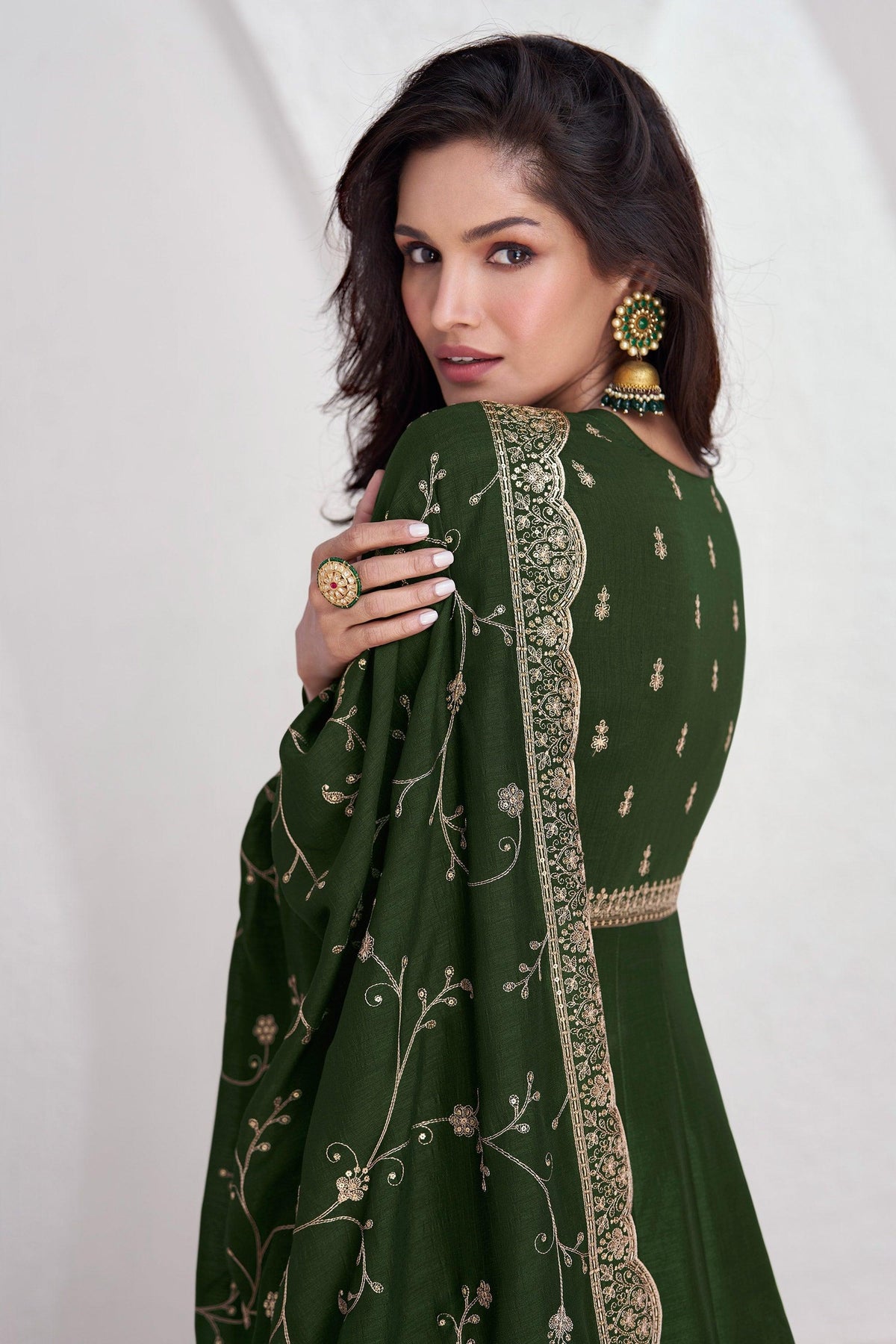 Classic Sea Green Color Function Wear Salwar Suit In Muslin Fabric