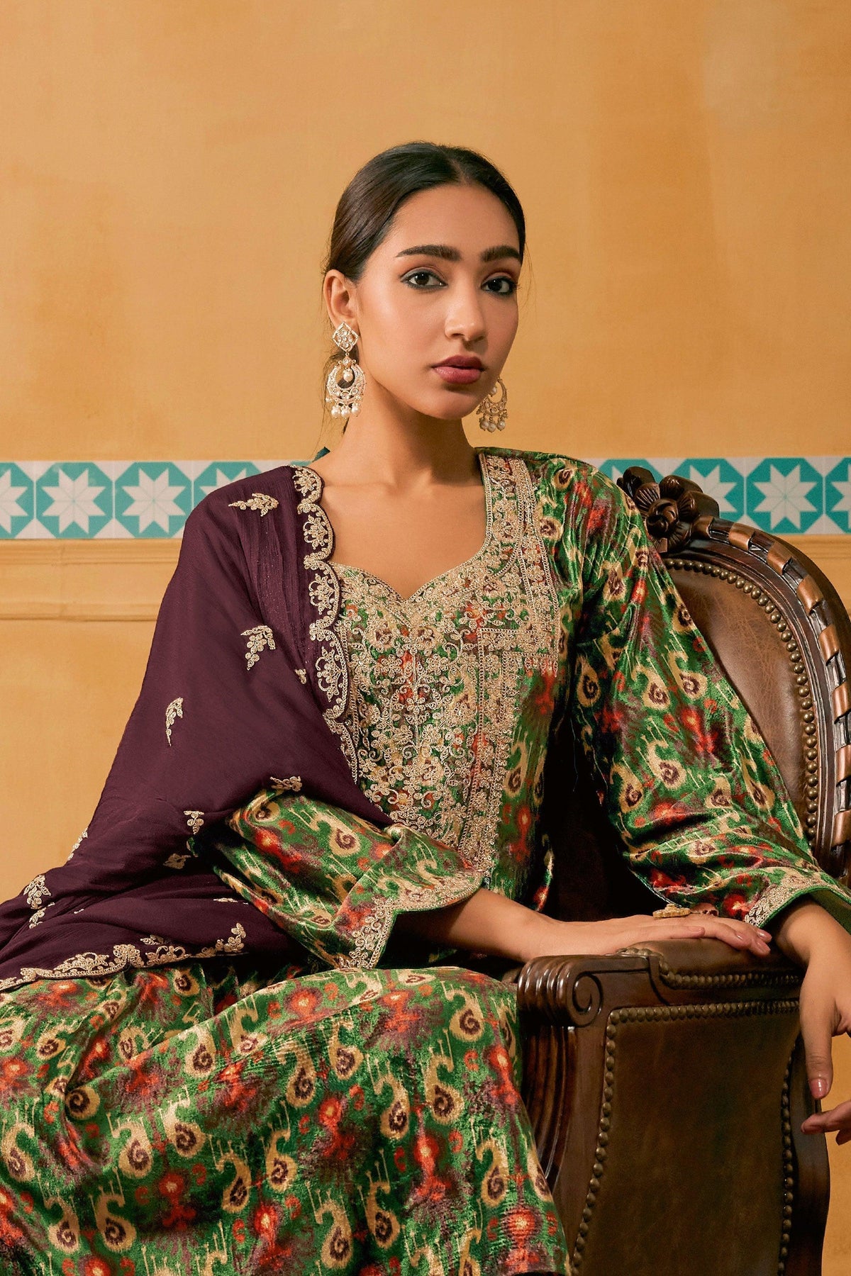 Elevate your function wear with our exquisite Designer Salwar Suit, crafted from luxurious Muslin fabric. This ensemble features intricate embroidery that adds a touch of elegance and sophistication to your look. The lightweight and breathable Muslin fabric ensures comfort, making it perfect for long hours of wear during special occasions. Whether you're attending a wedding, a festive celebration, or any grand event, this Designer Salwar Suit will make you stand out with its timeless beauty and impeccable craftsmanship. Embrace the blend of tradition and contemporary style with this stunning outfit, designed to make you feel regal and radiant.