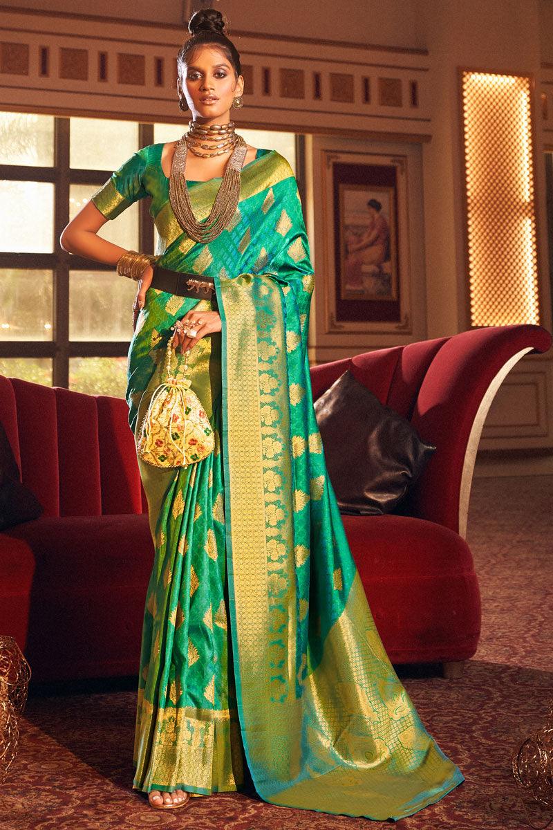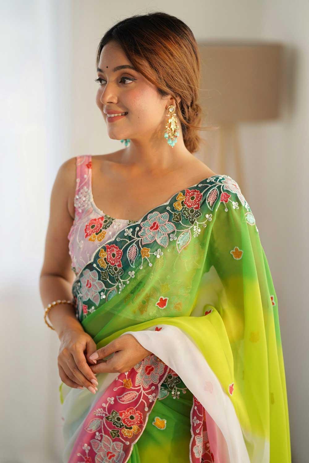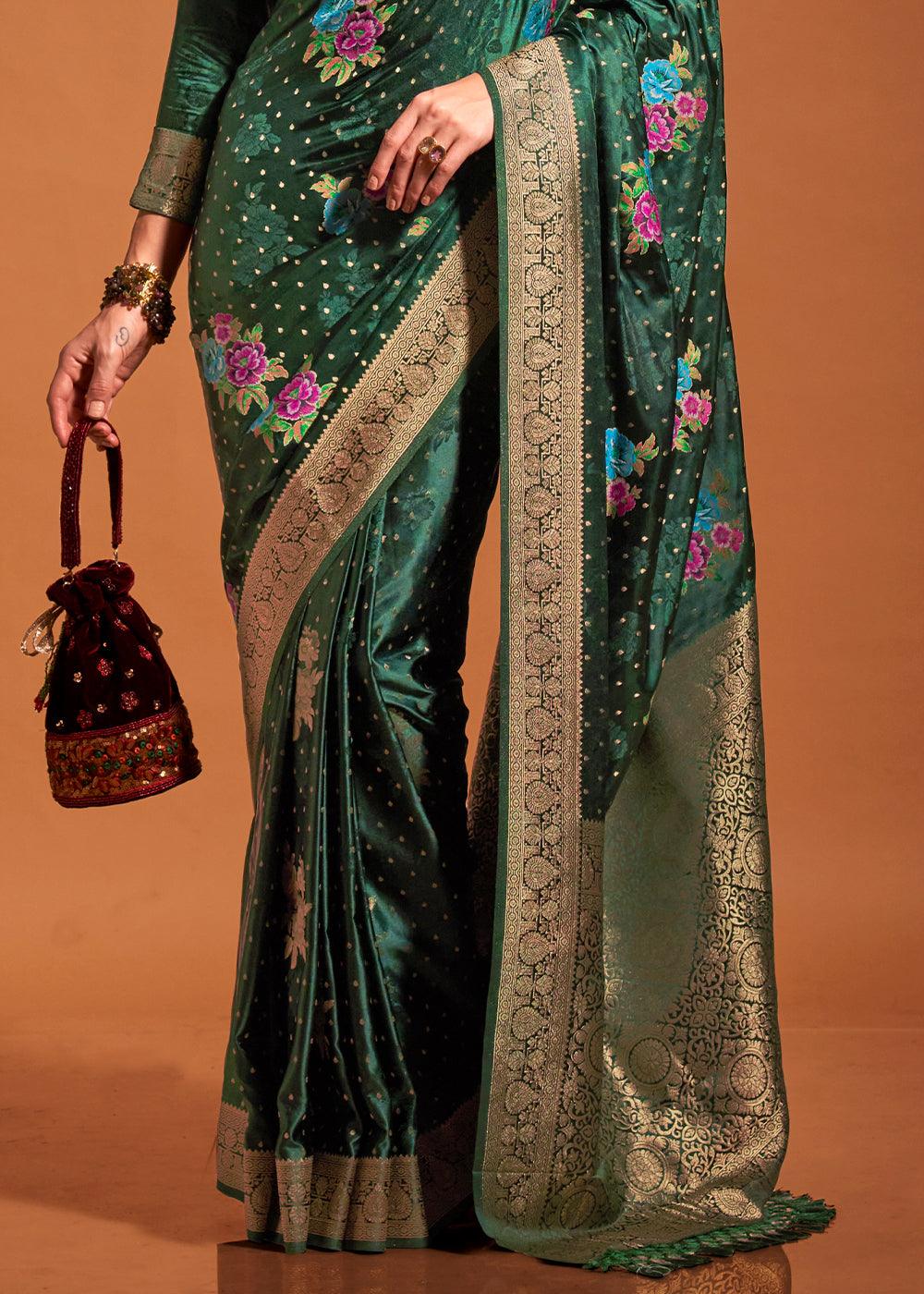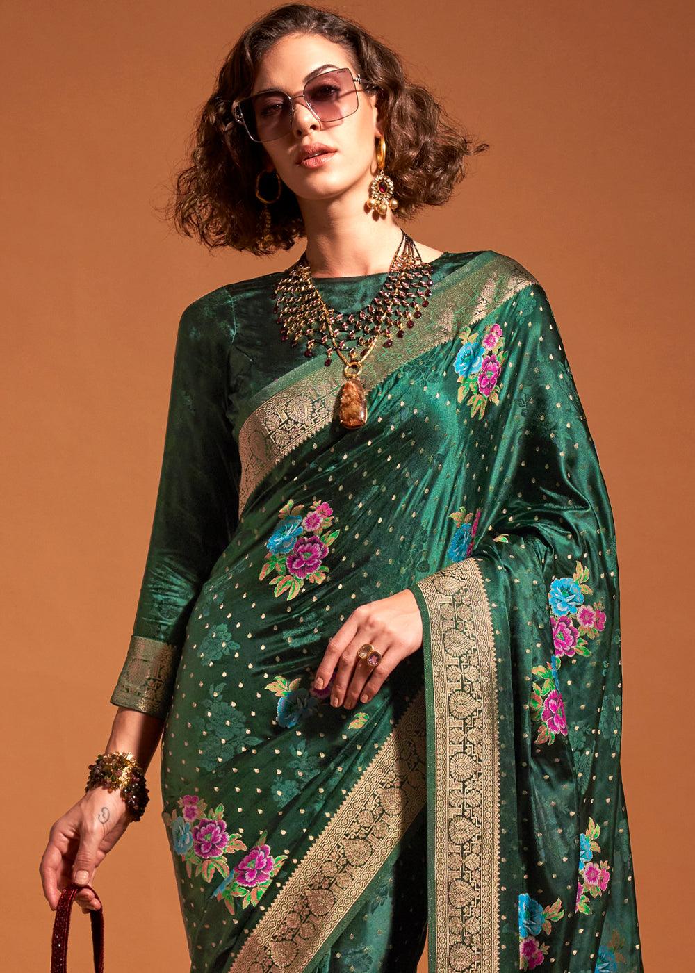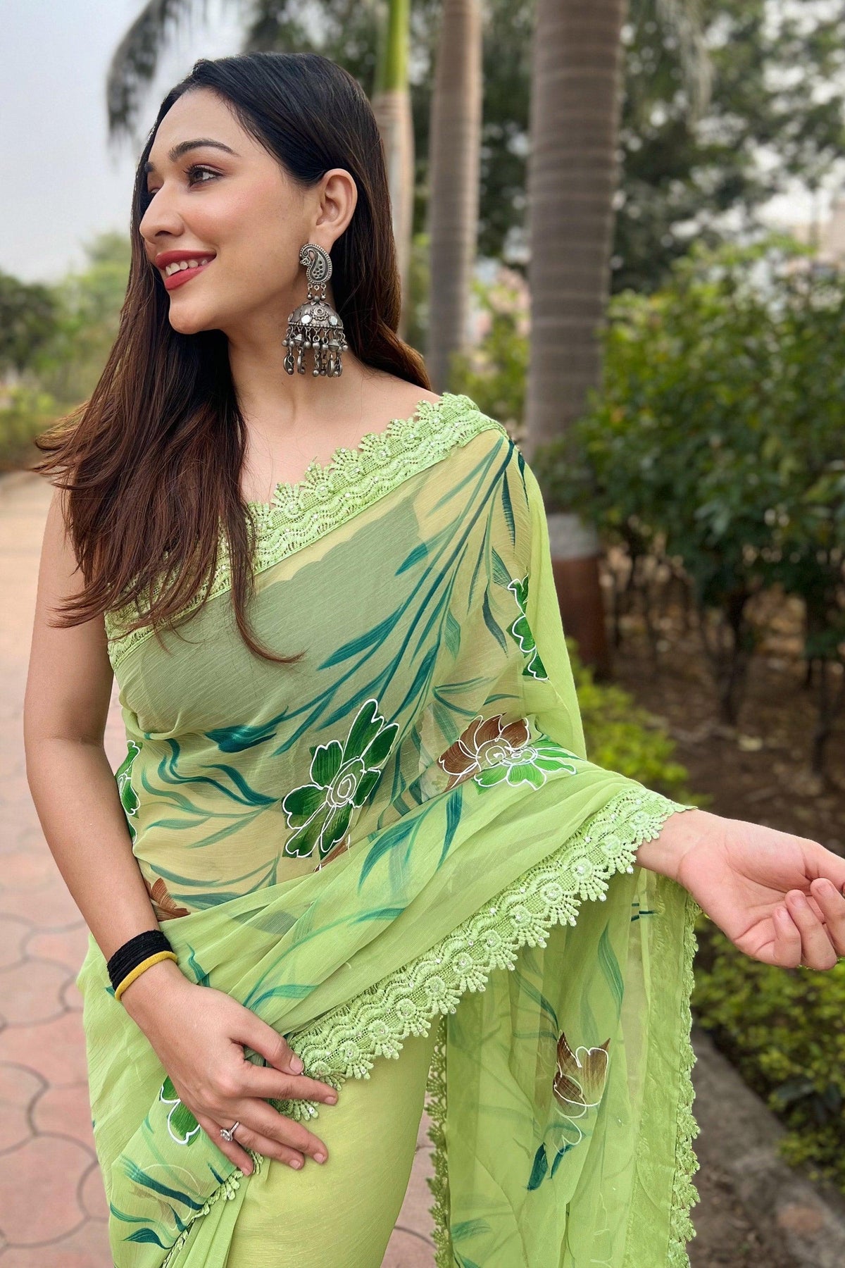 Floral Print On Sea Green Color Fashionable Saree In Fancy Fabric