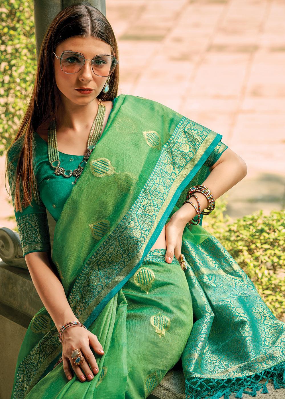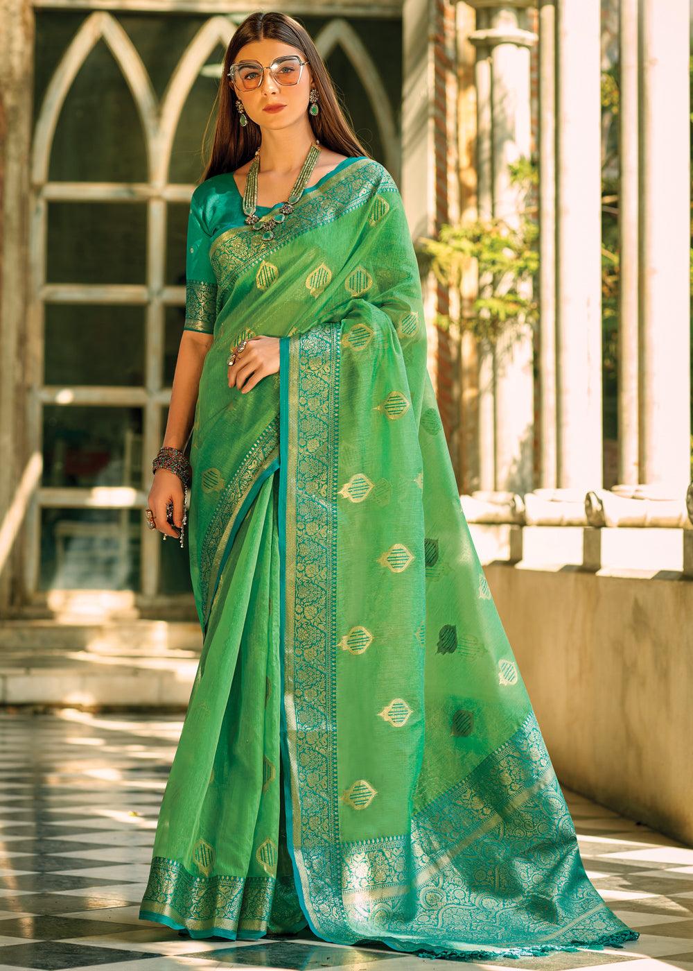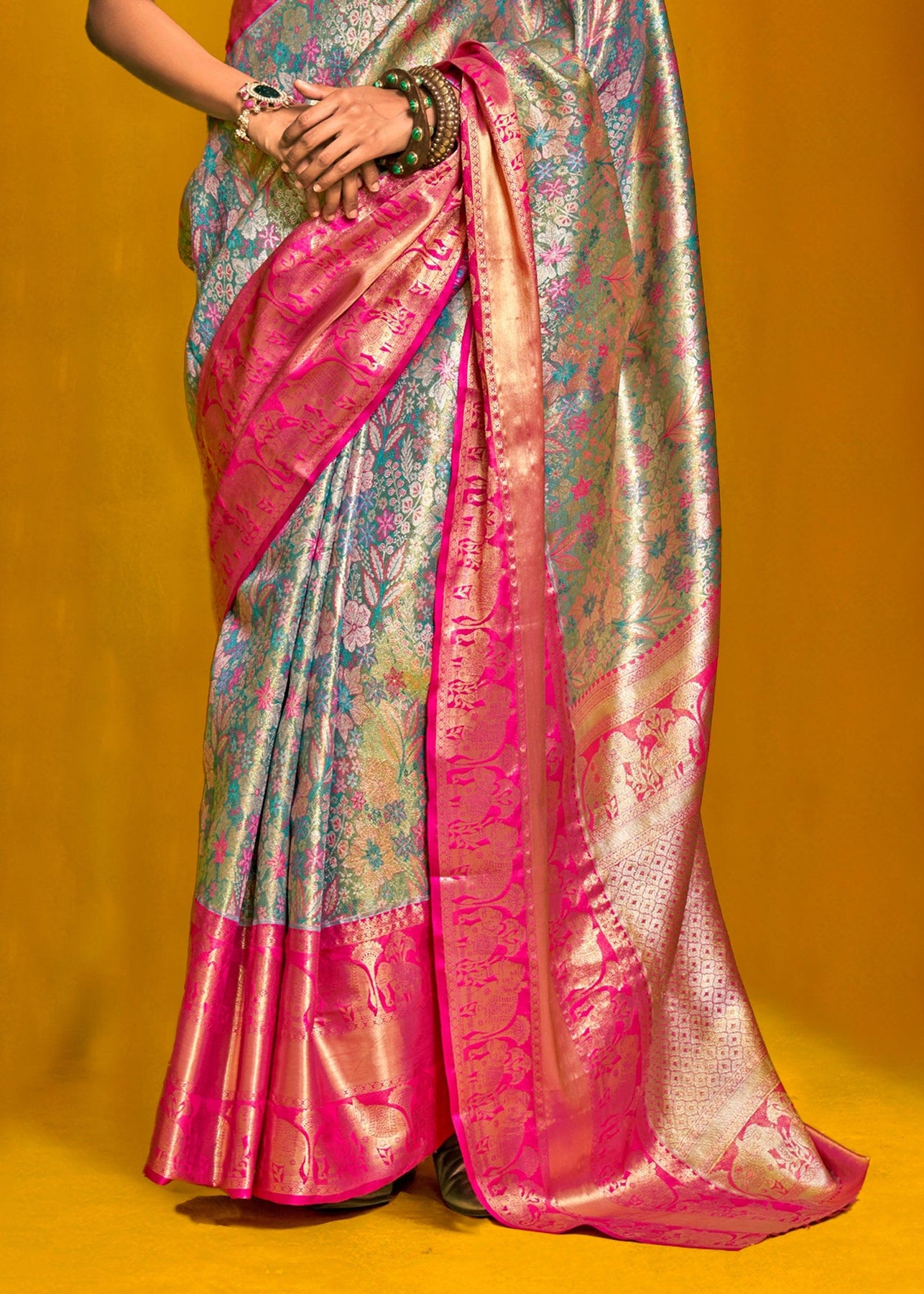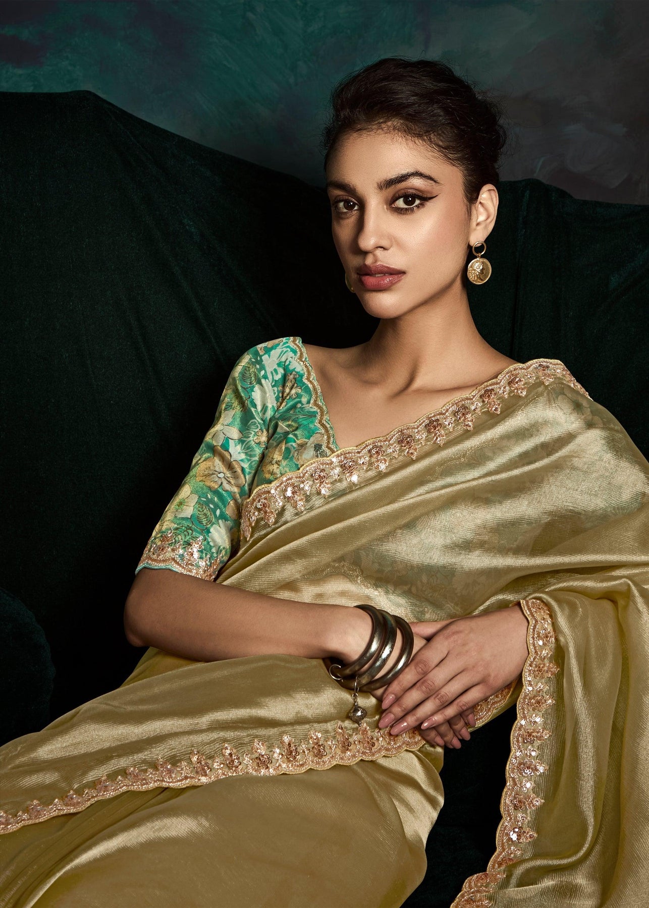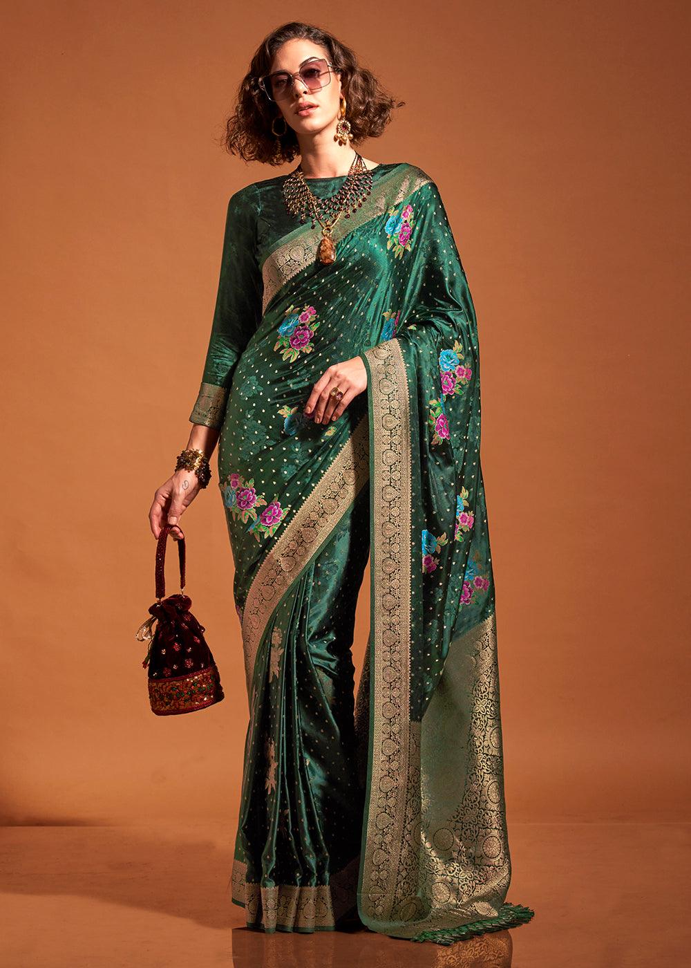 Floral Print On Sea Green Color Fashionable Saree In Fancy Fabric