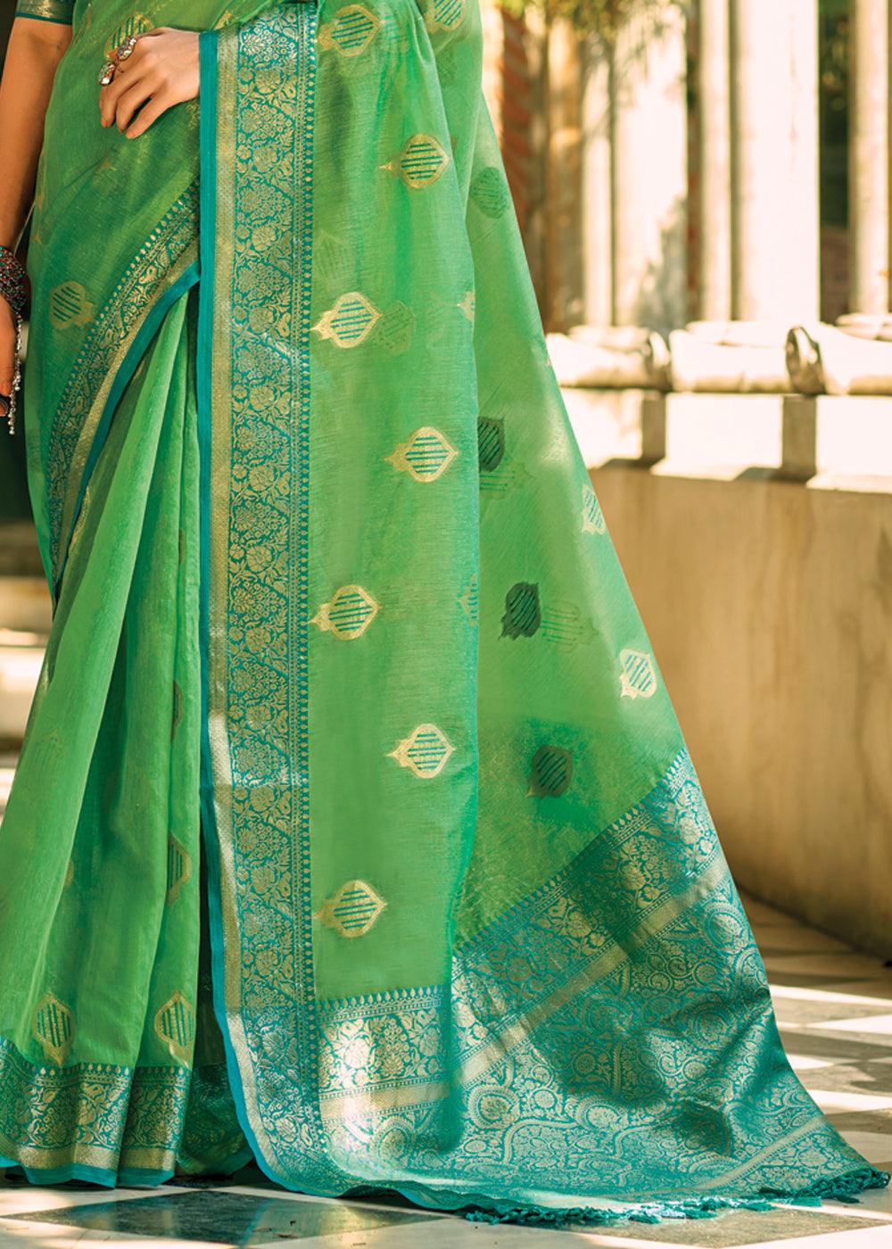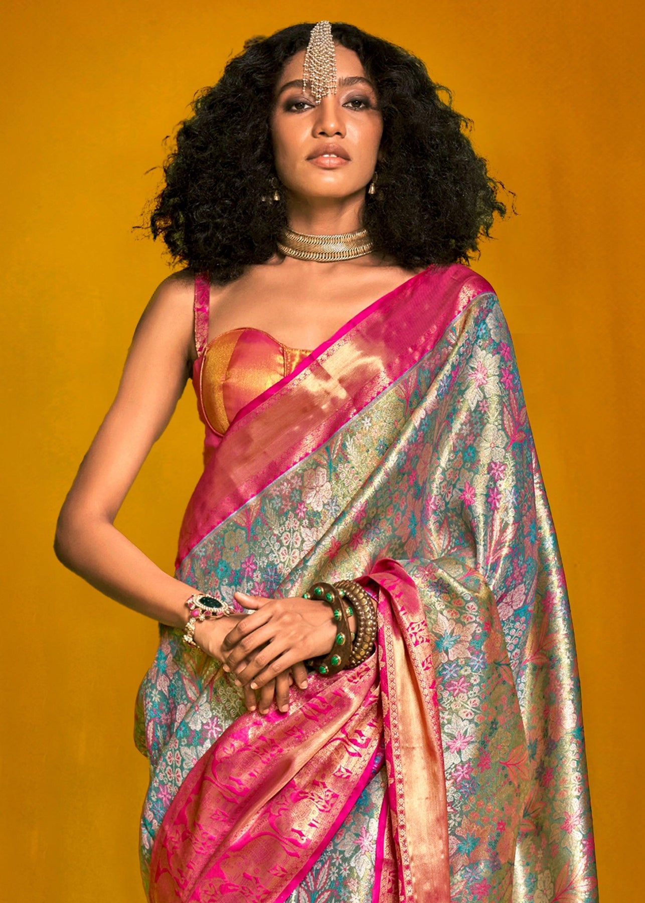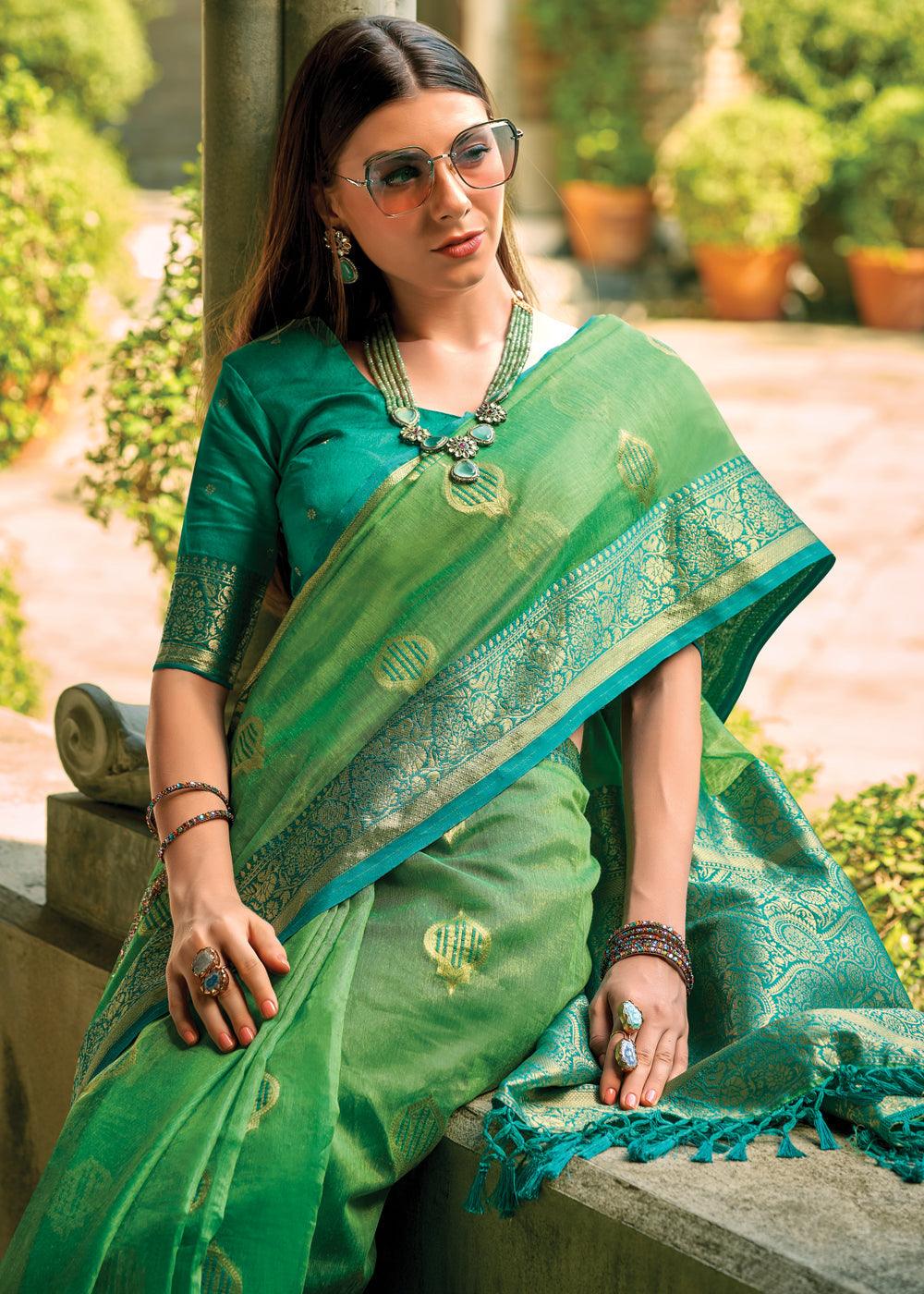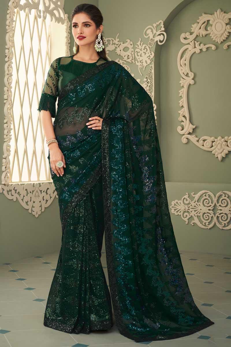 Floral Print On Sea Green Color Fashionable Saree In Fancy Fabric