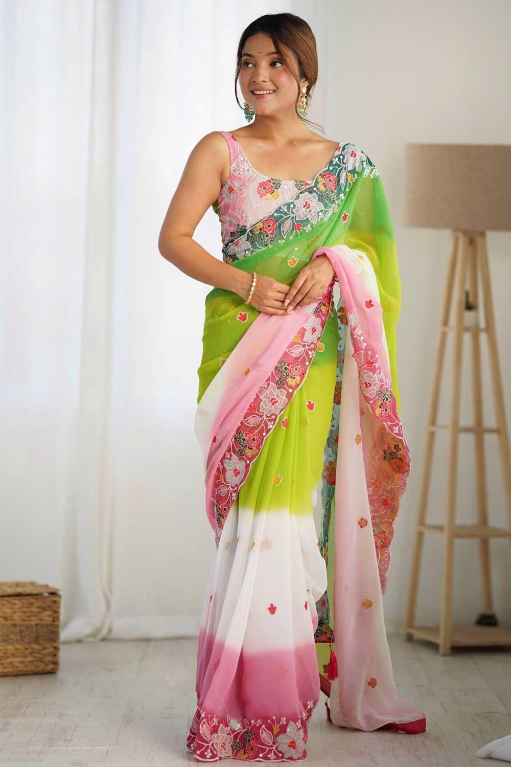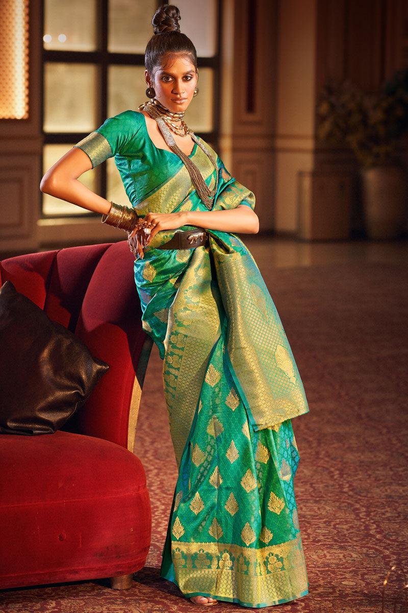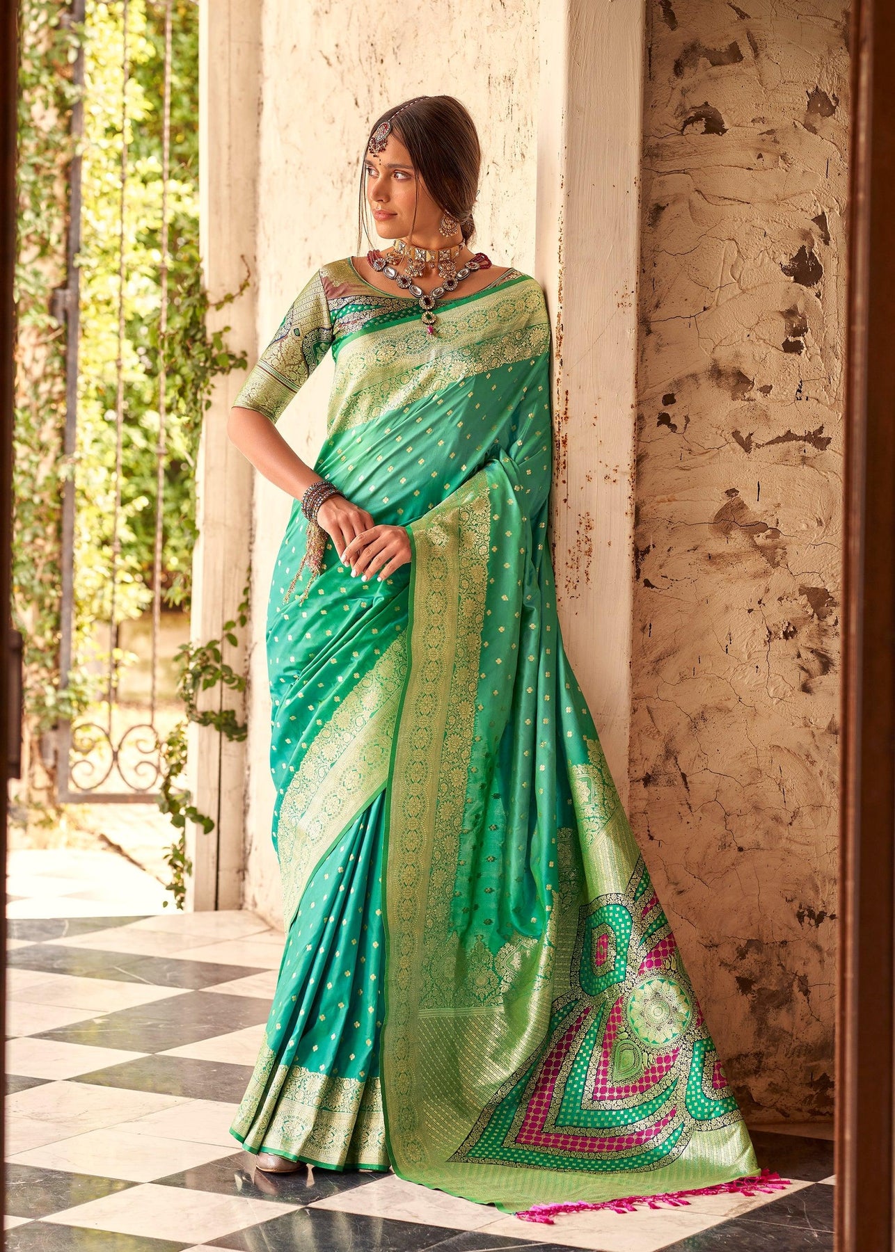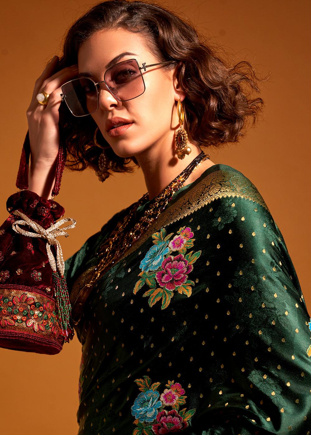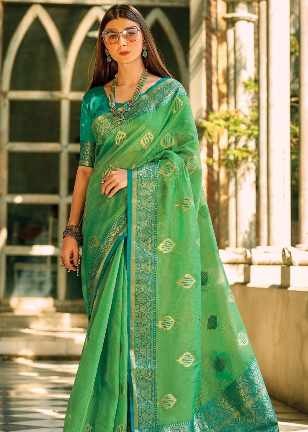 Floral Print On Sea Green Color Fashionable Saree In Fancy Fabric