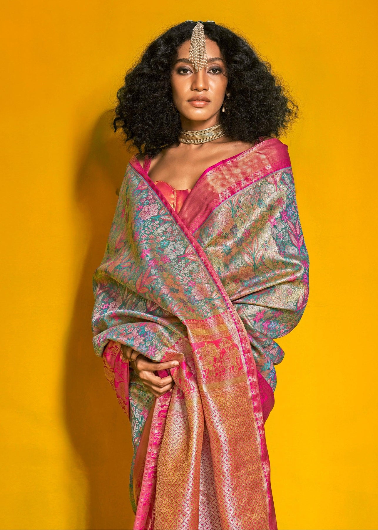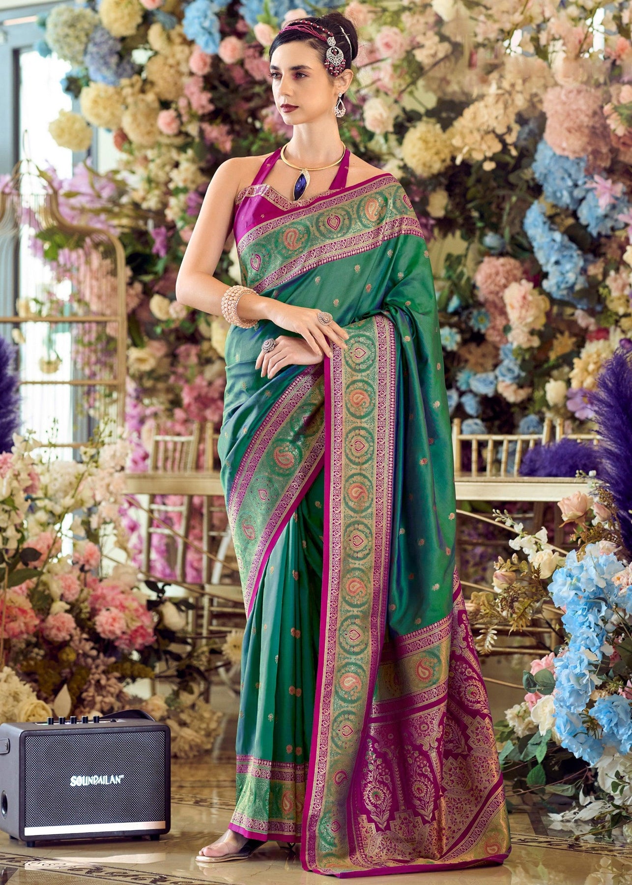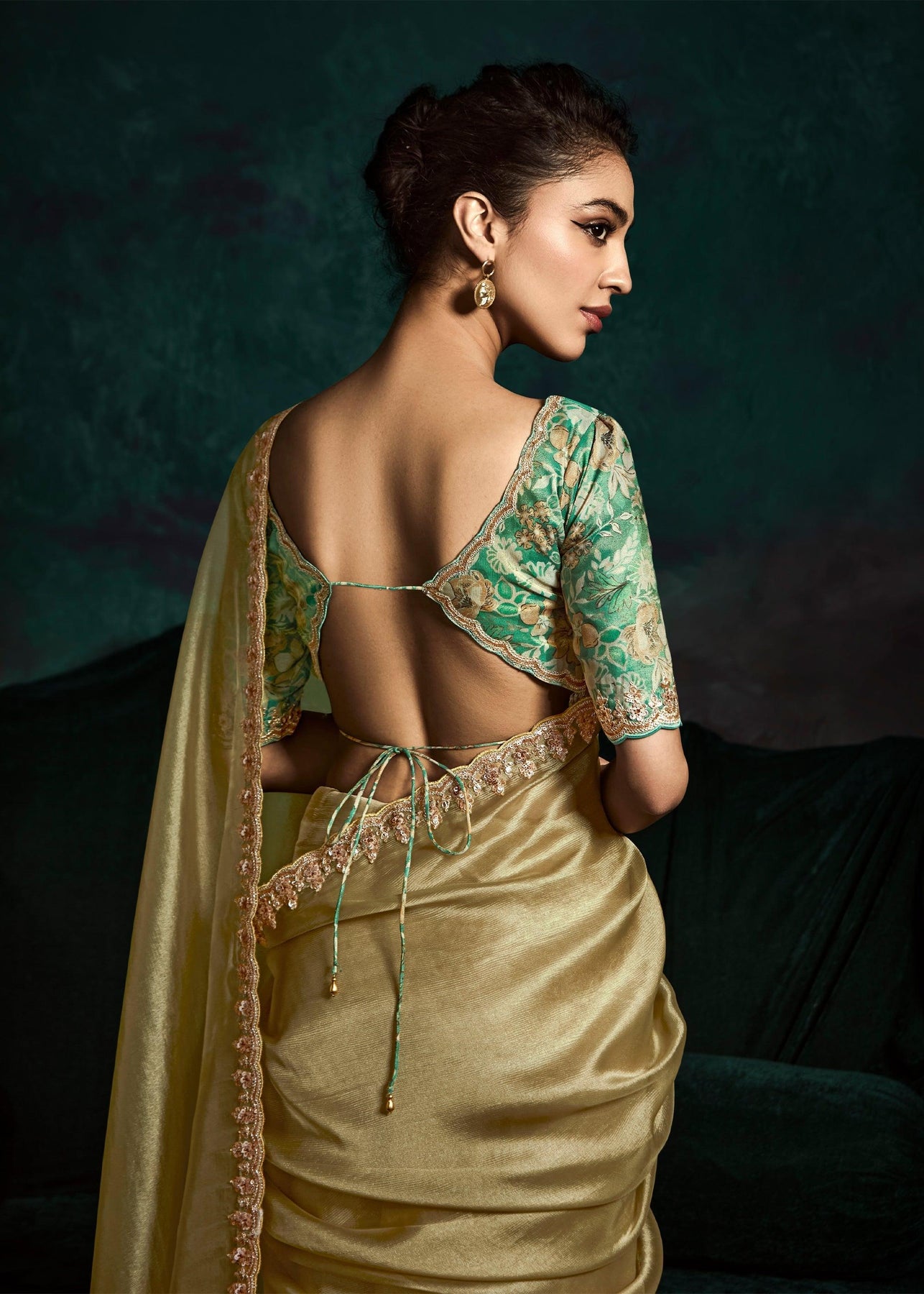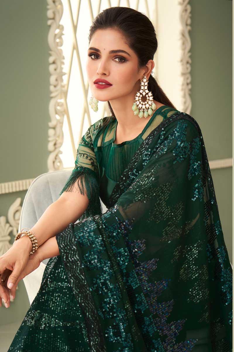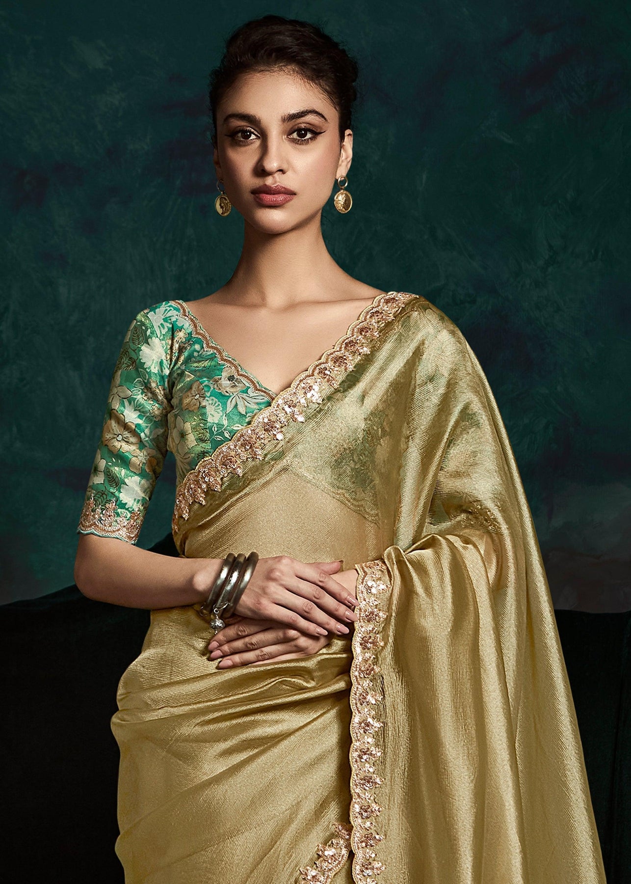 Floral Print On Sea Green Color Fashionable Saree In Fancy Fabric