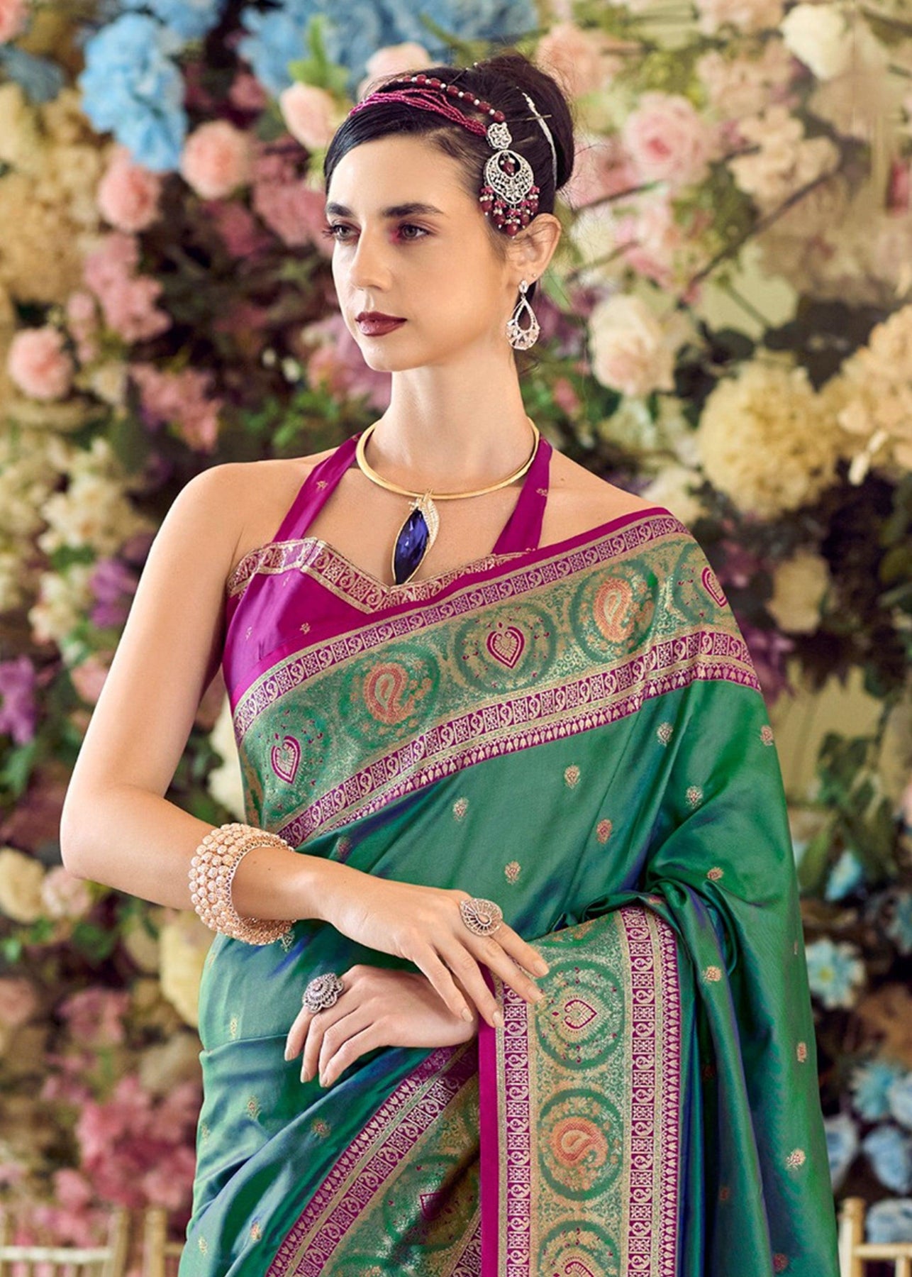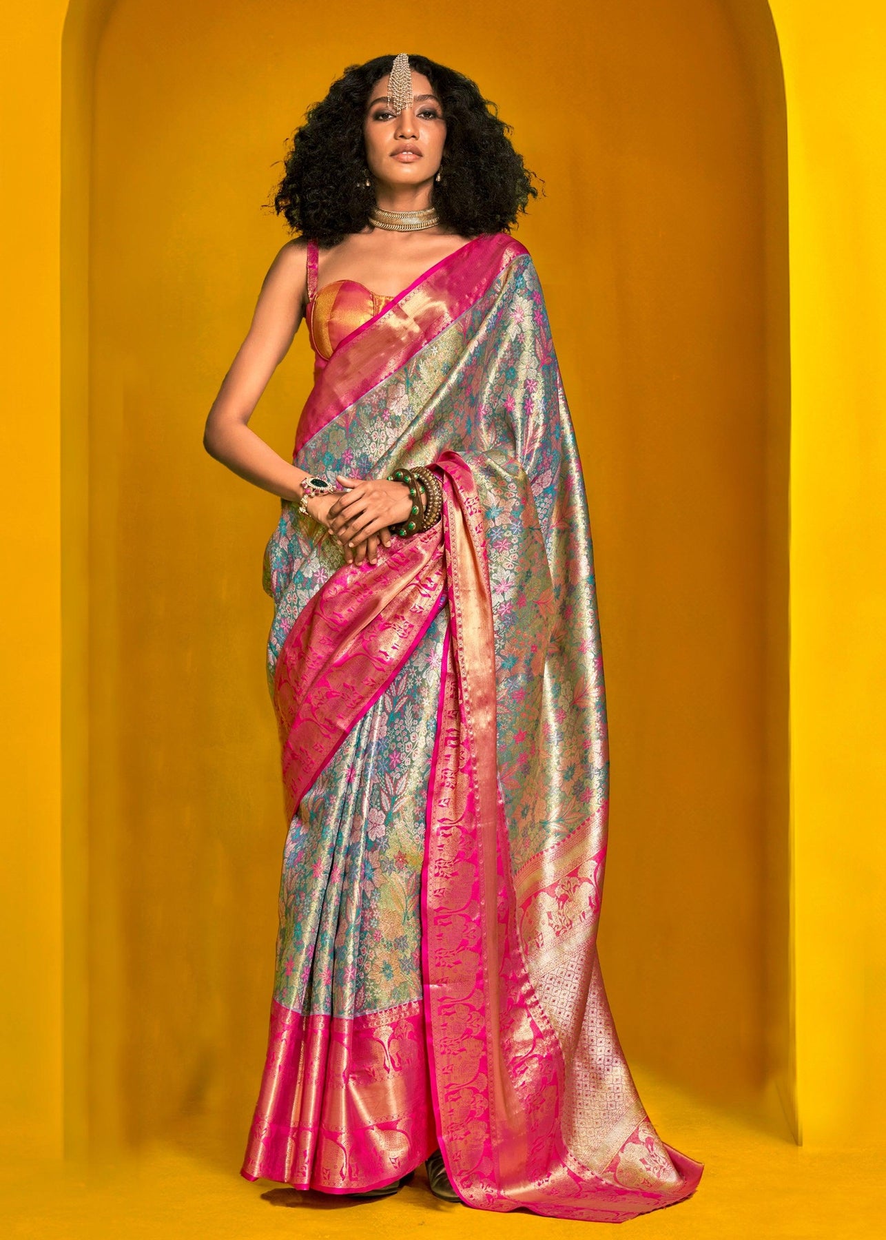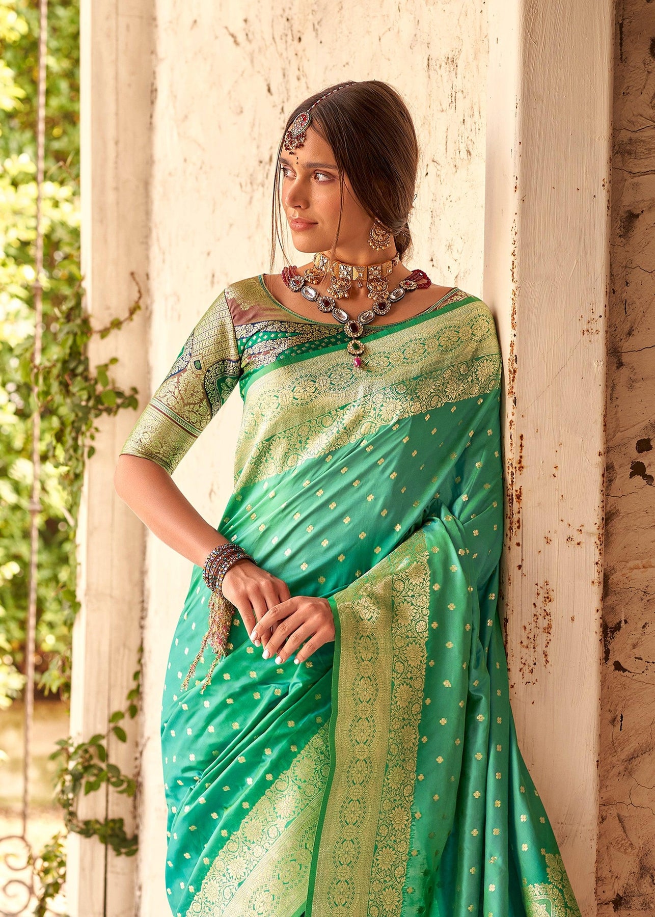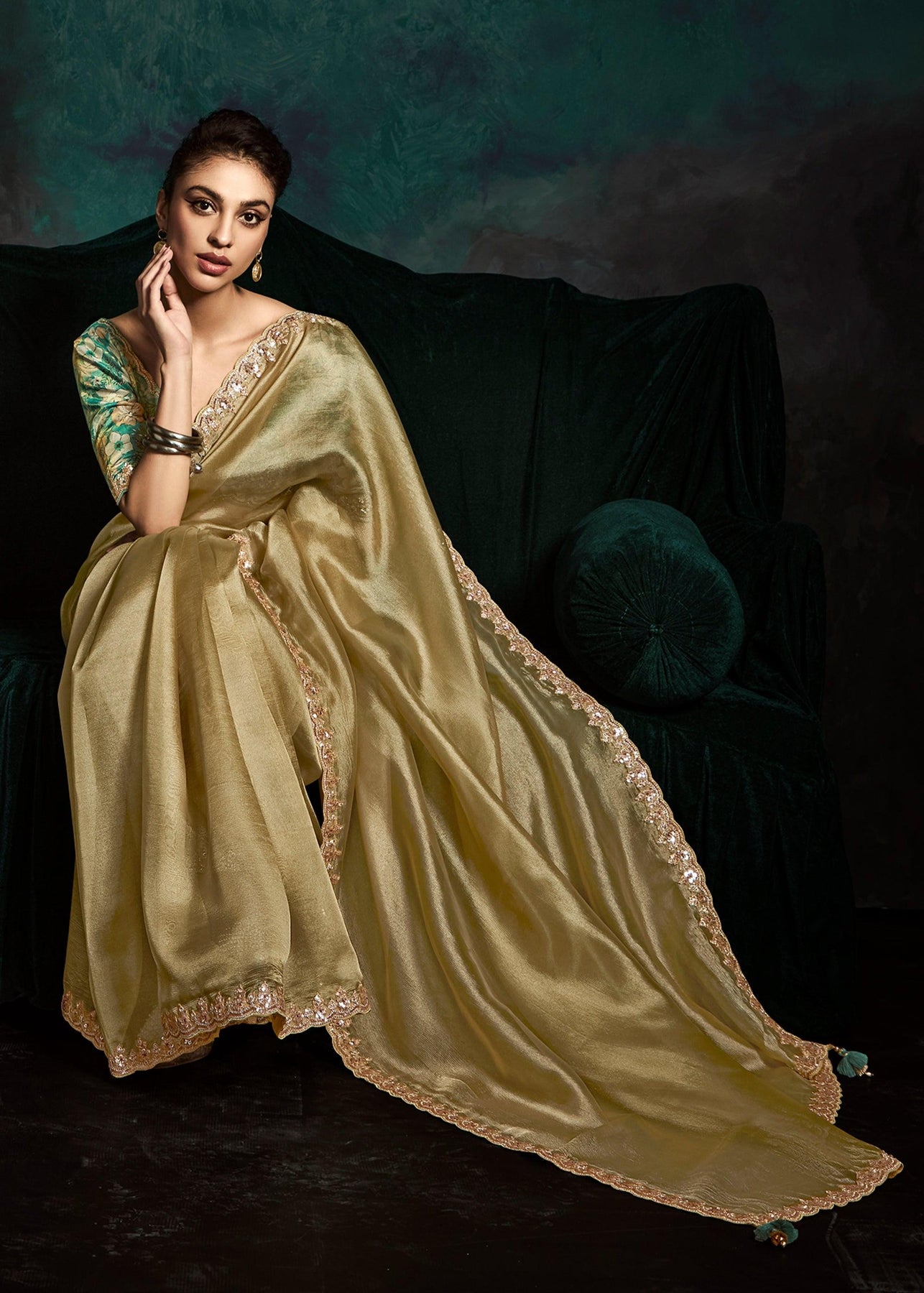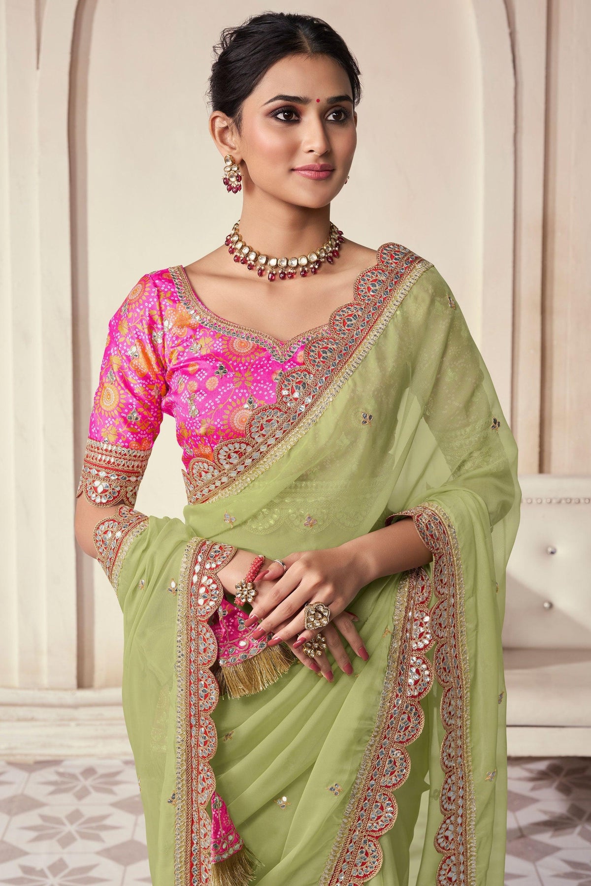 Floral Print On Sea Green Color Fashionable Saree In Fancy Fabric