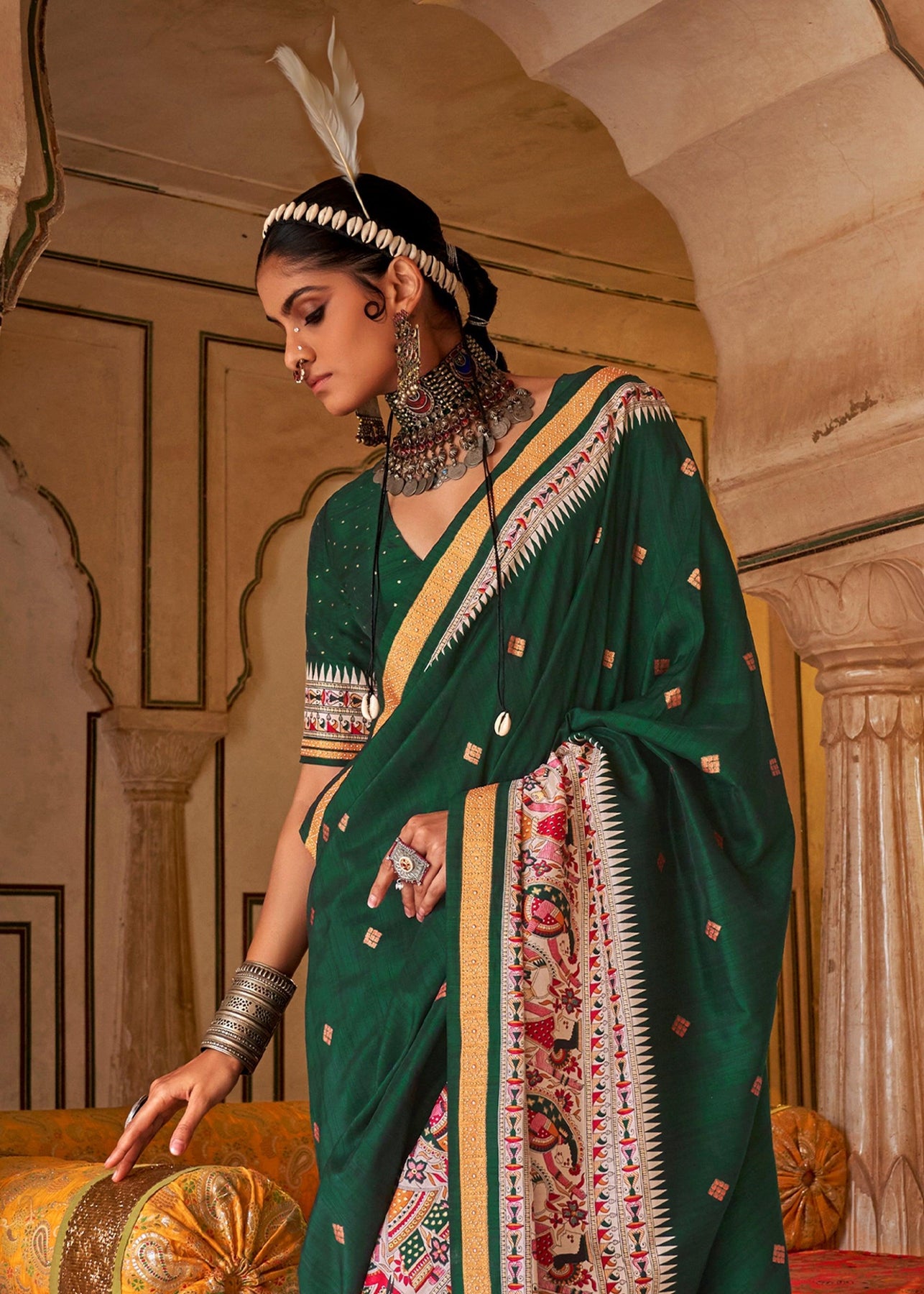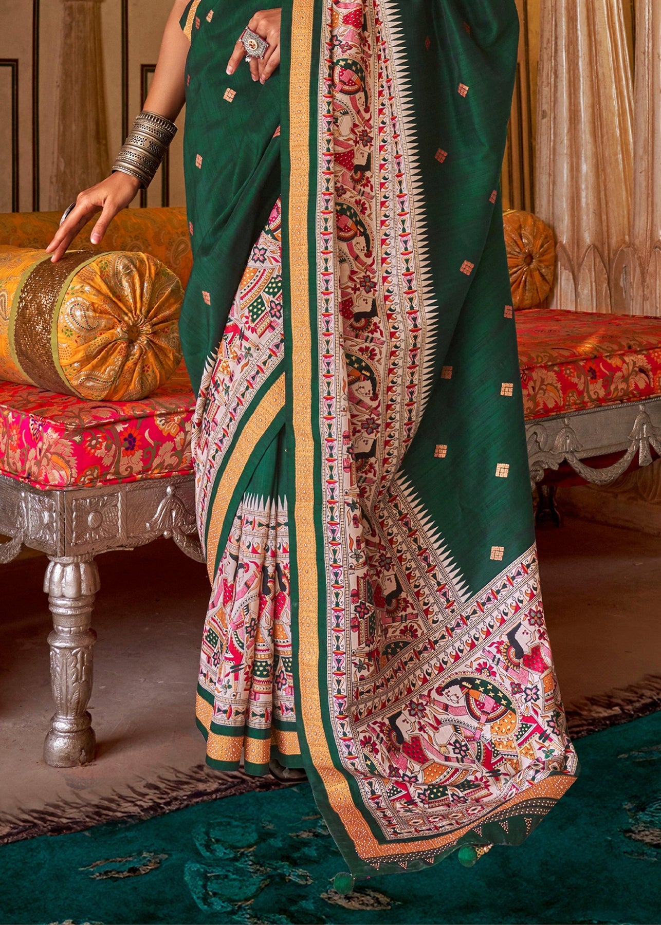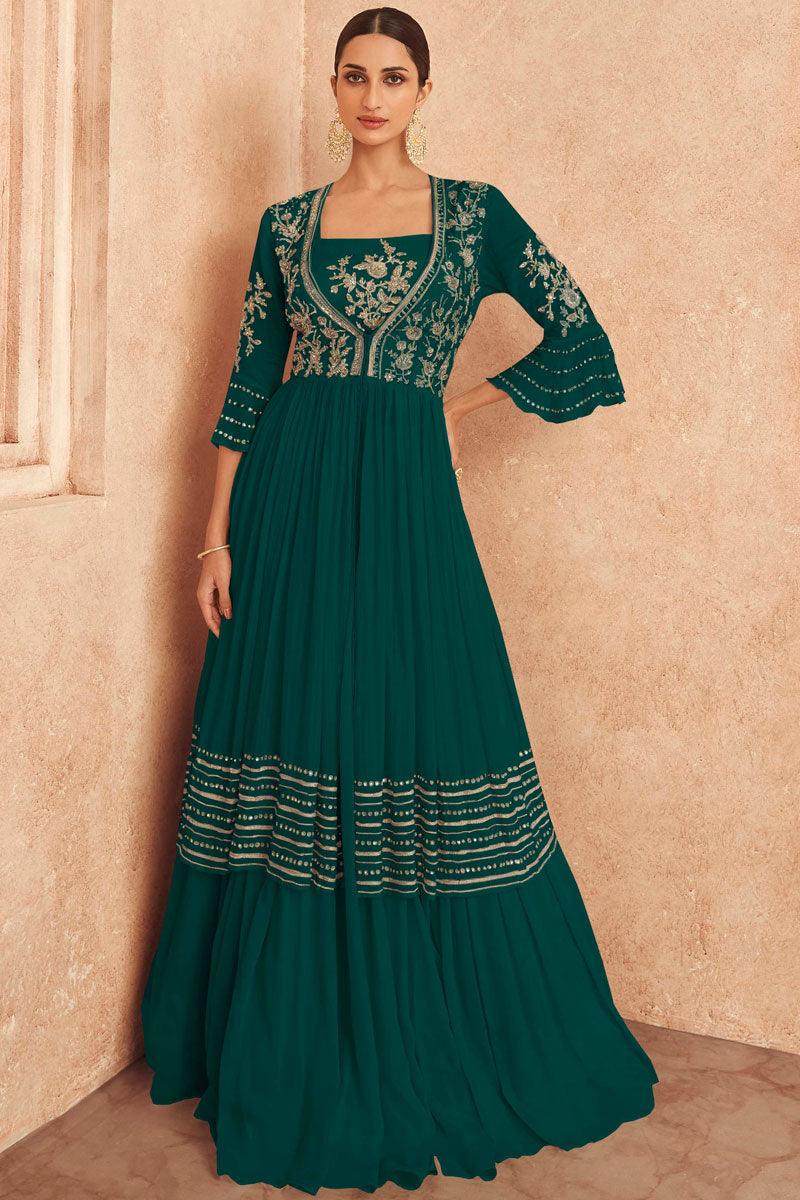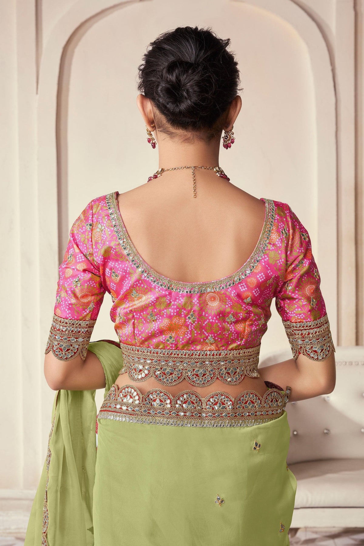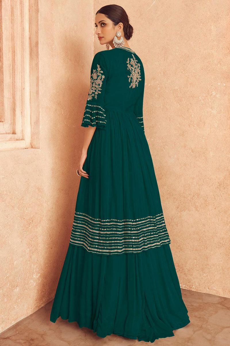 Floral Print On Sea Green Color Fashionable Saree In Fancy Fabric