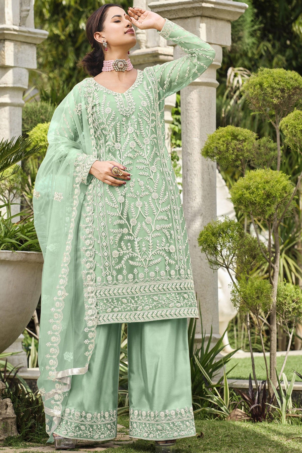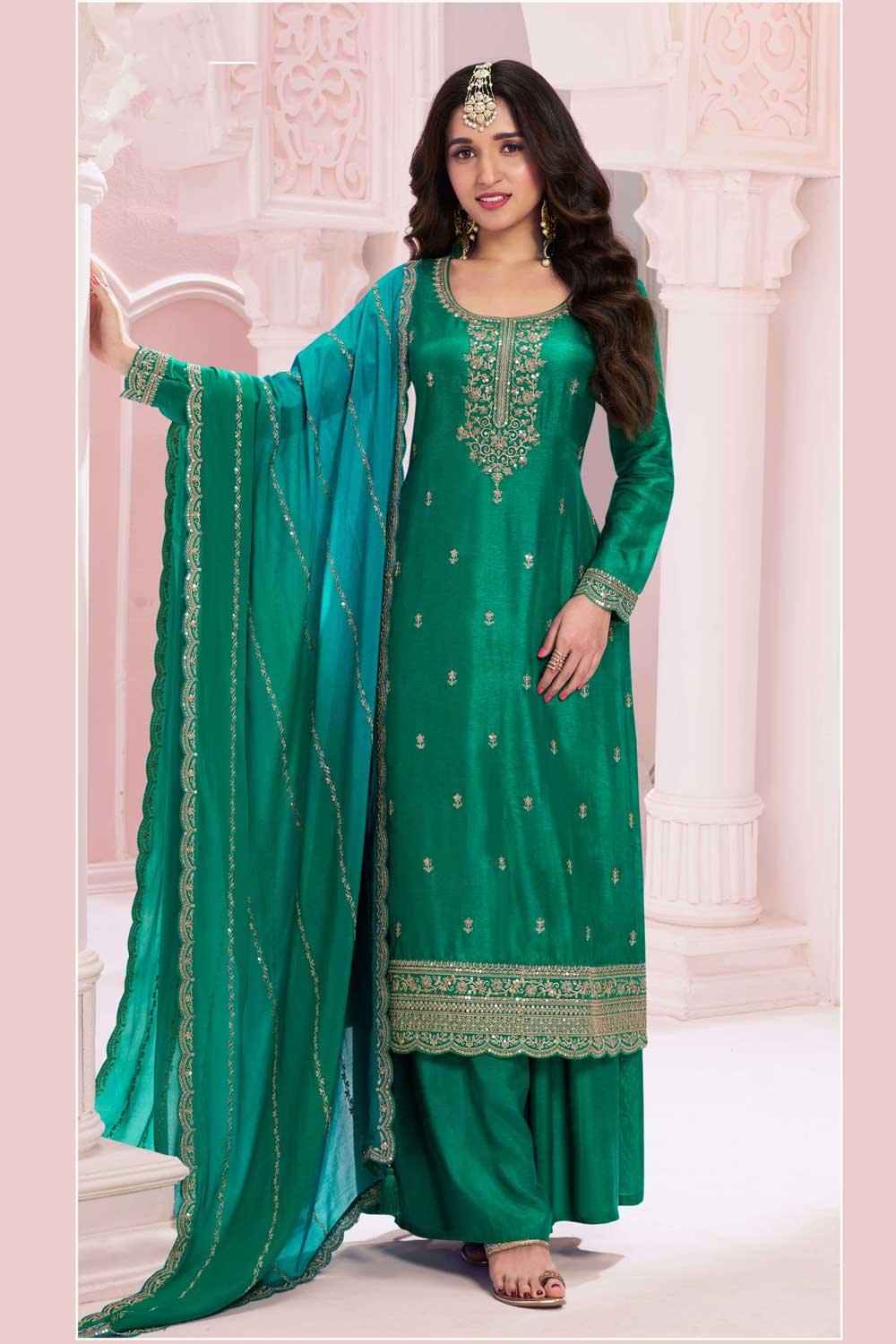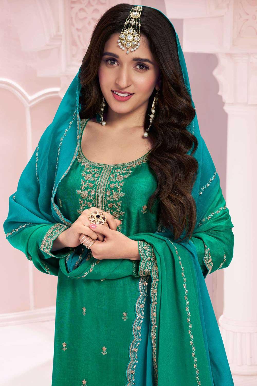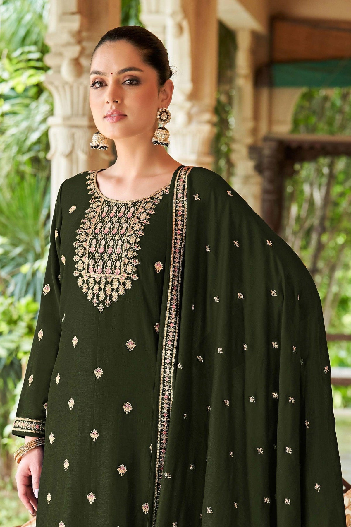 Mehendi Green Color Art Silk Fabric Function Wear Tempting Palazzo Suit