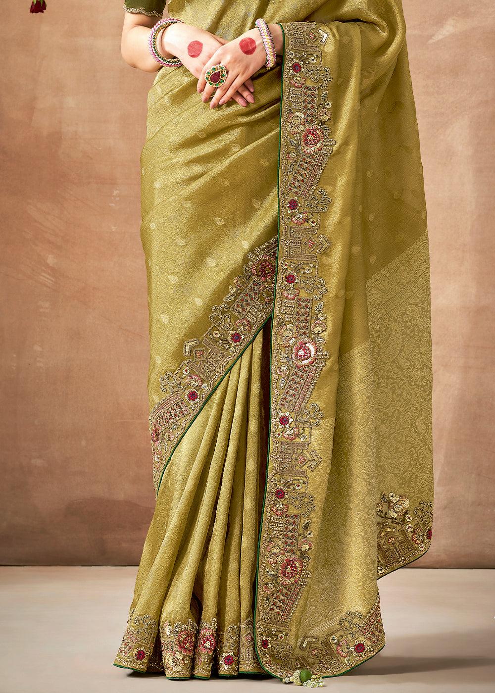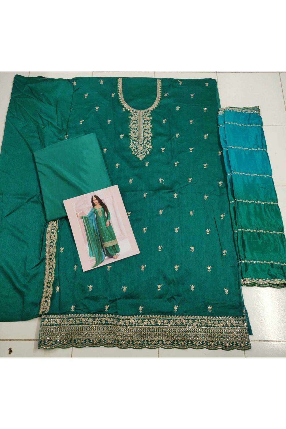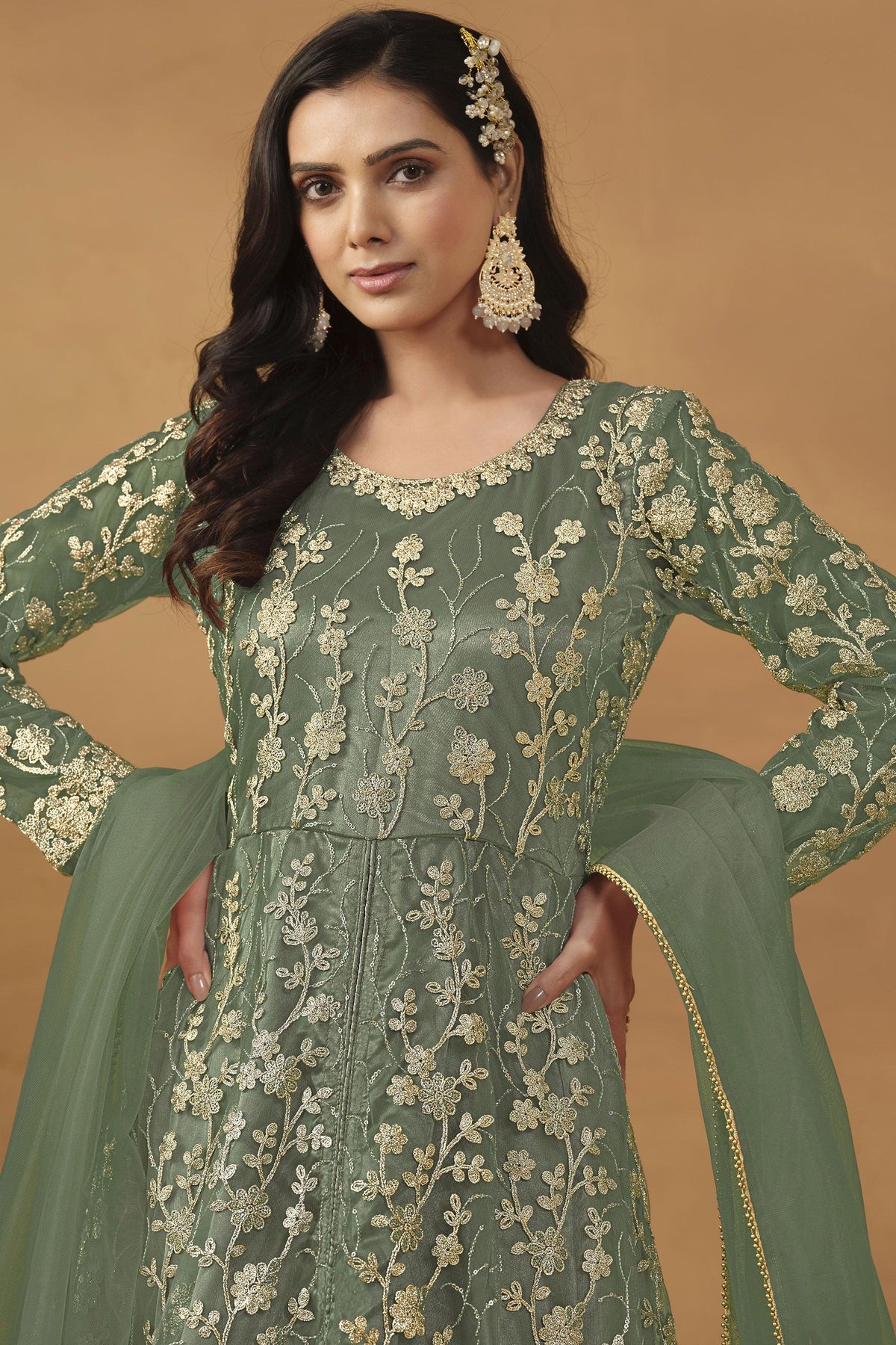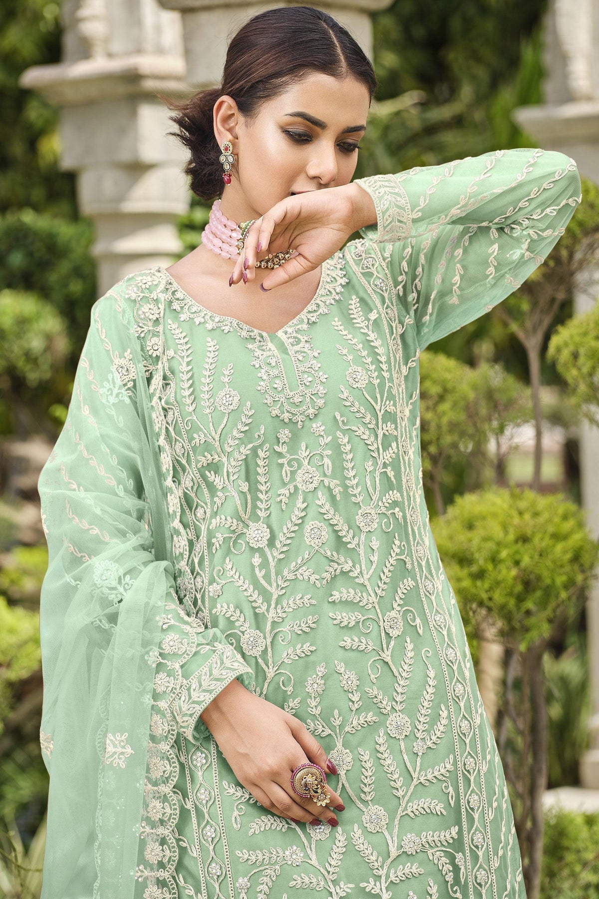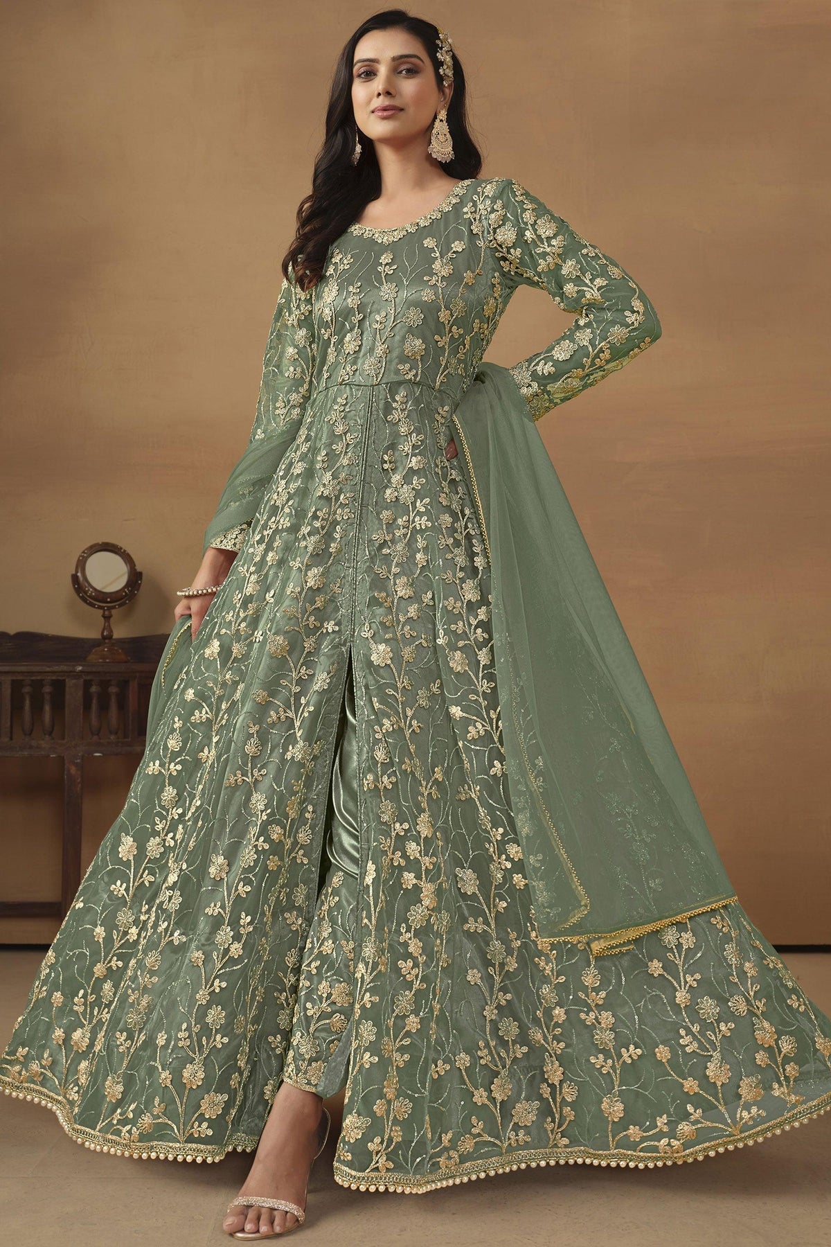 Mehendi Green Color Art Silk Fabric Function Wear Tempting Palazzo Suit