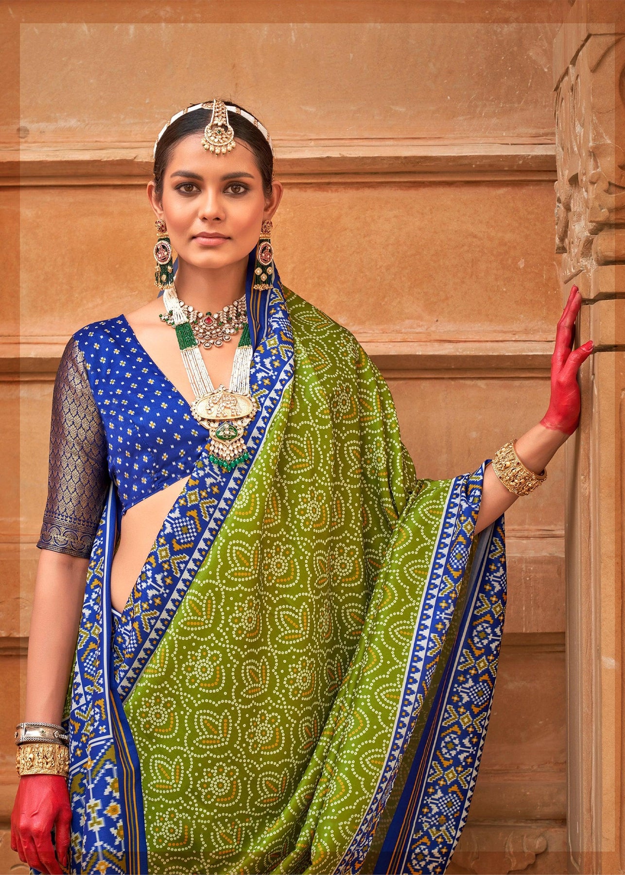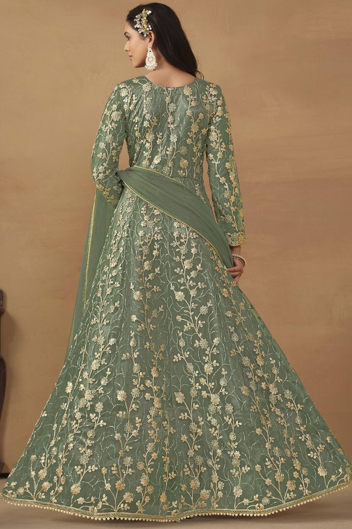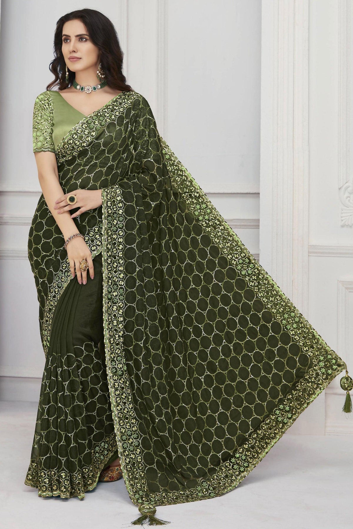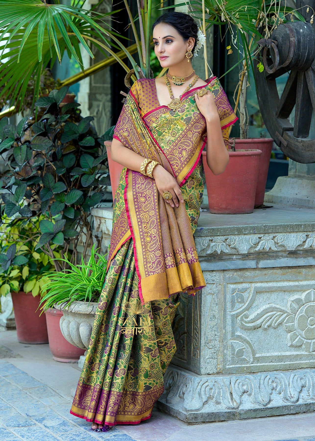Mehendi Green Color Art Silk Fabric Function Wear Tempting Palazzo Suit
