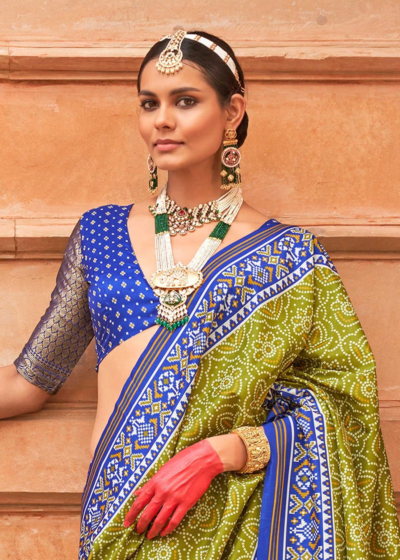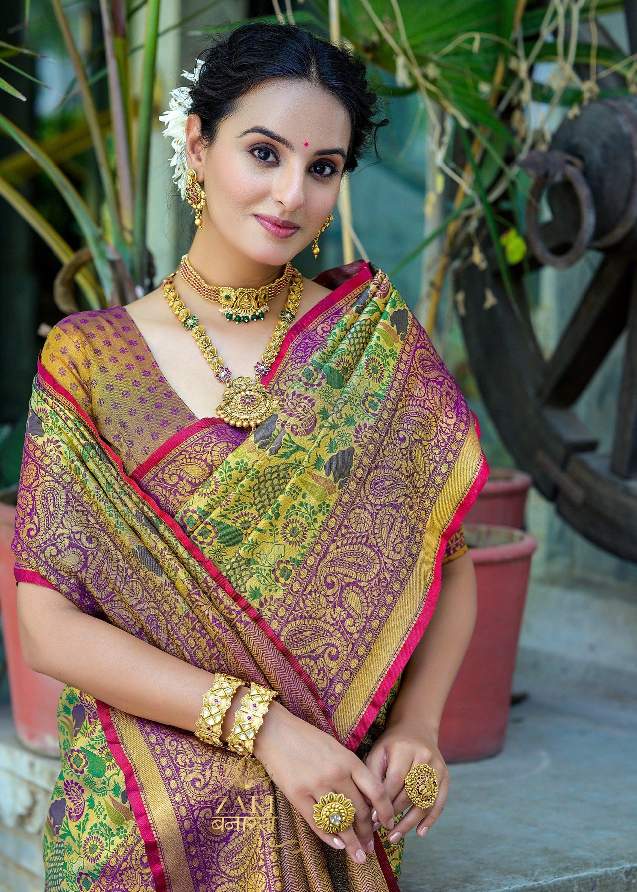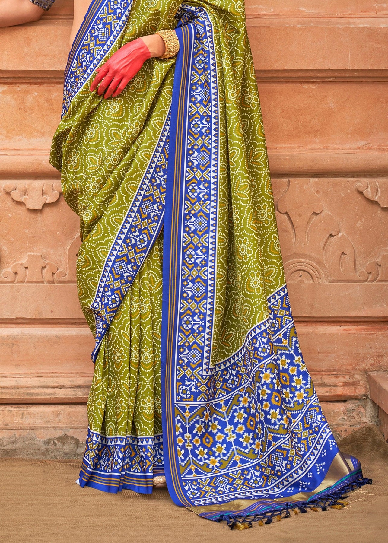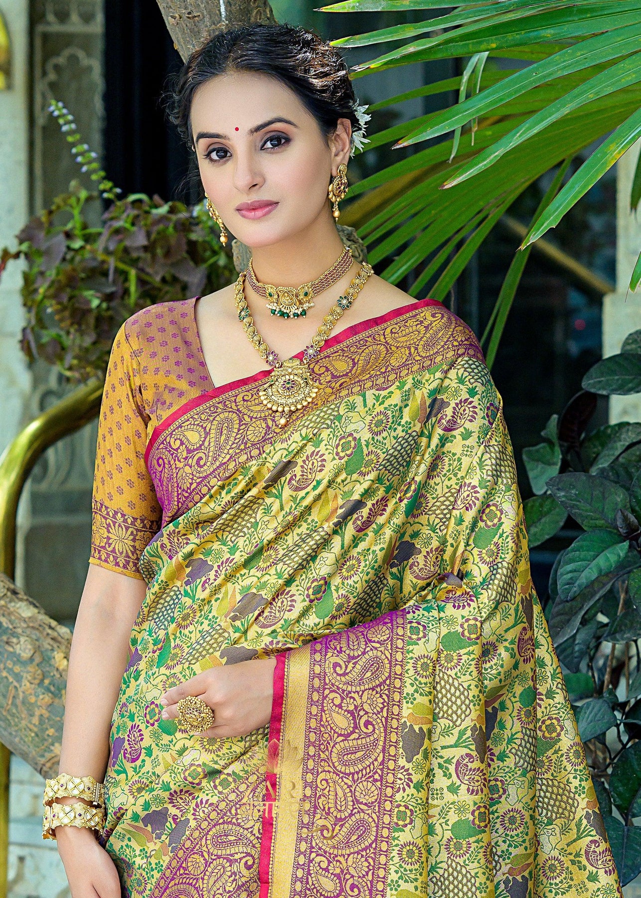 Mehendi Green Color Art Silk Fabric Function Wear Tempting Palazzo Suit
