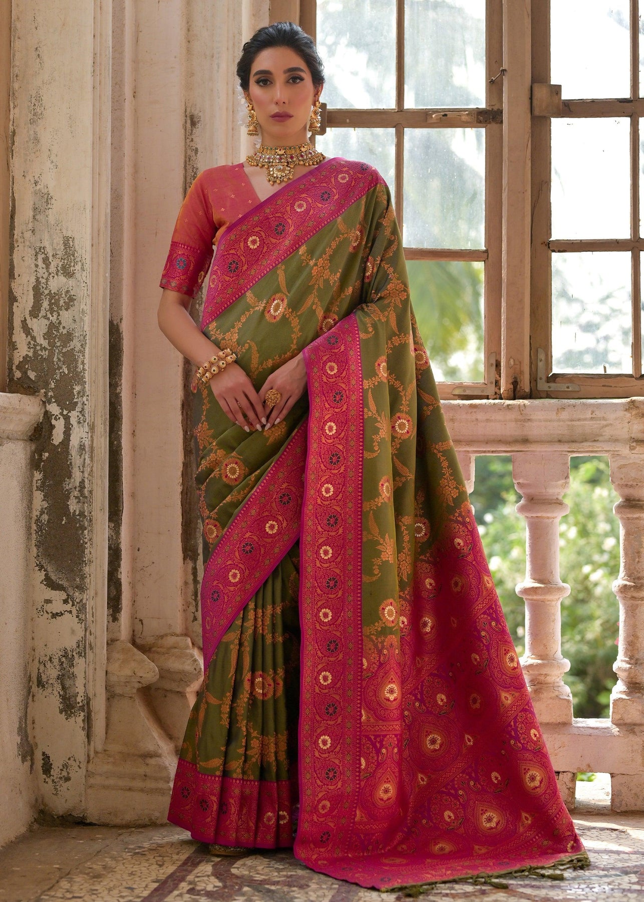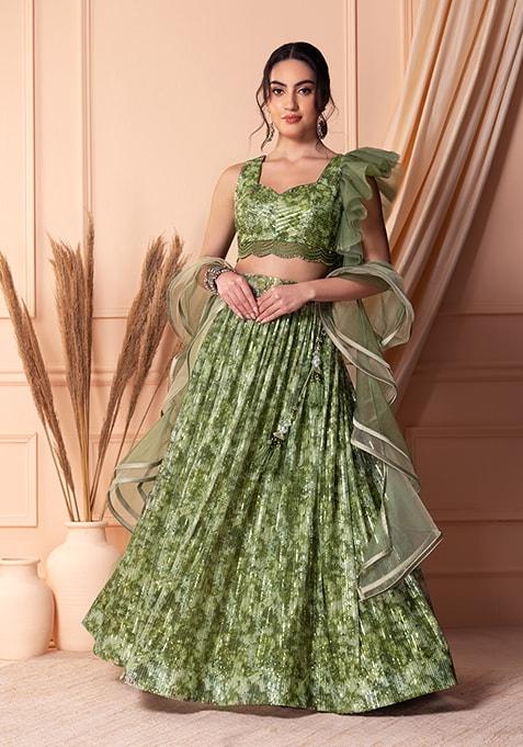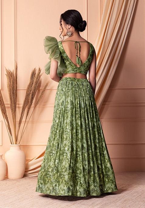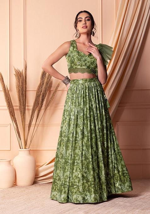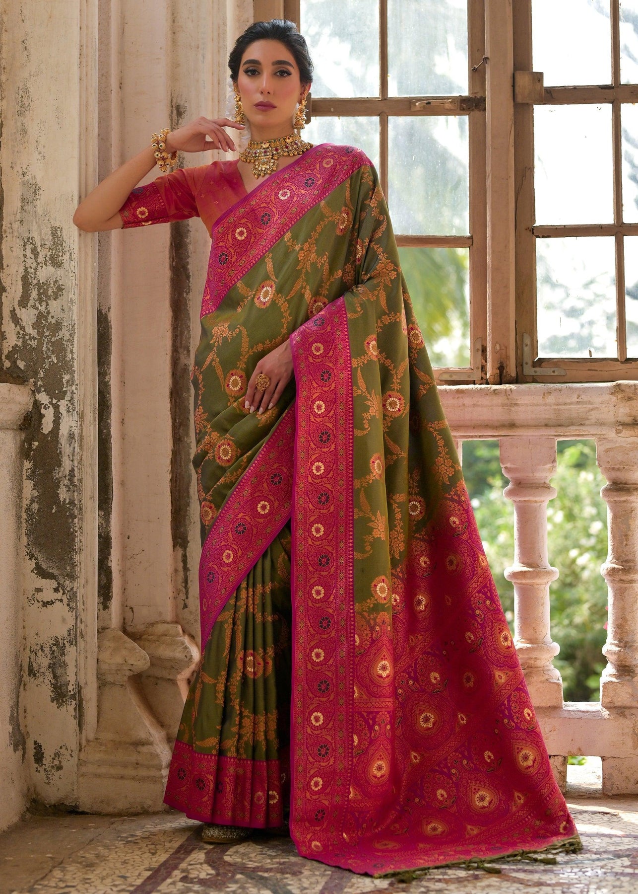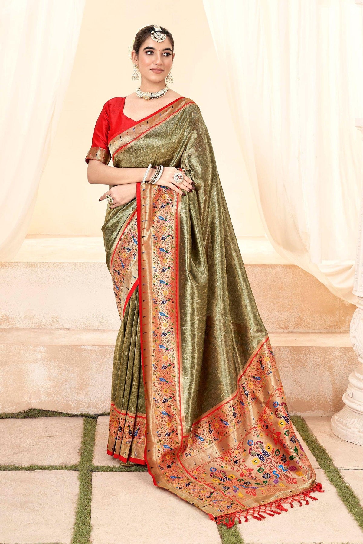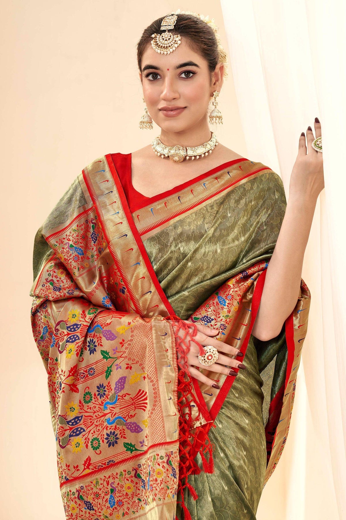Mehendi Green Color Art Silk Fabric Function Wear Tempting Palazzo Suit