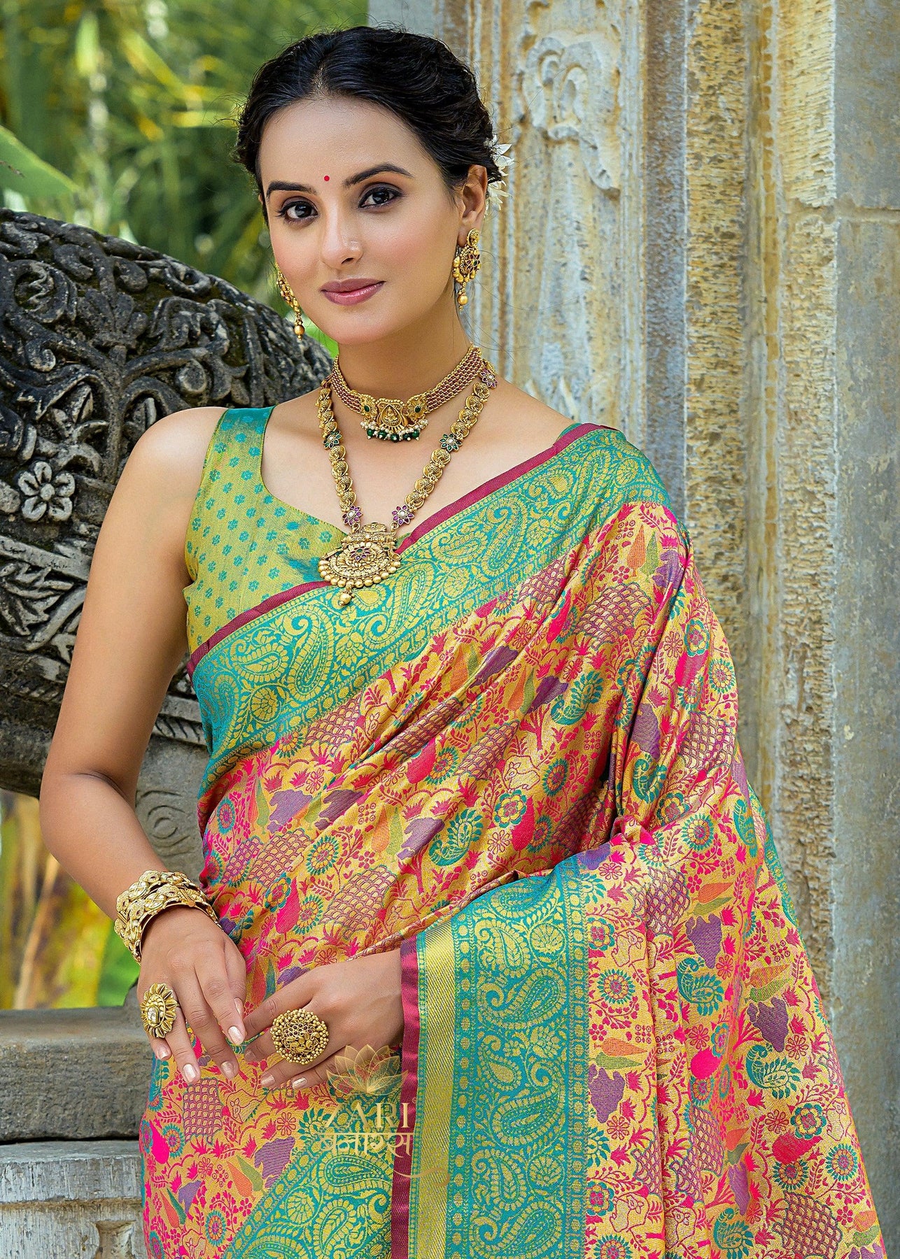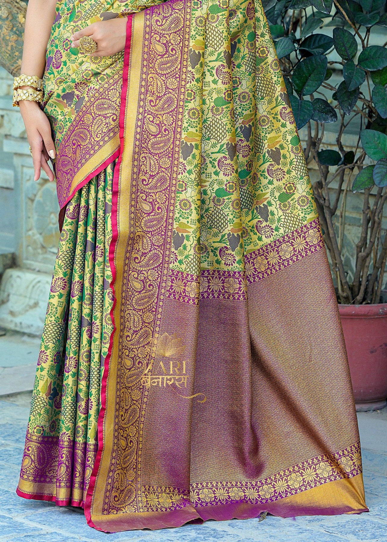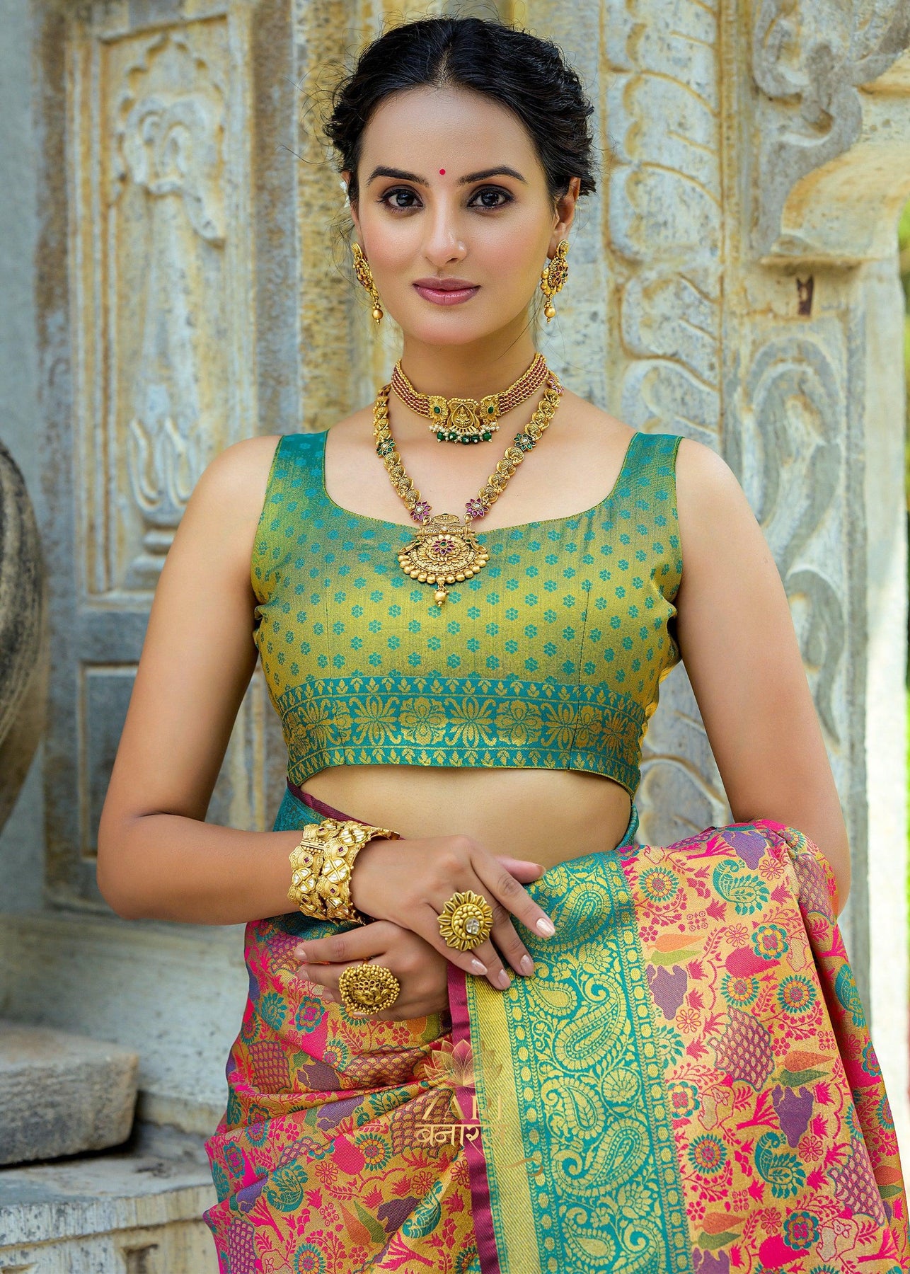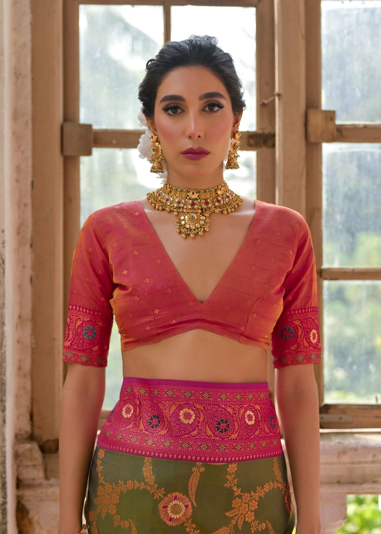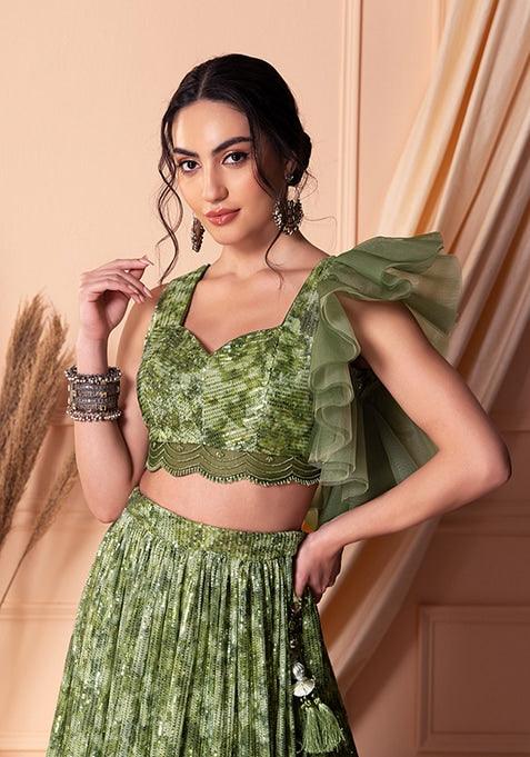 Mehendi Green Color Art Silk Fabric Function Wear Tempting Palazzo Suit