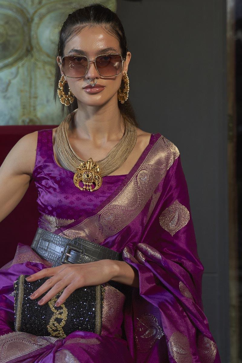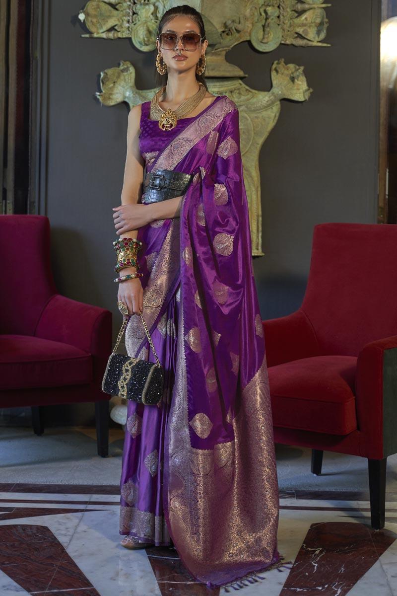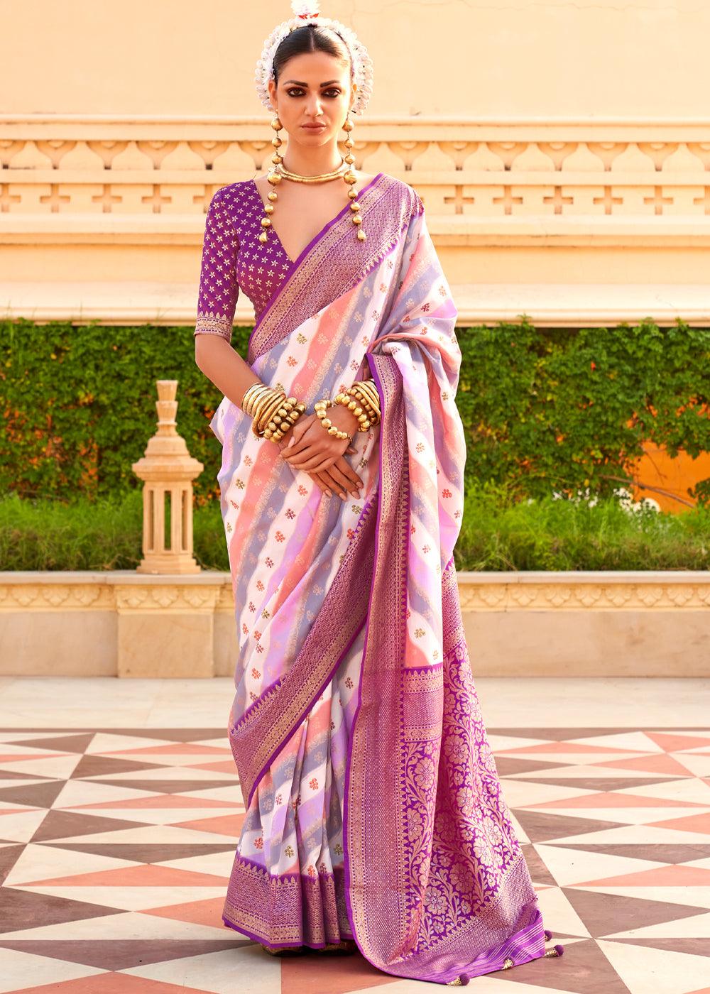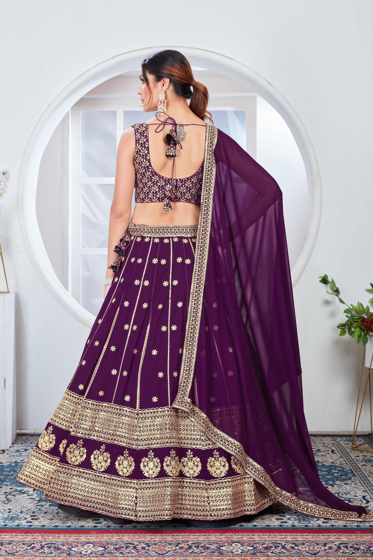 Purple Floral Cotton Silk Lehenga Choli Set with Zari Border for Elegant Occasions