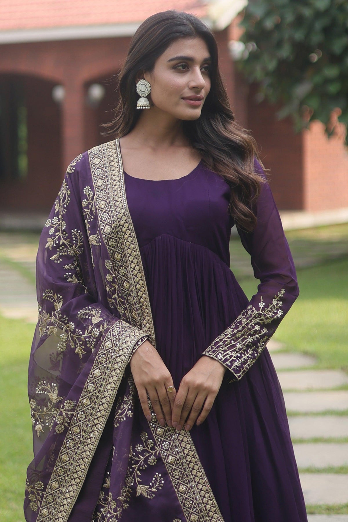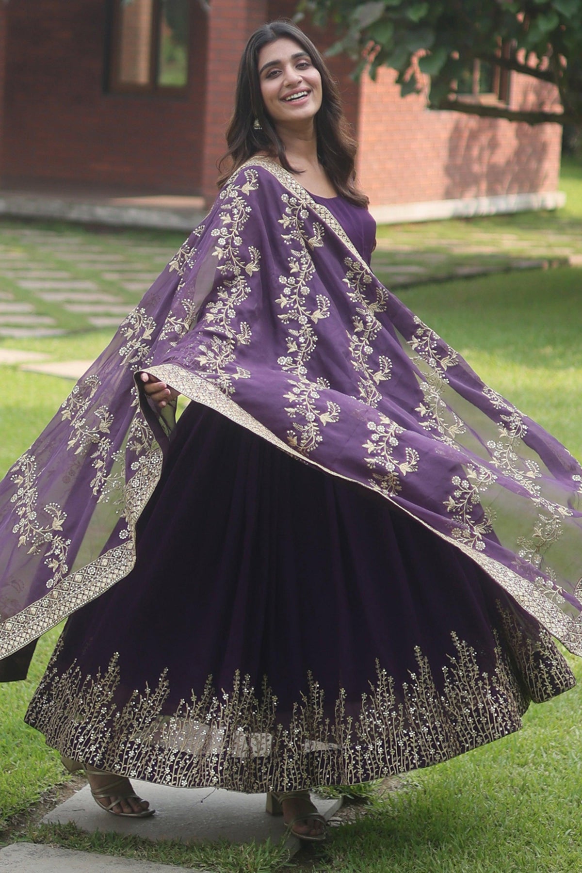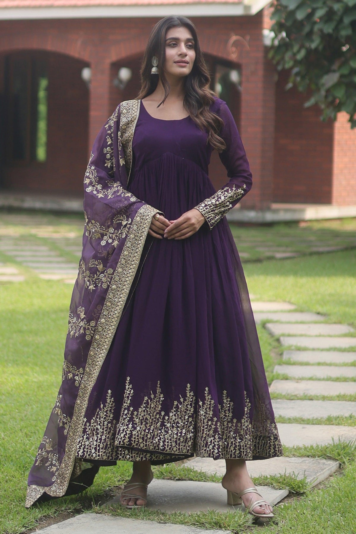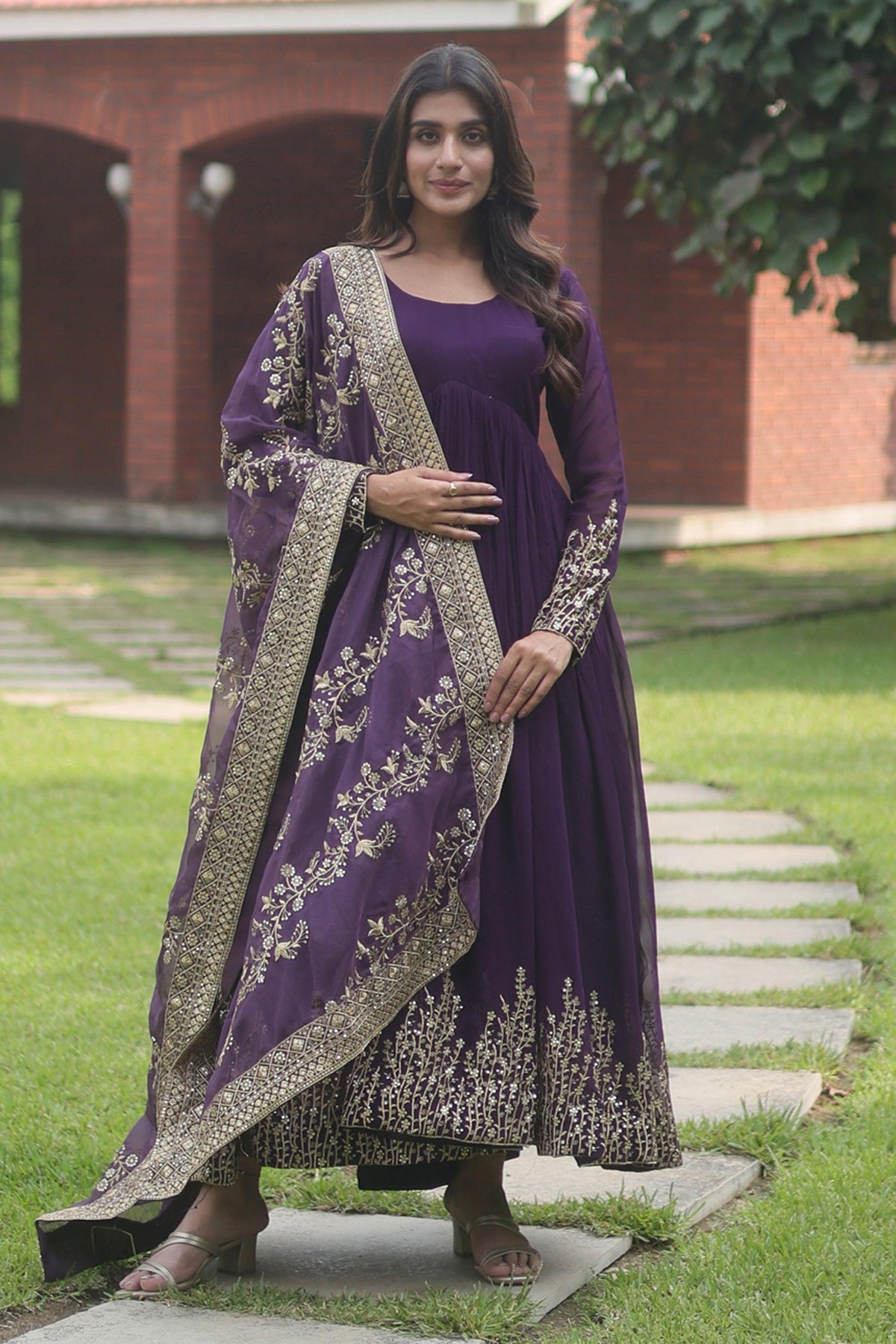 Elevate your ethnic wardrobe with this stunning purple floral lehenga choli set, crafted from luxurious cotton silk. The enchanting floral print is beautifully complemented by a delicate zari border, making it perfect for elegant occasions. The lehenga is designed with a semi-stitched construction, allowing for a customizable fit of up to 42 inches, while the flair of the lehenga measures an impressive 3.20 meters.