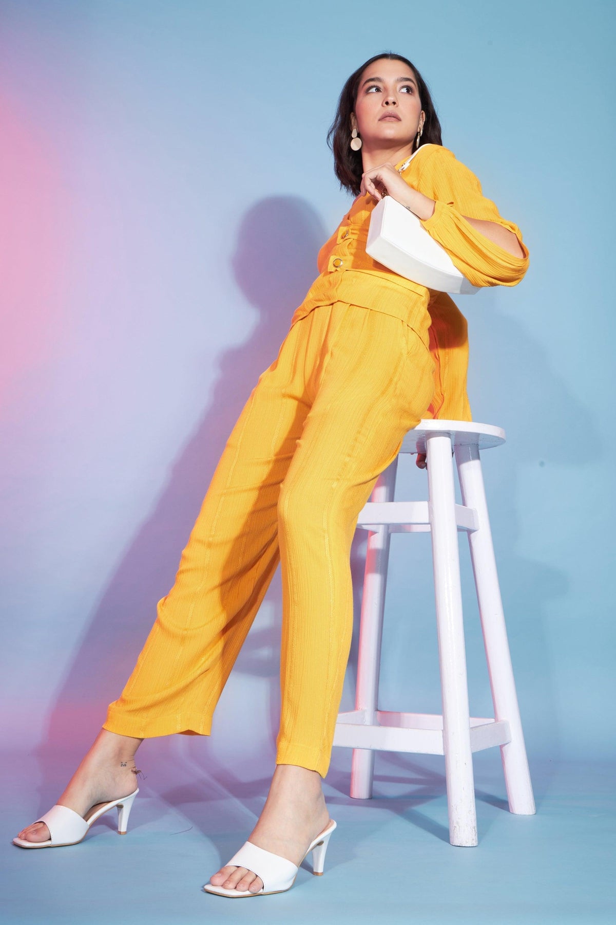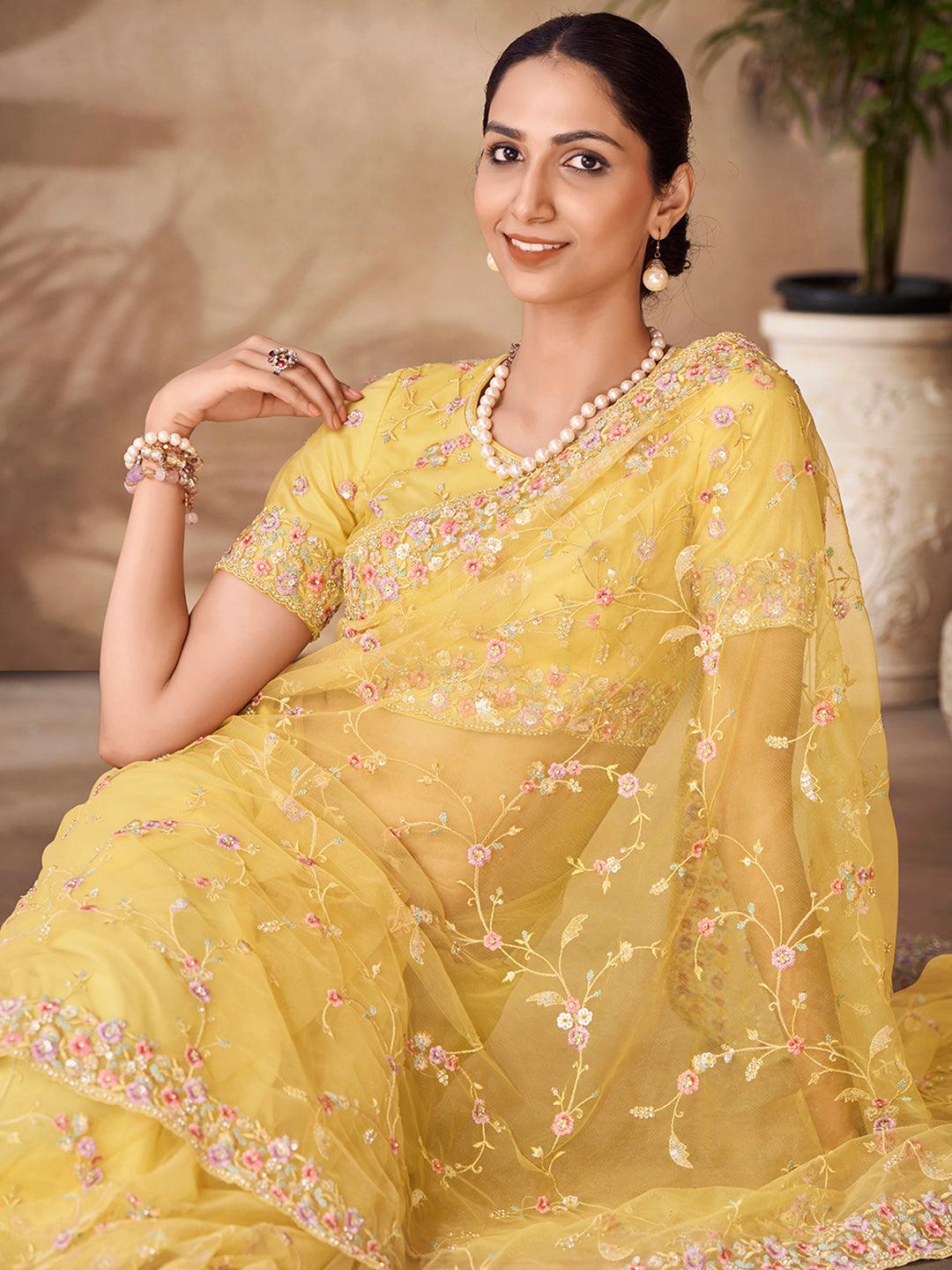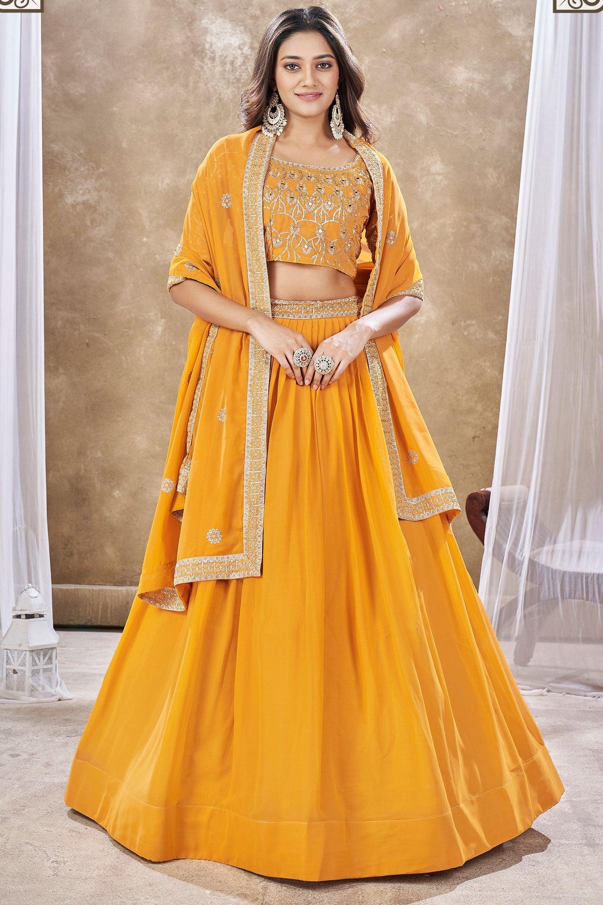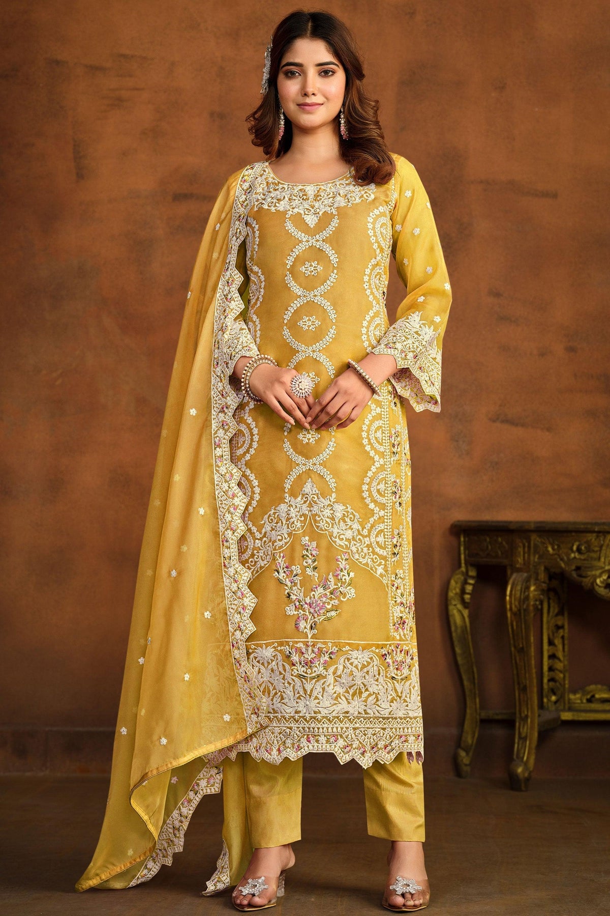 Yellow Color Chinon Fabric Enticing Sangeet Wear Readymade Palazzo Suit