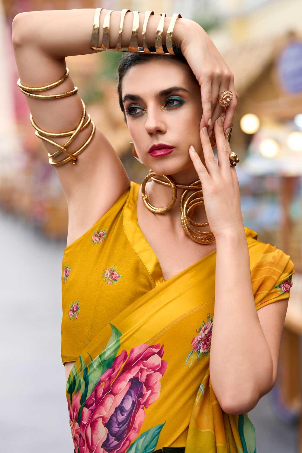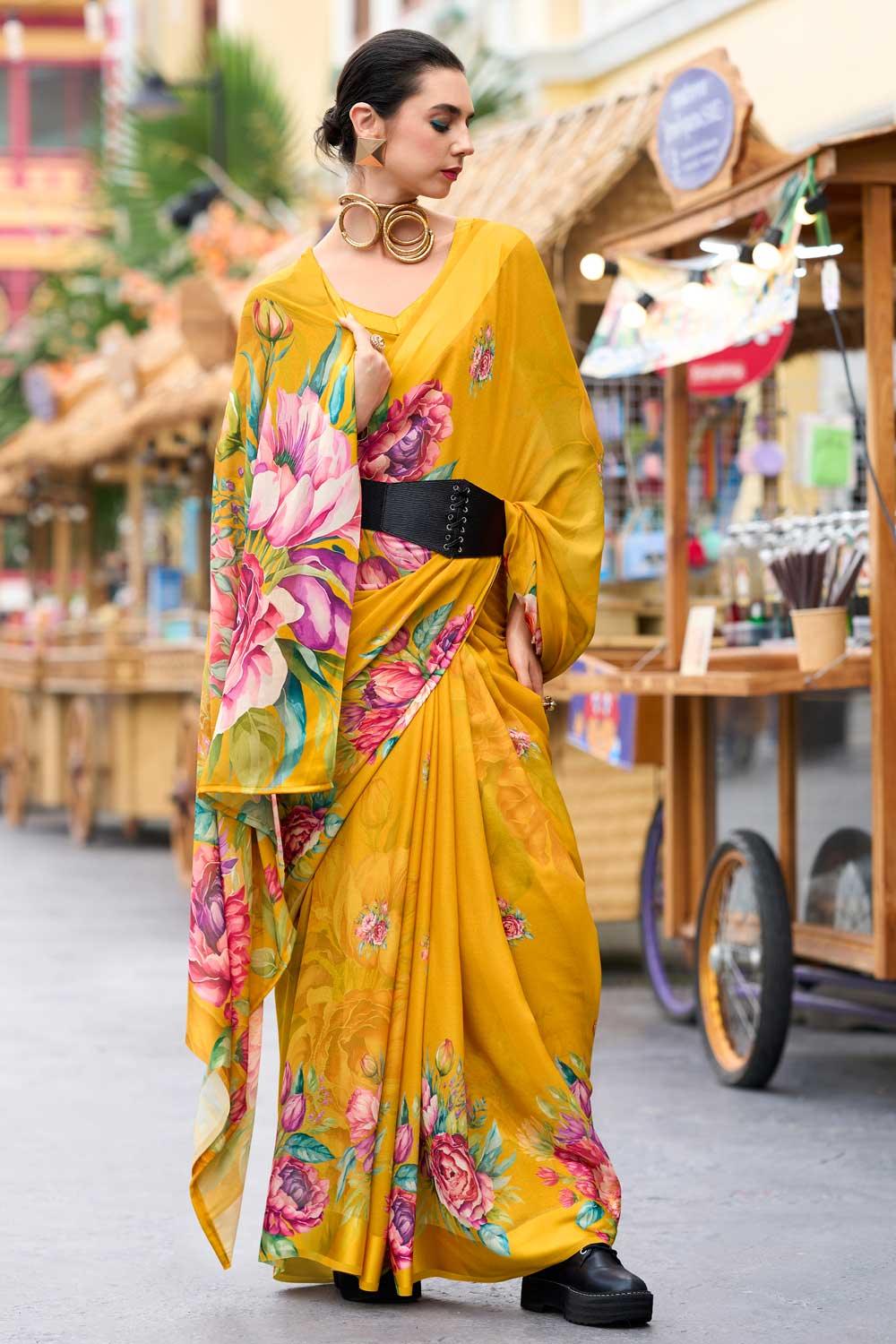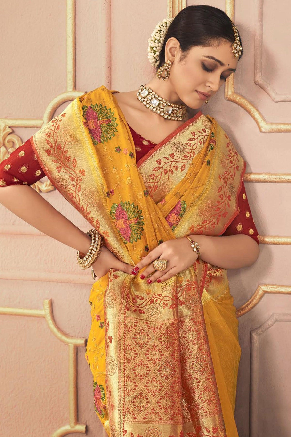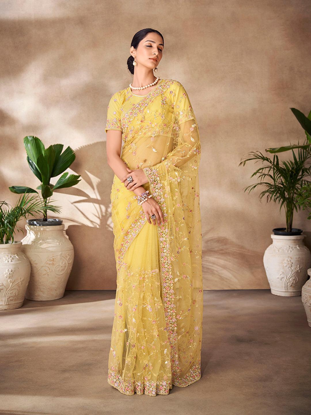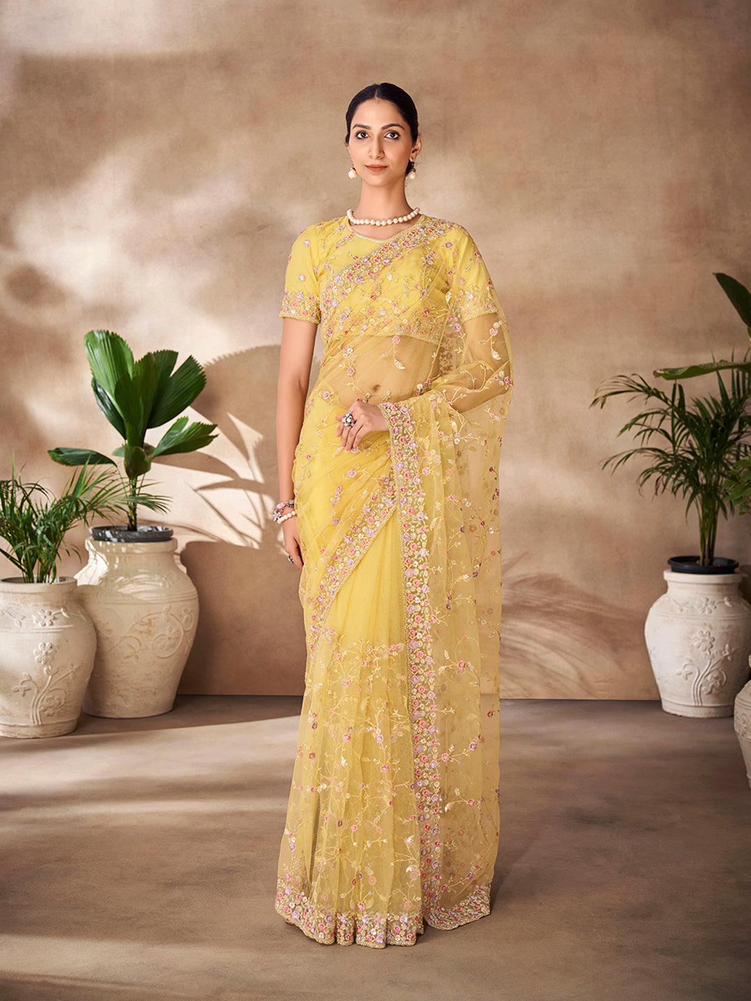 Yellow Color Chinon Fabric Enticing Sangeet Wear Readymade Palazzo Suit