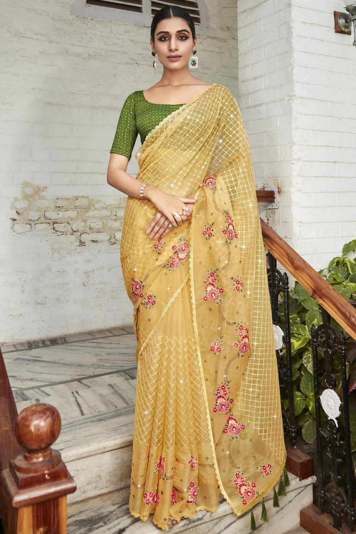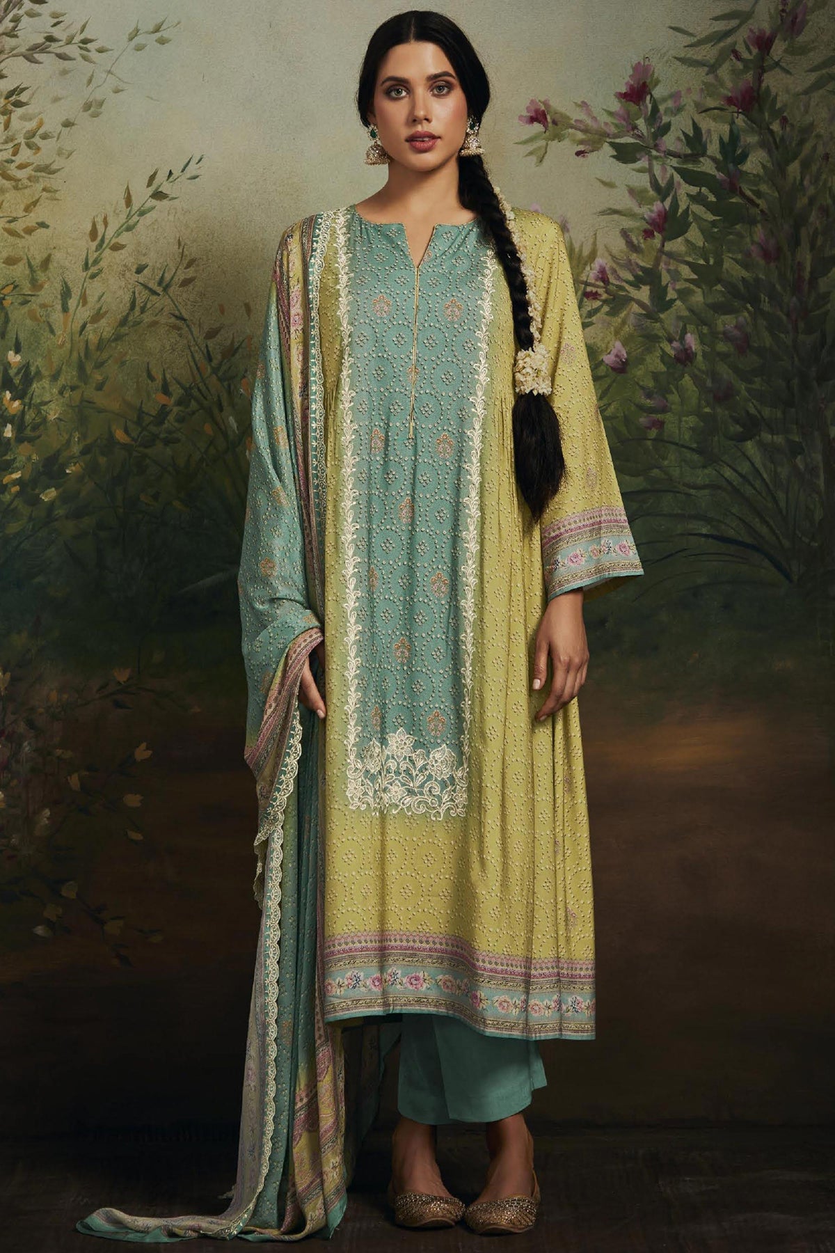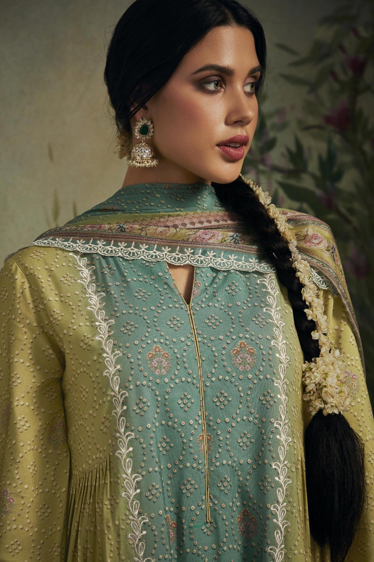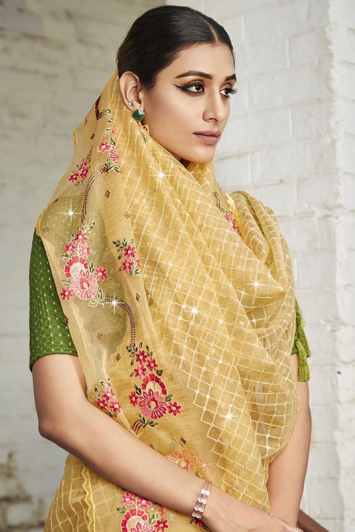 Elegant and ready-to-wear, our Chinon fabric Palazzo Suit is perfect for Sangeet wear. Adorned with exquisite embroidery, this outfit exudes charm and sophistication, making you the center of attention at any event.