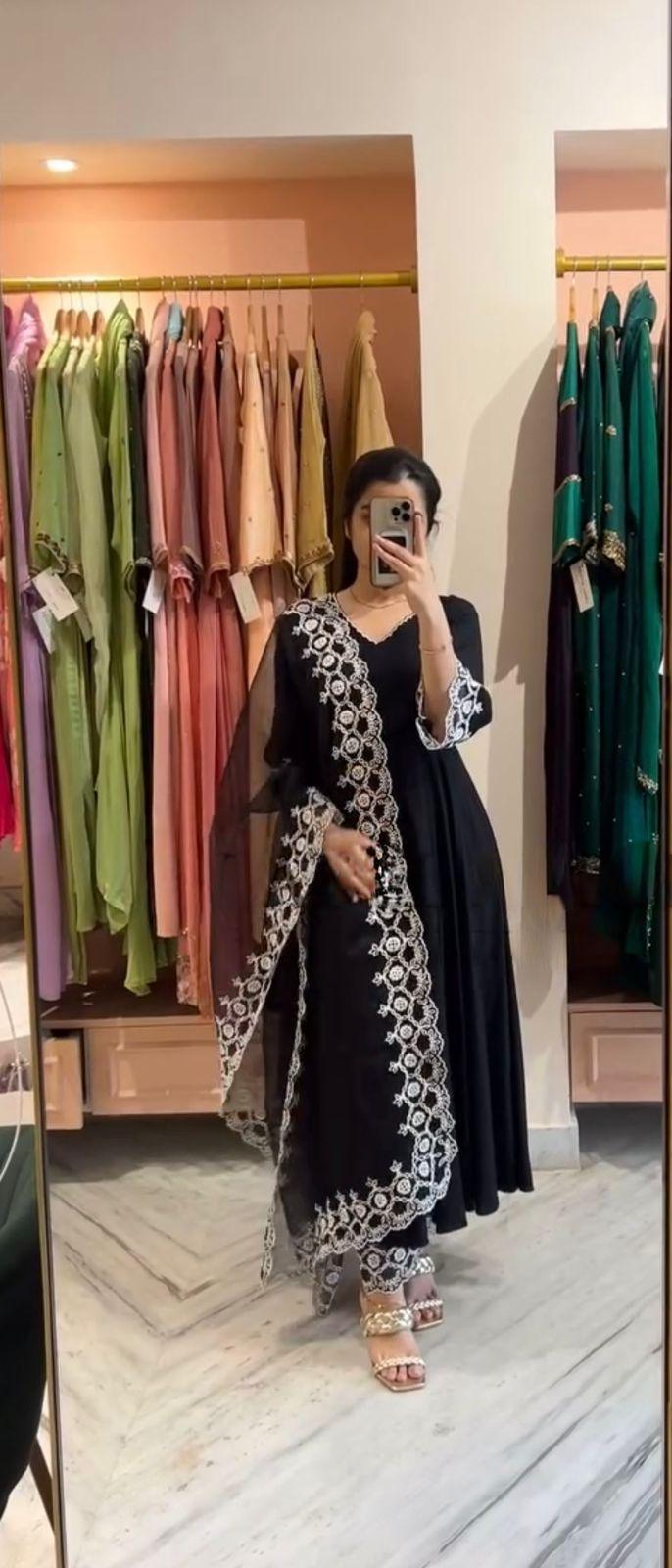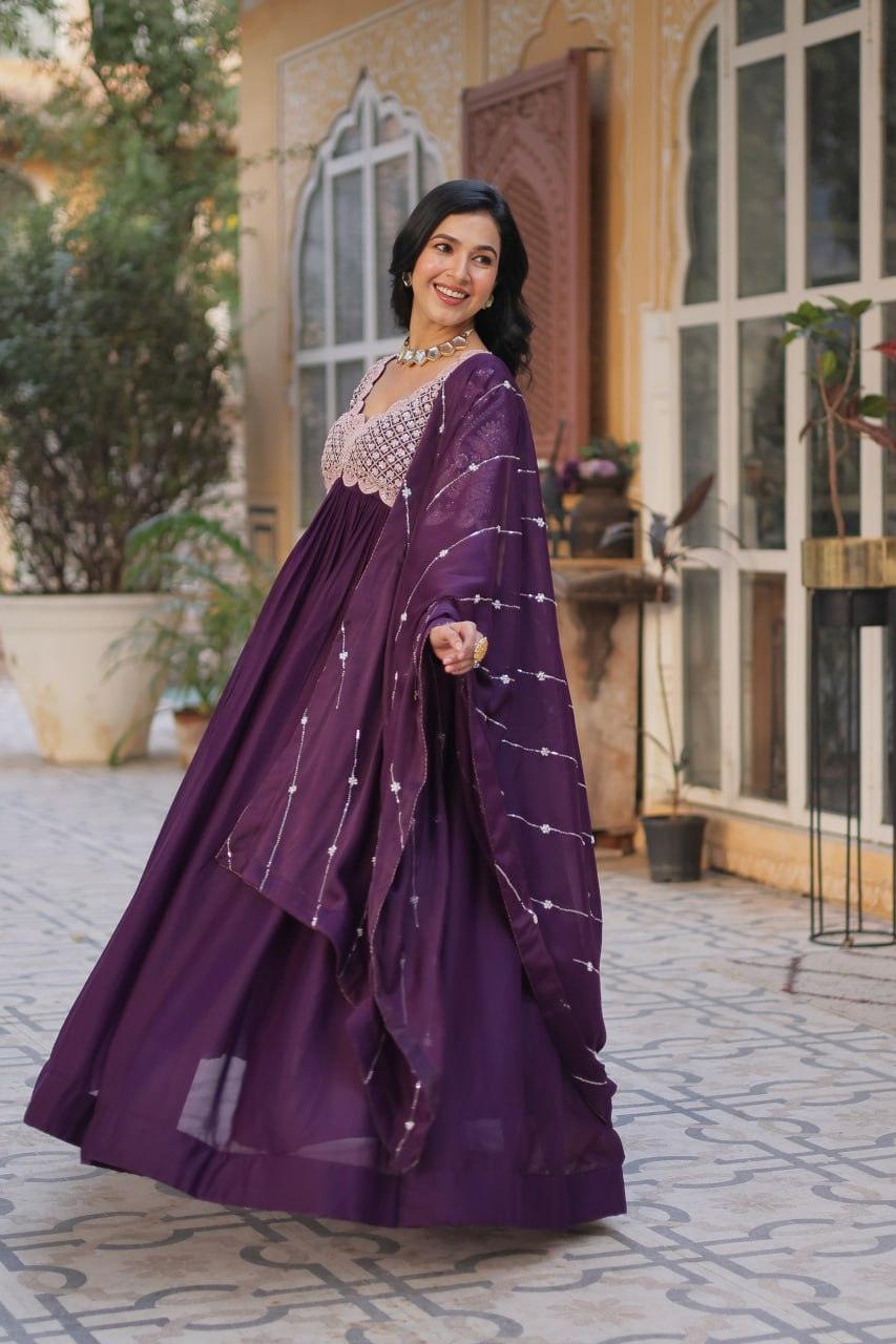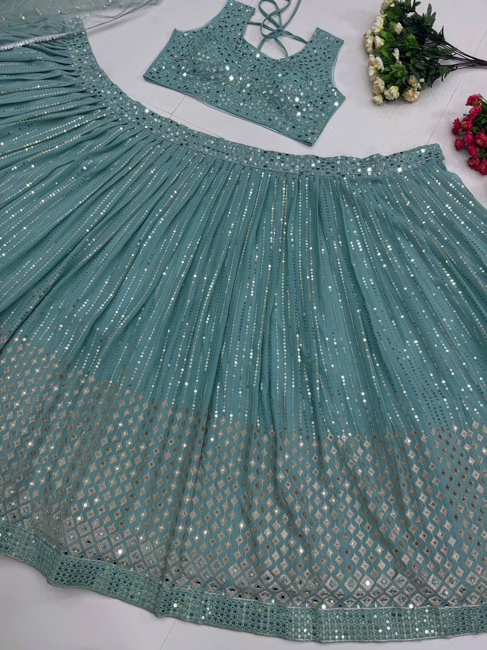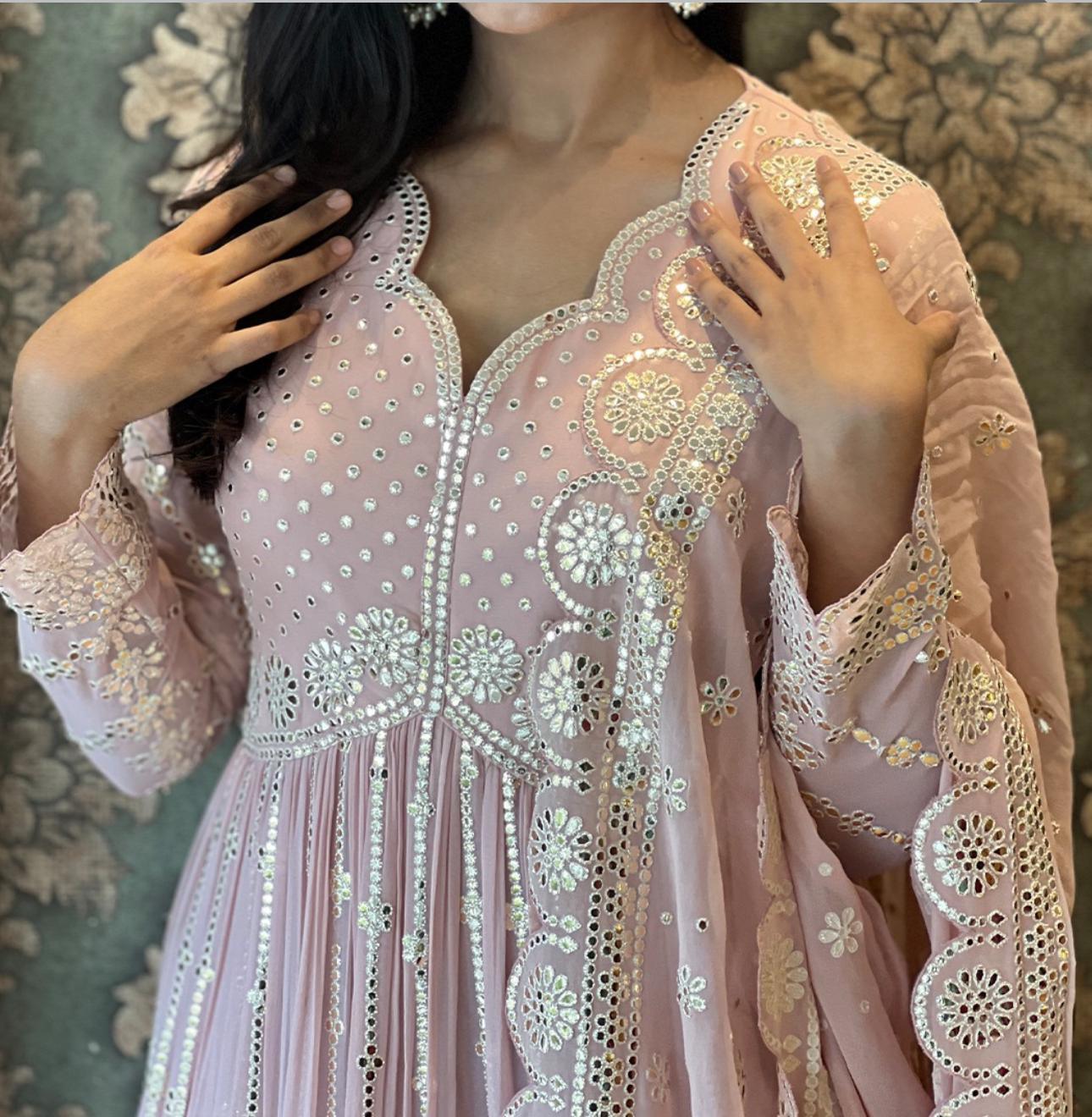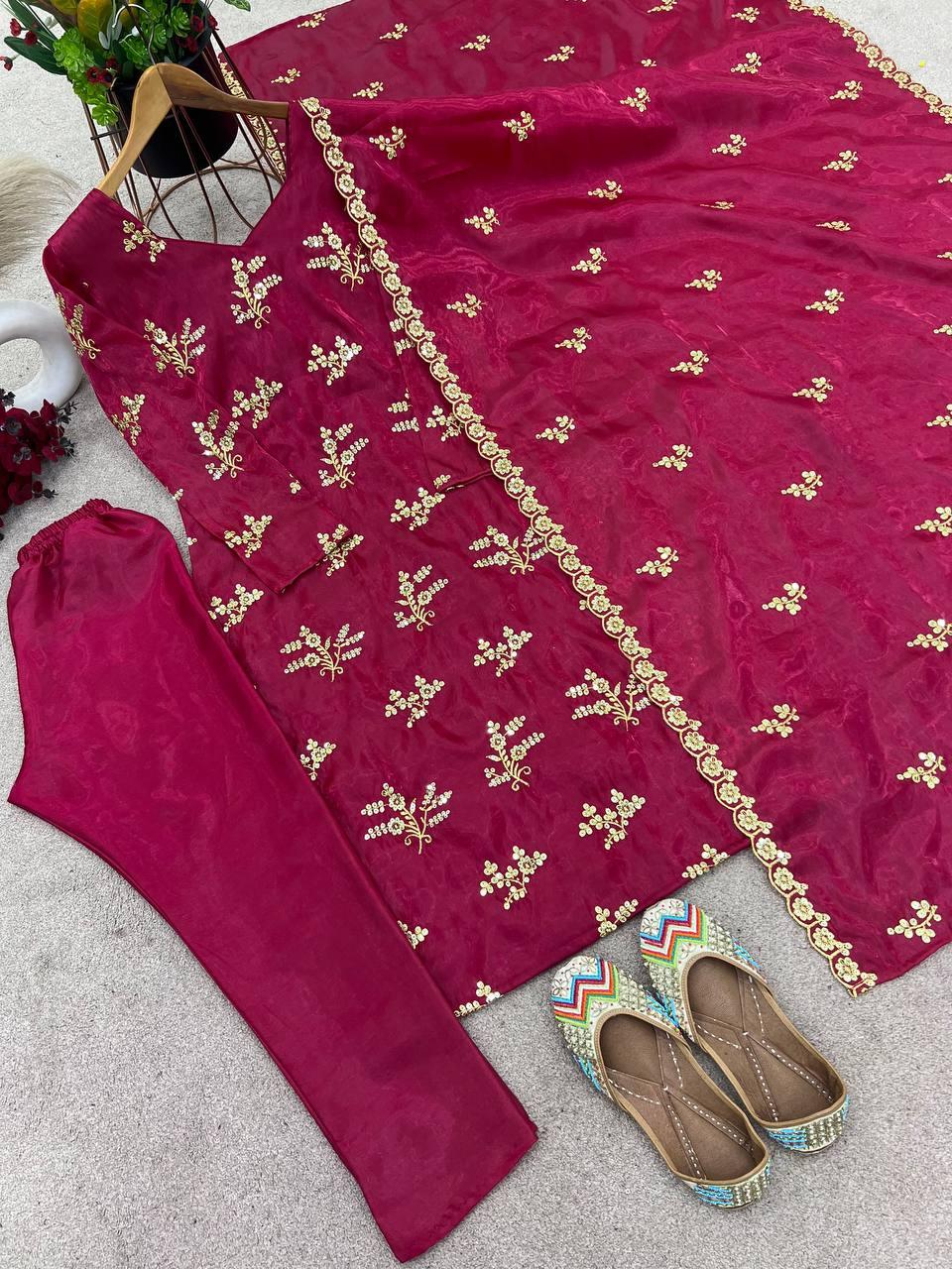 | WORK | Thread with Sequnce with Rivet moti with fancy lace broder *Front and back both side work* |