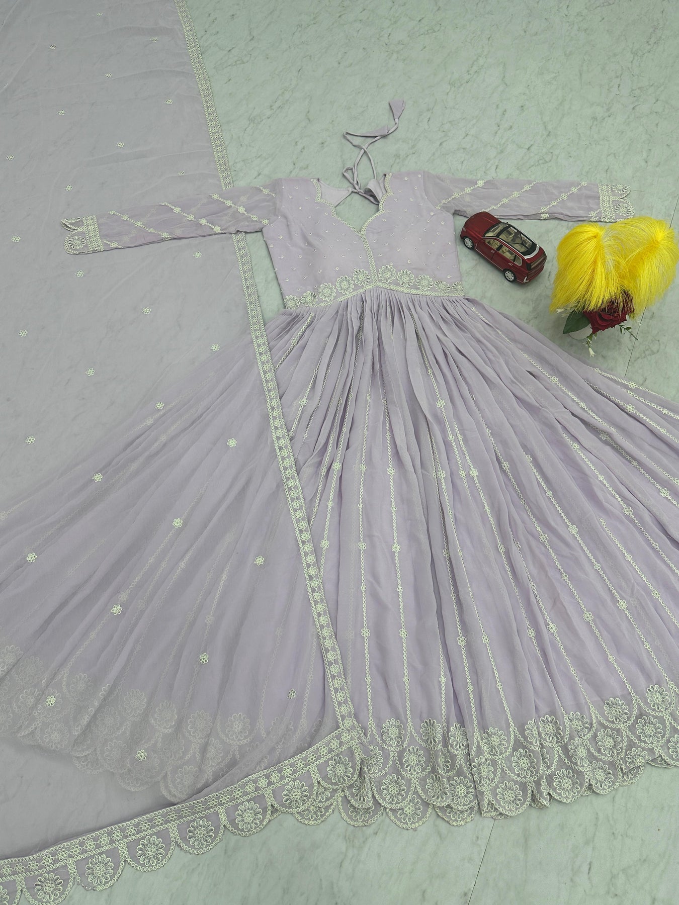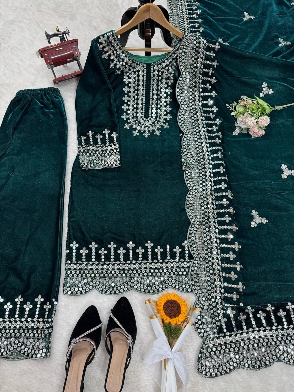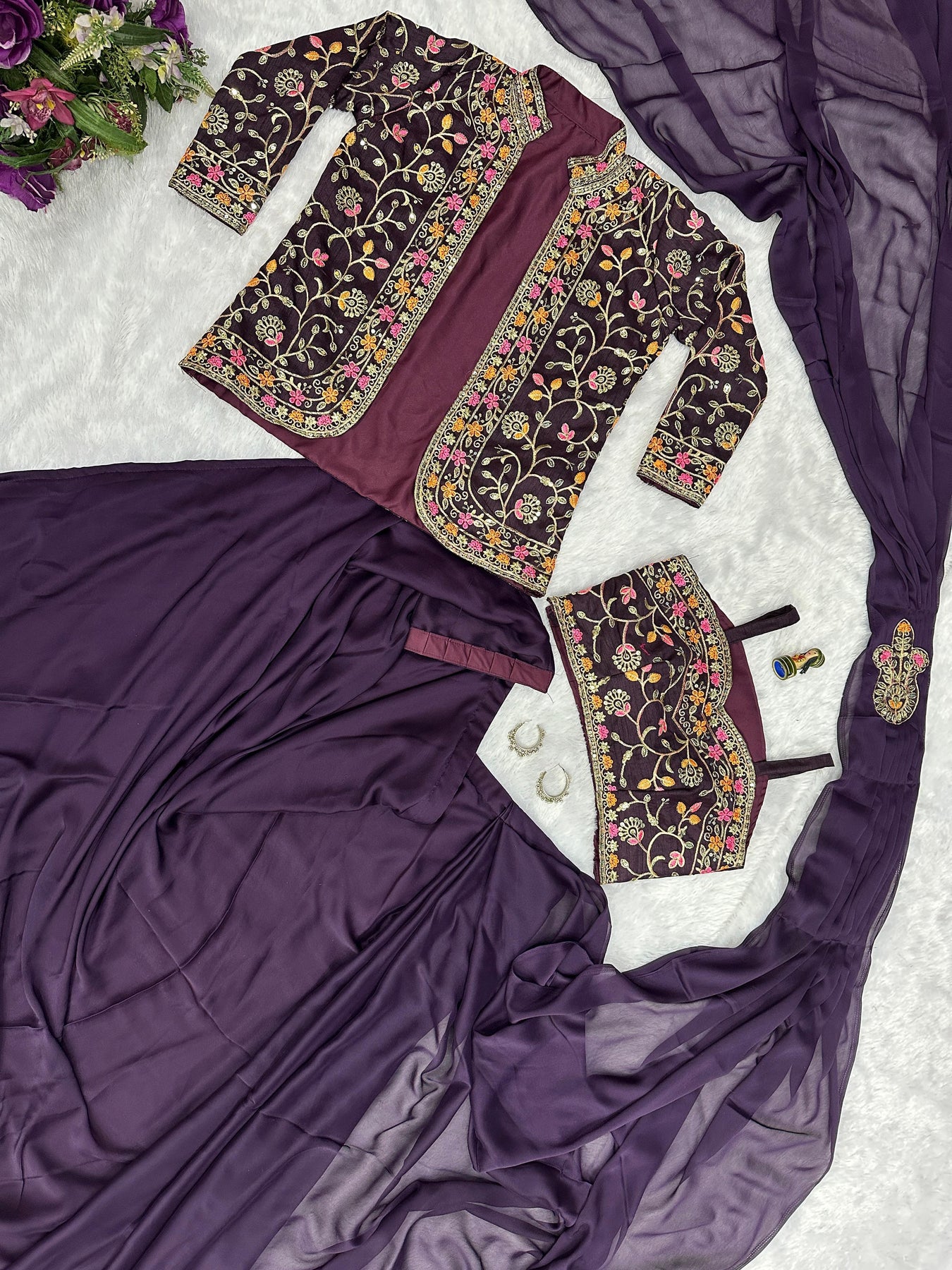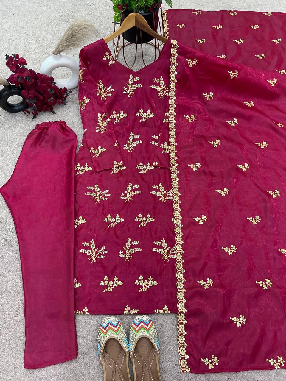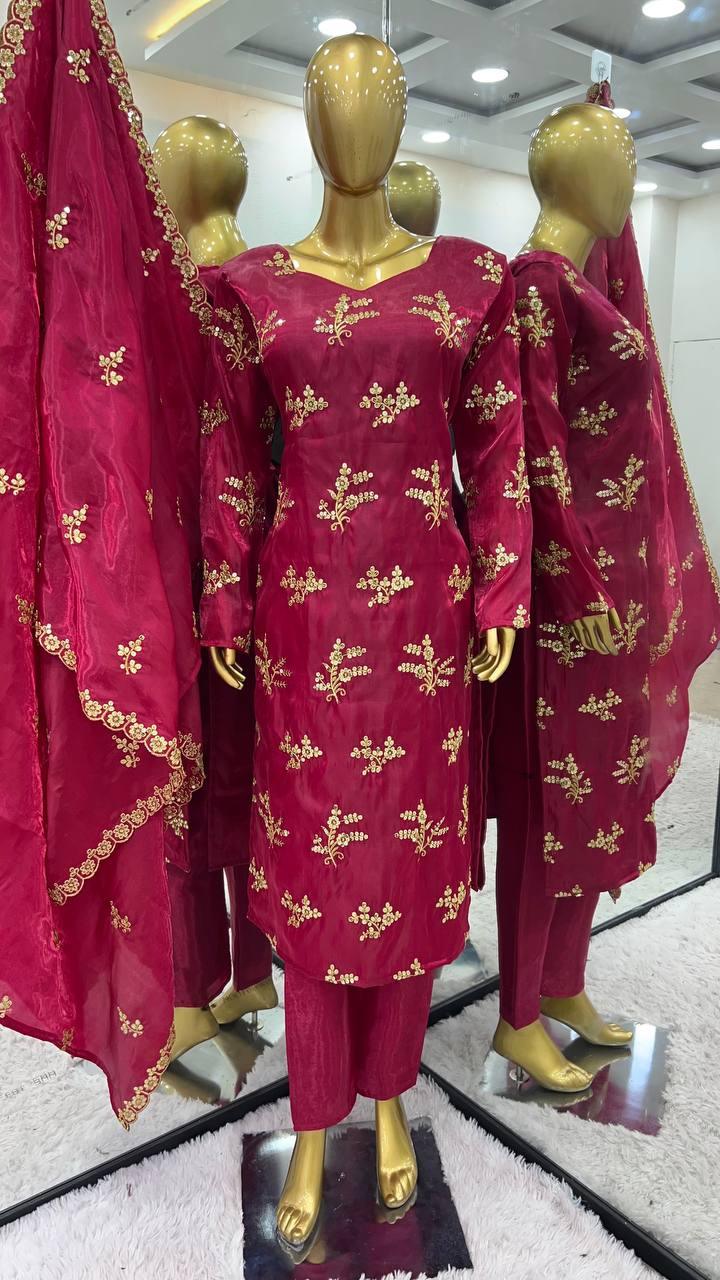 | WORK | Thread with Sequnce with Rivet moti with fancy lace broder *Front and back both side work* |