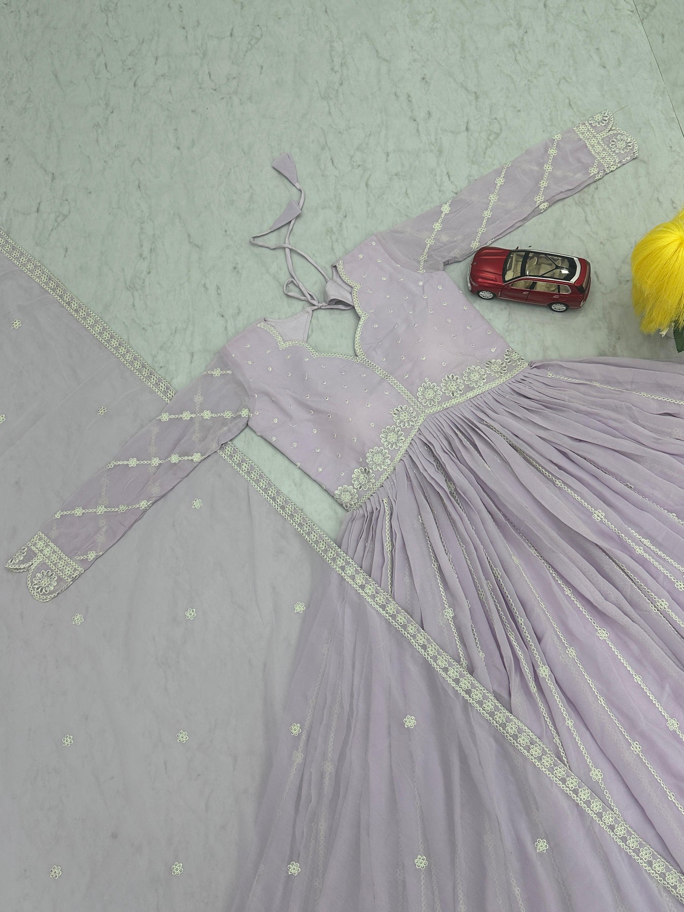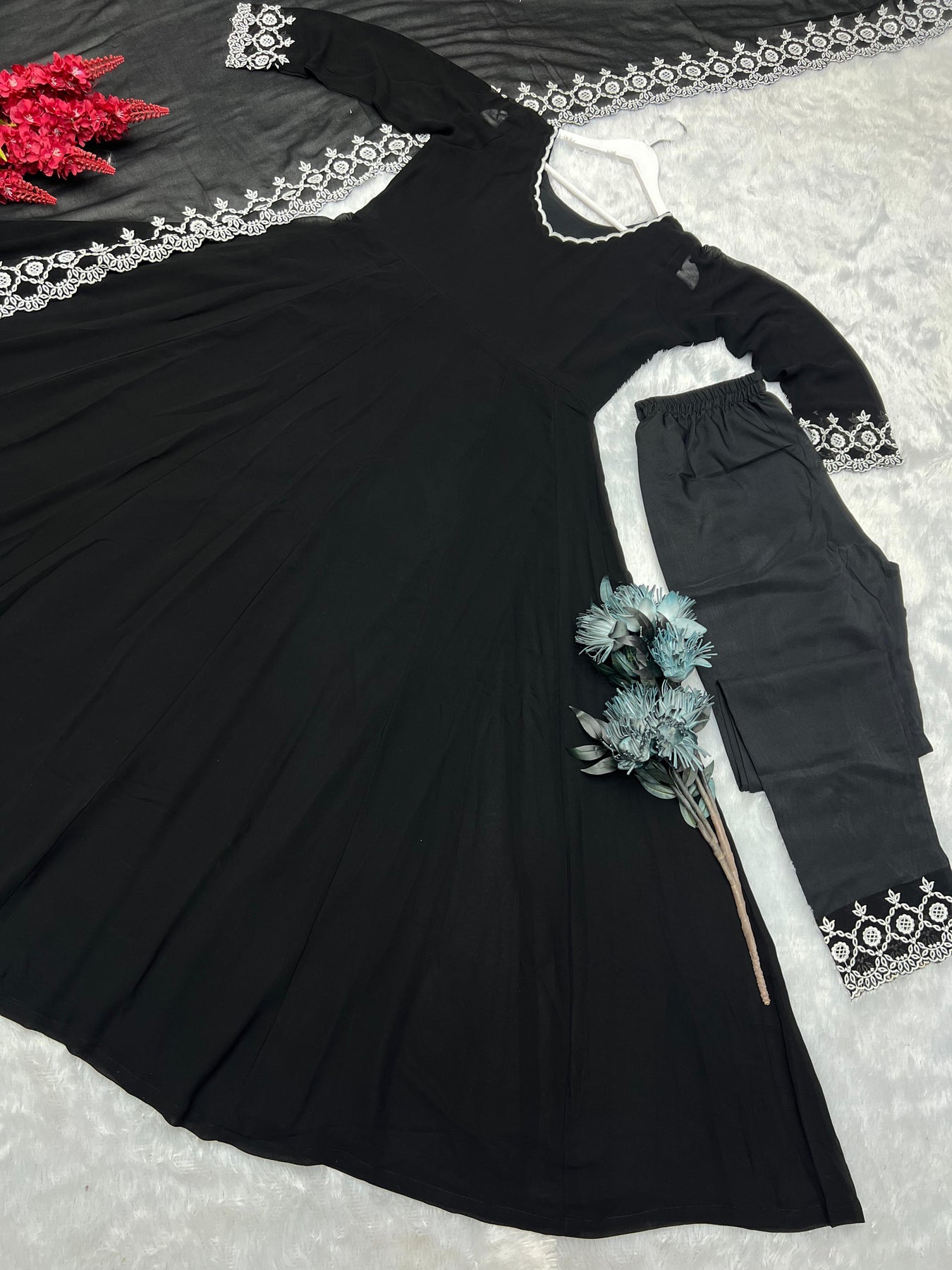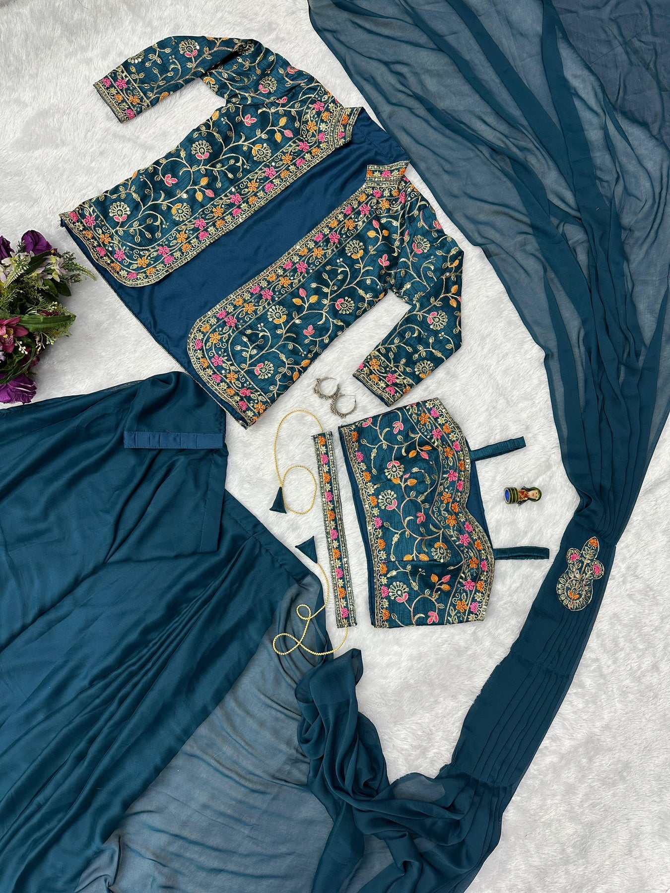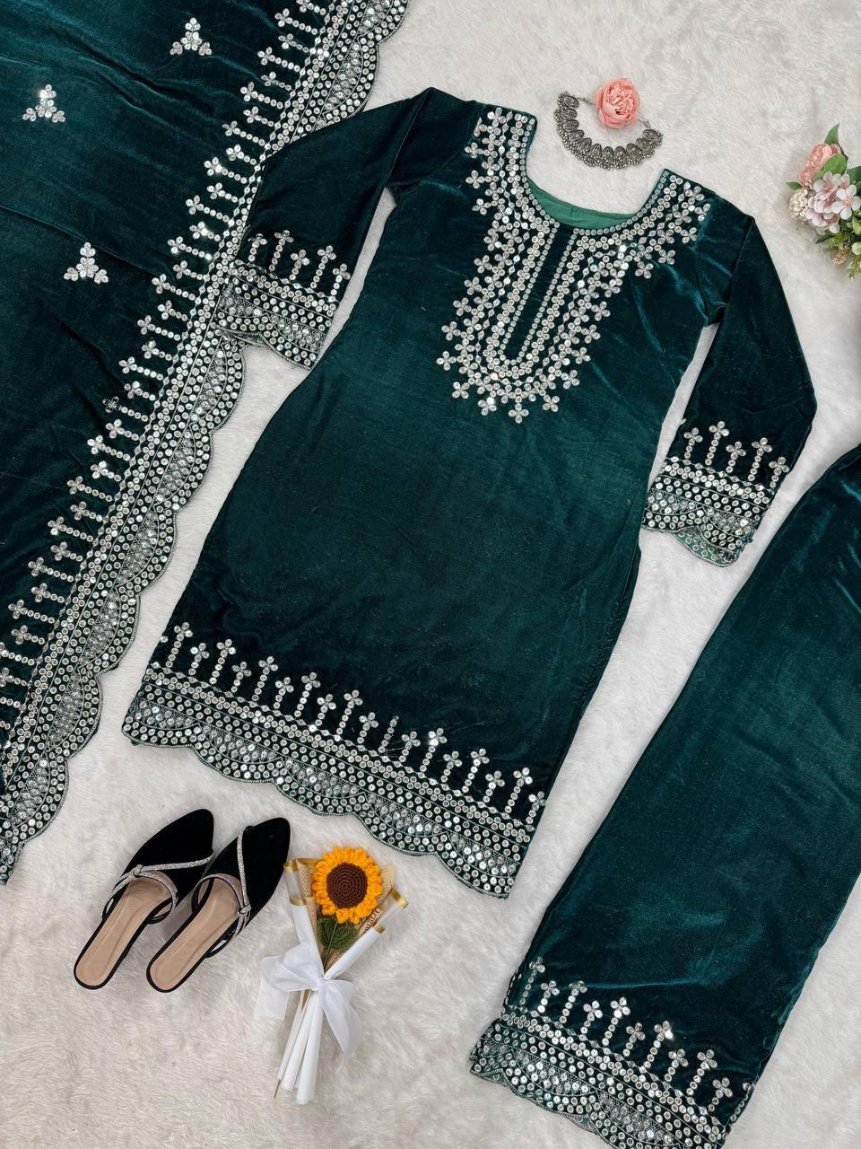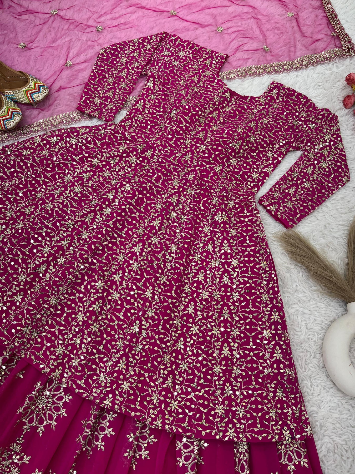 | WORK | Thread with Sequnce with Rivet moti with fancy lace broder *Front and back both side work* |