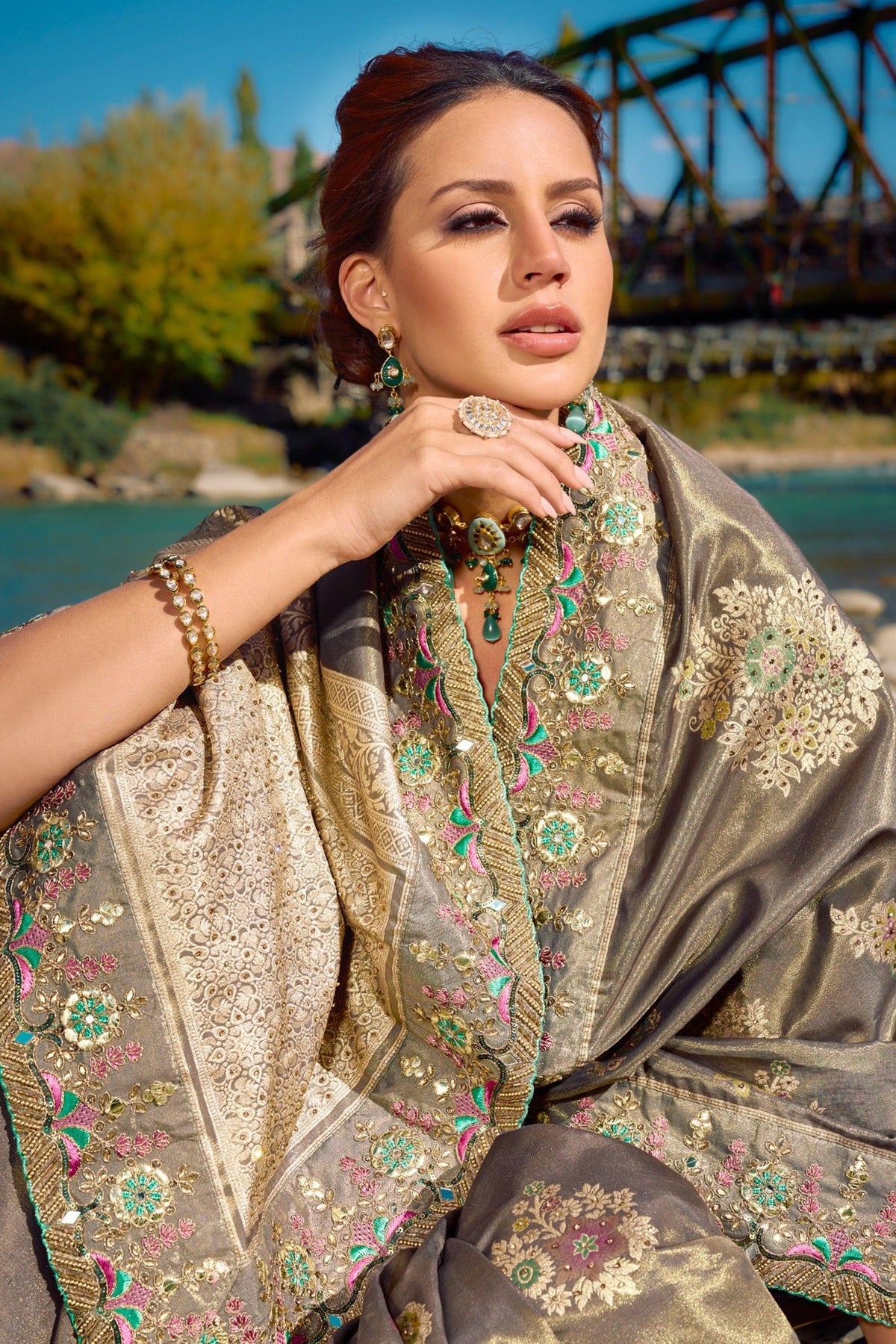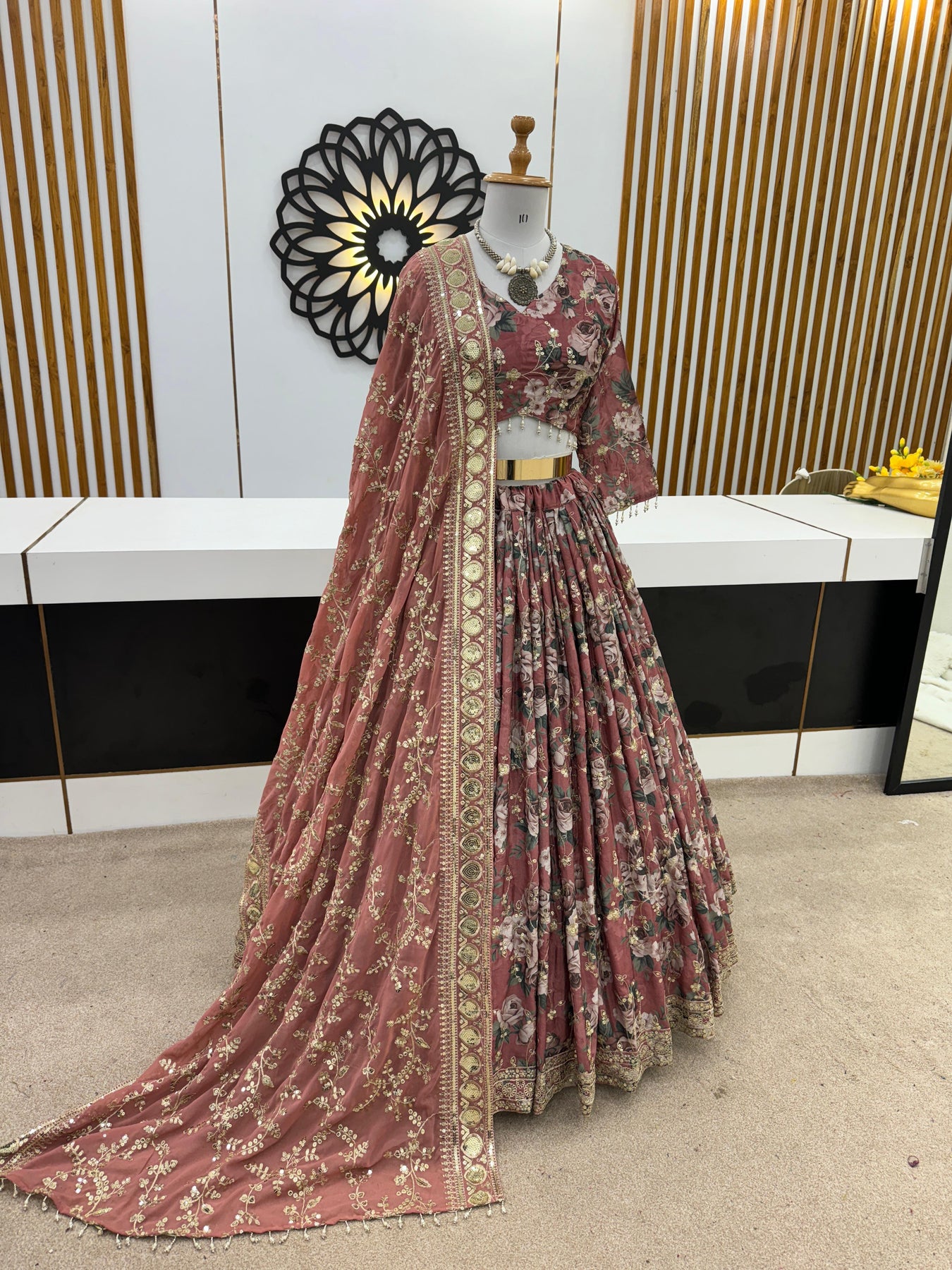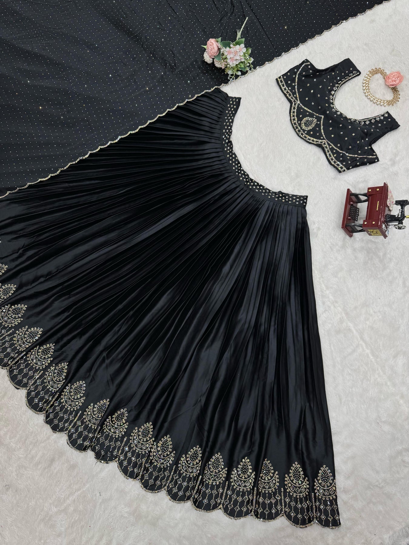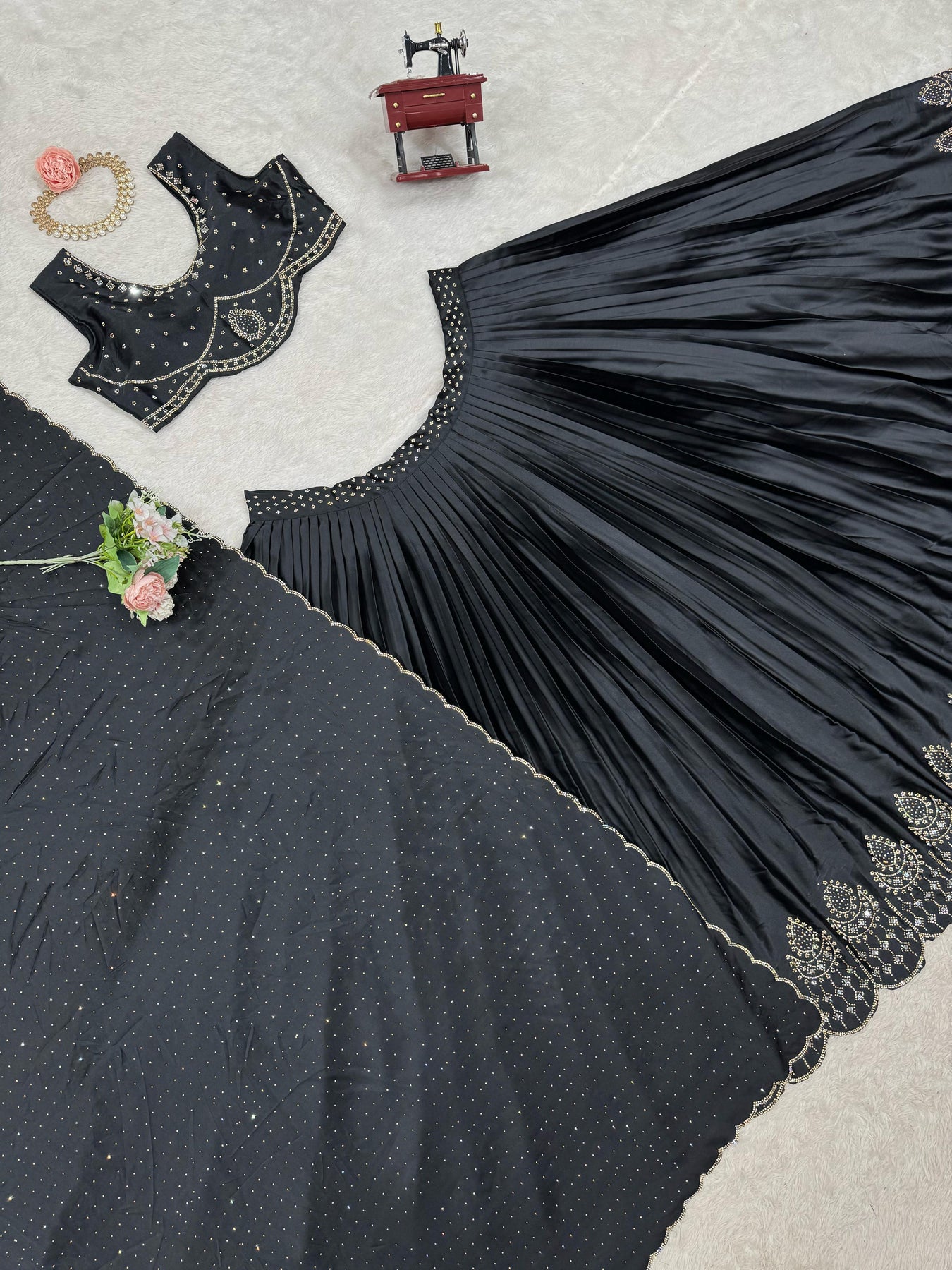| Work | thread with Sequnce with Rivet moti with Fourside lace broder |