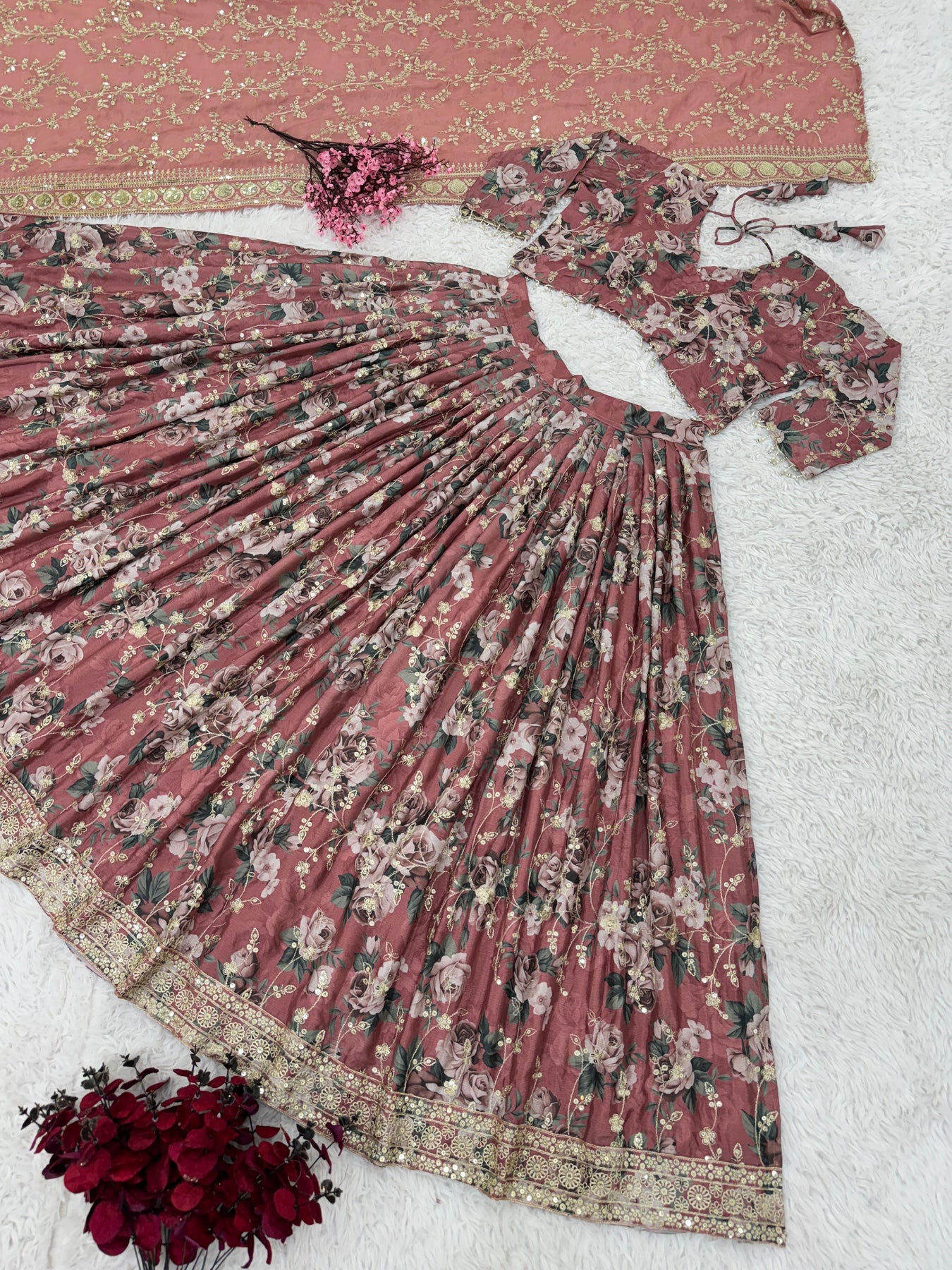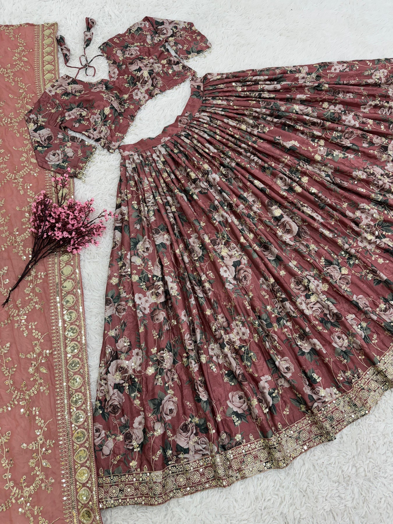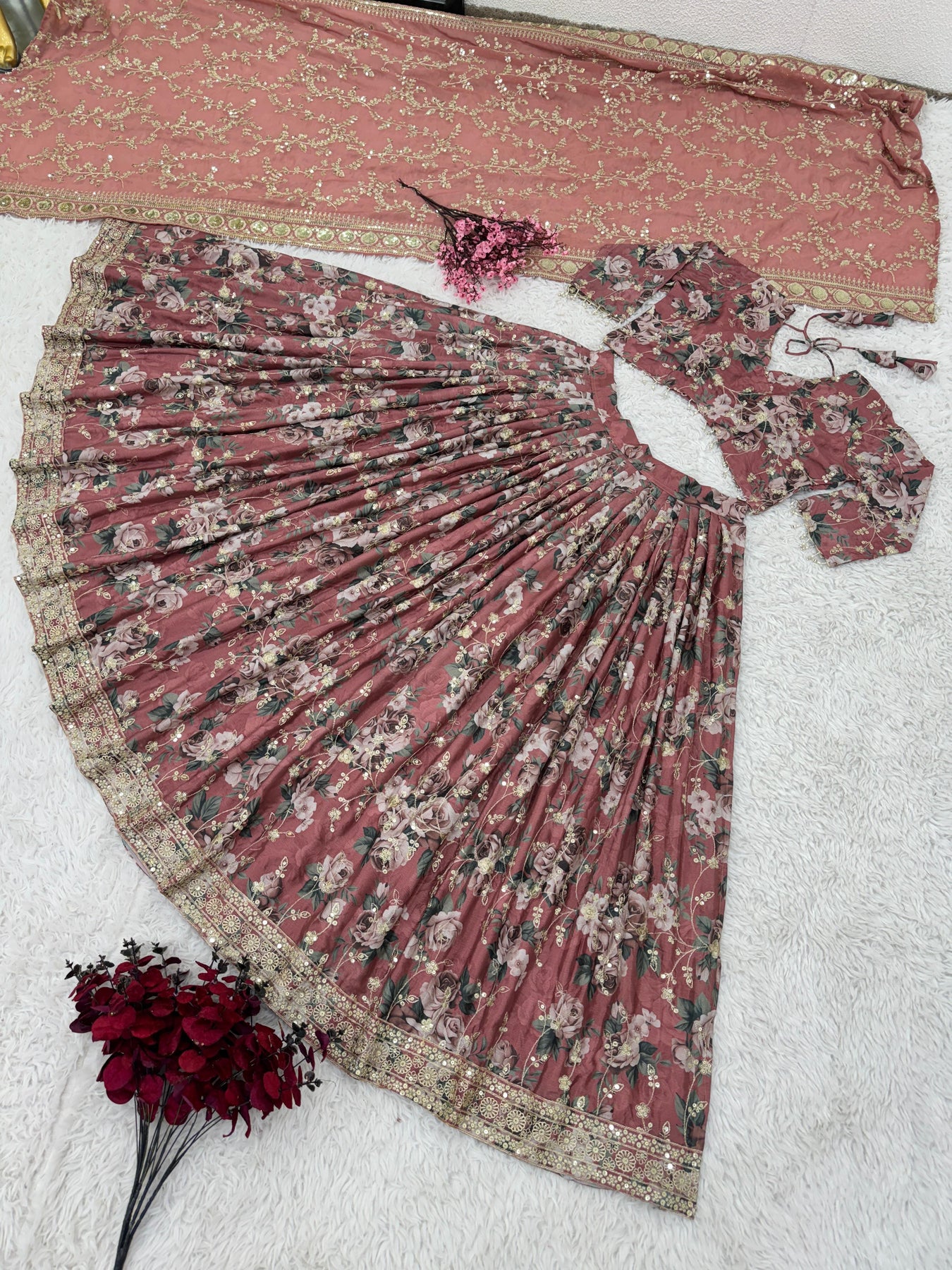 | Size | thread with Sequnce with Rivet moti with fancy lace broder |
