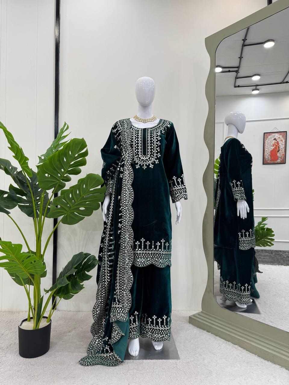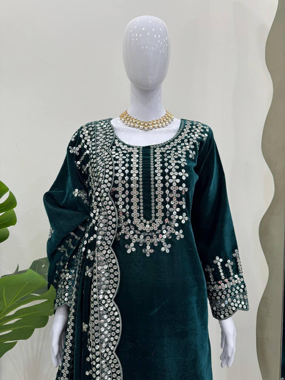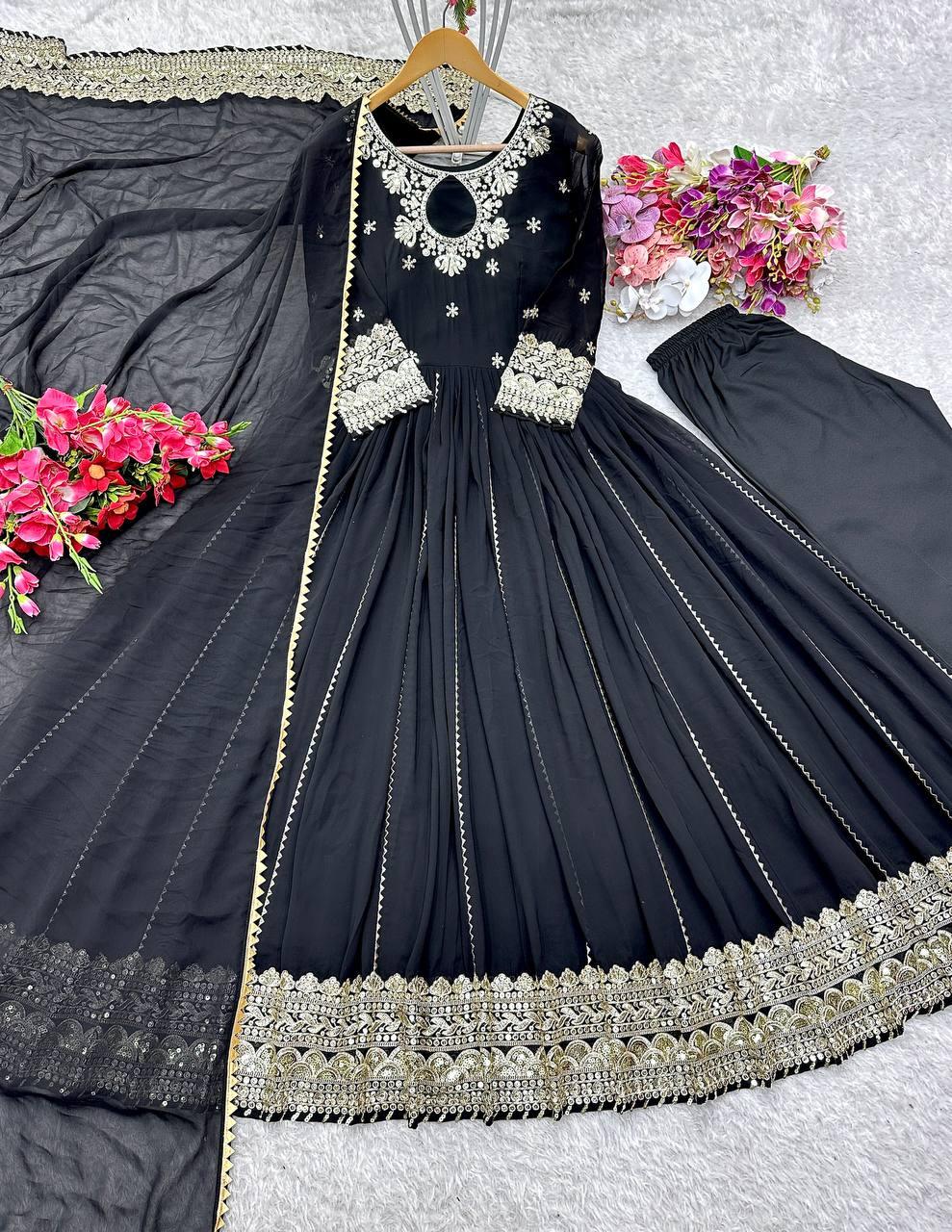 Wedding & Party Wear Heavy Sequence Work Black Color Sharara Suit