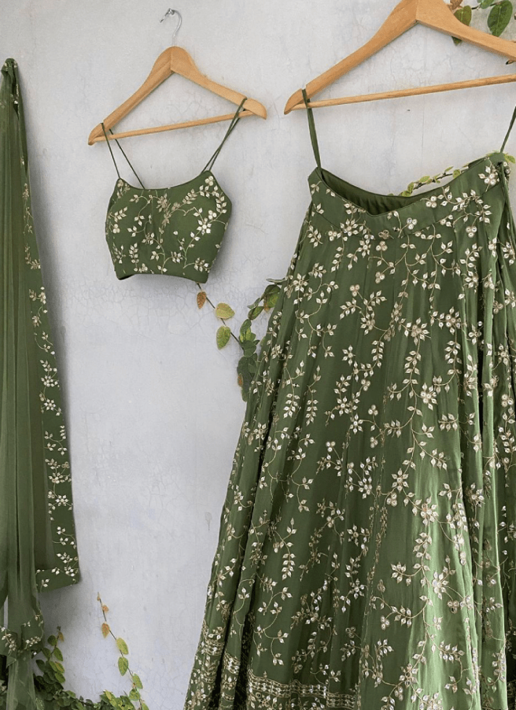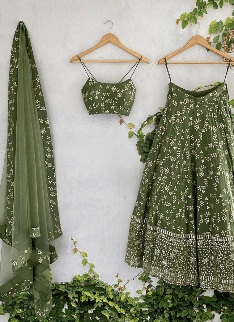 Designer Green Zari Work Georgette Lehenga For Women - women's fashion mart