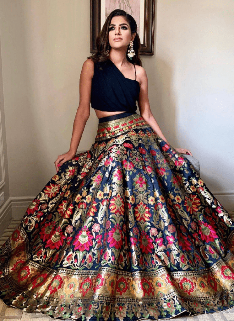 Indo Western Black Banarasi Lehenga With Designer Choli