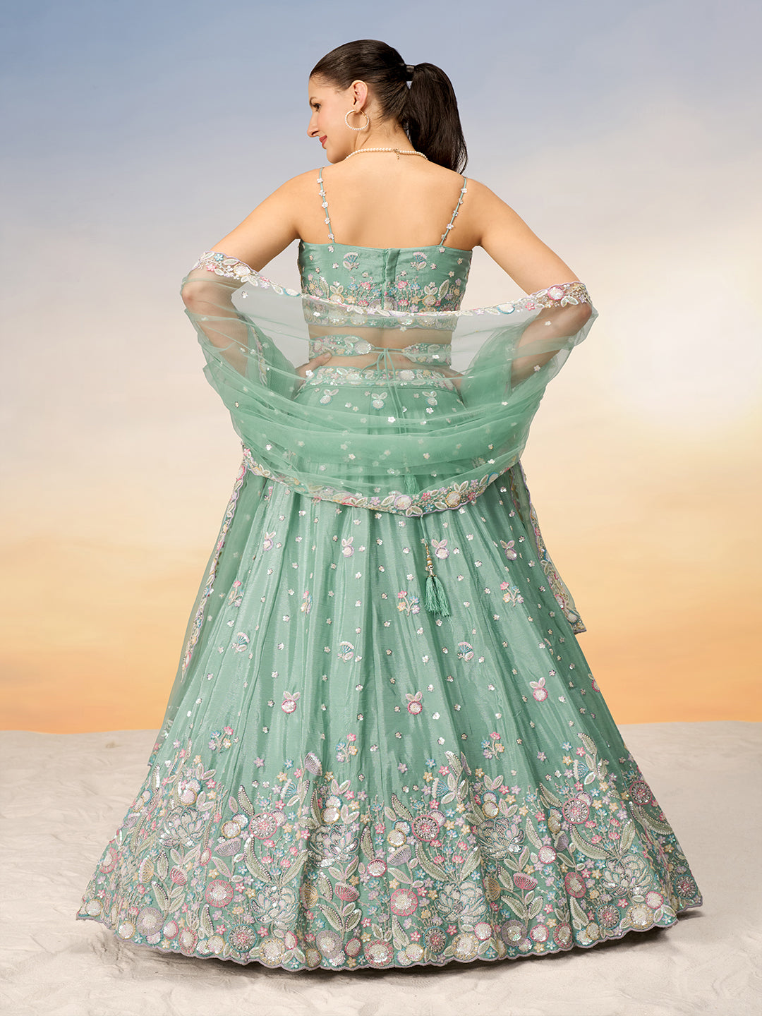Multi Color Chiffon Embroidered using Sequins,Thread & Coding Semi-Stitched Lehenga choli  women's fashion mart