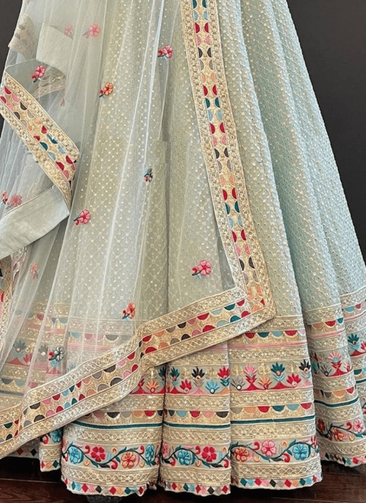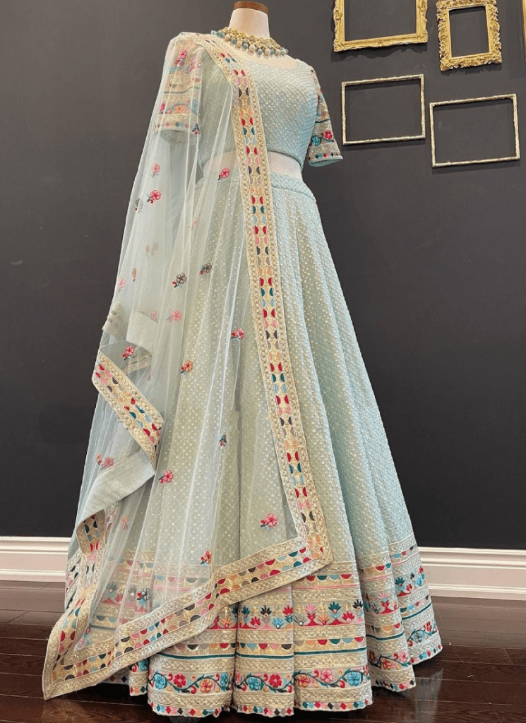 Multi Thread Embroidery Work Sky Blue chaniya choli Online