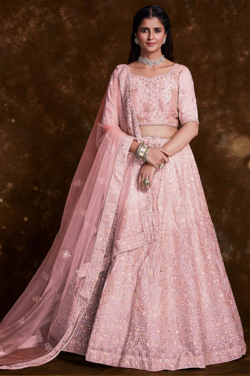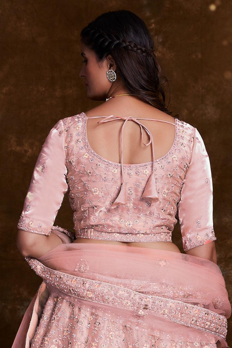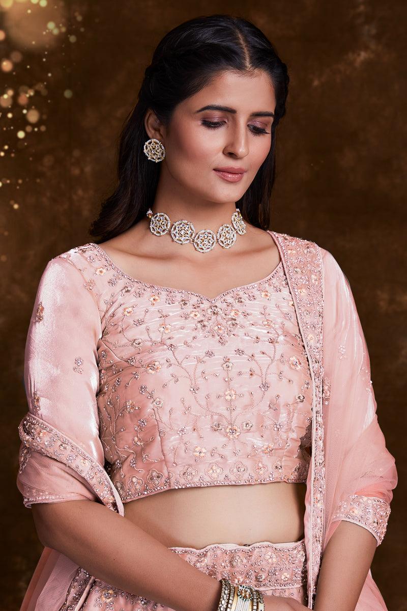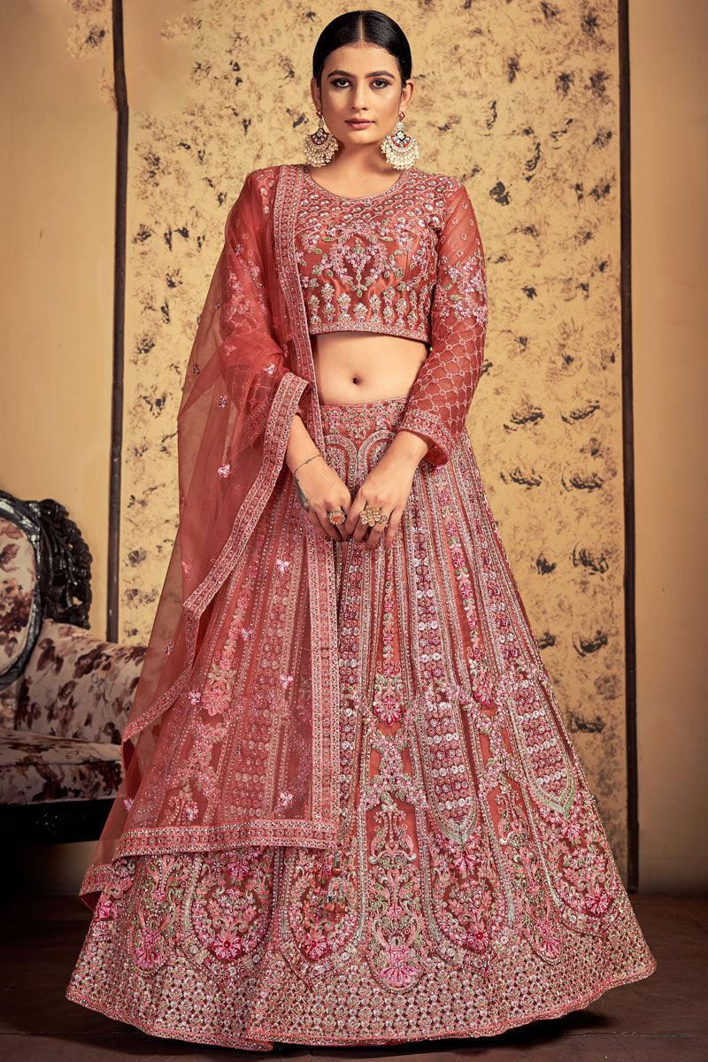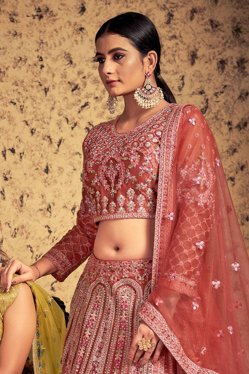 Sangeet Wear Peach Color Tempting Net Readymade Lehenga Choli