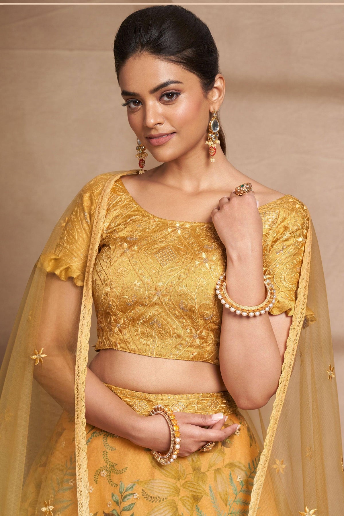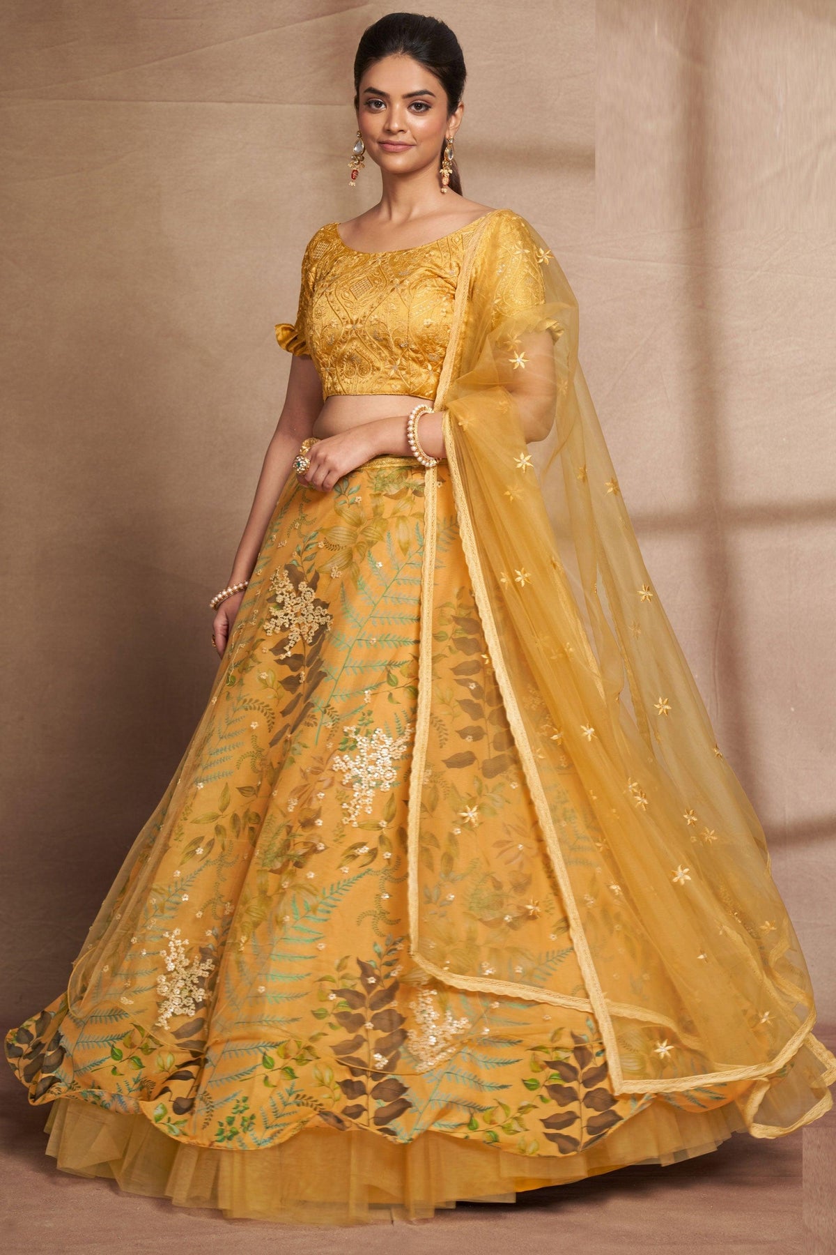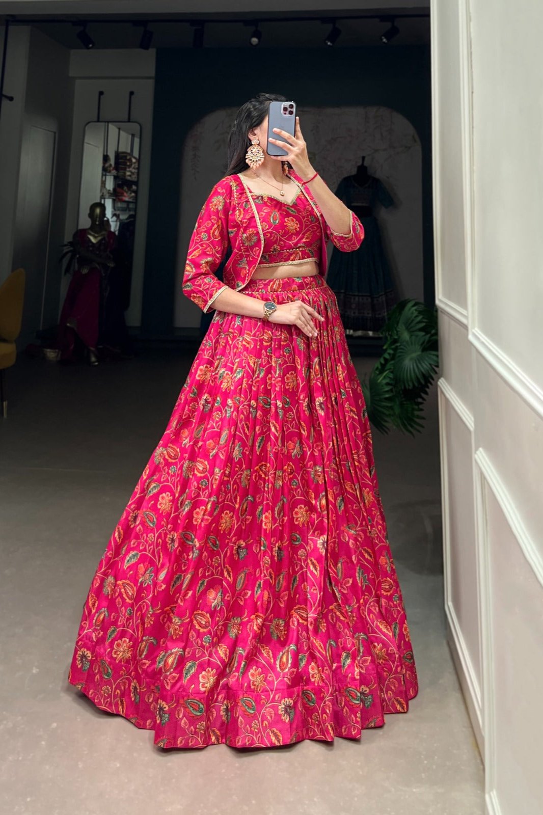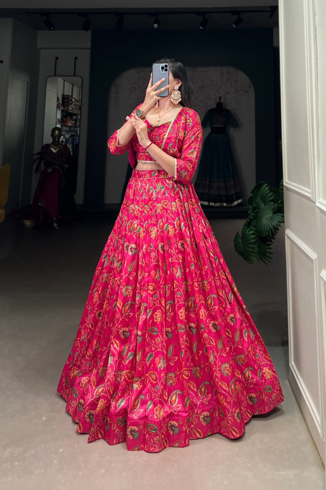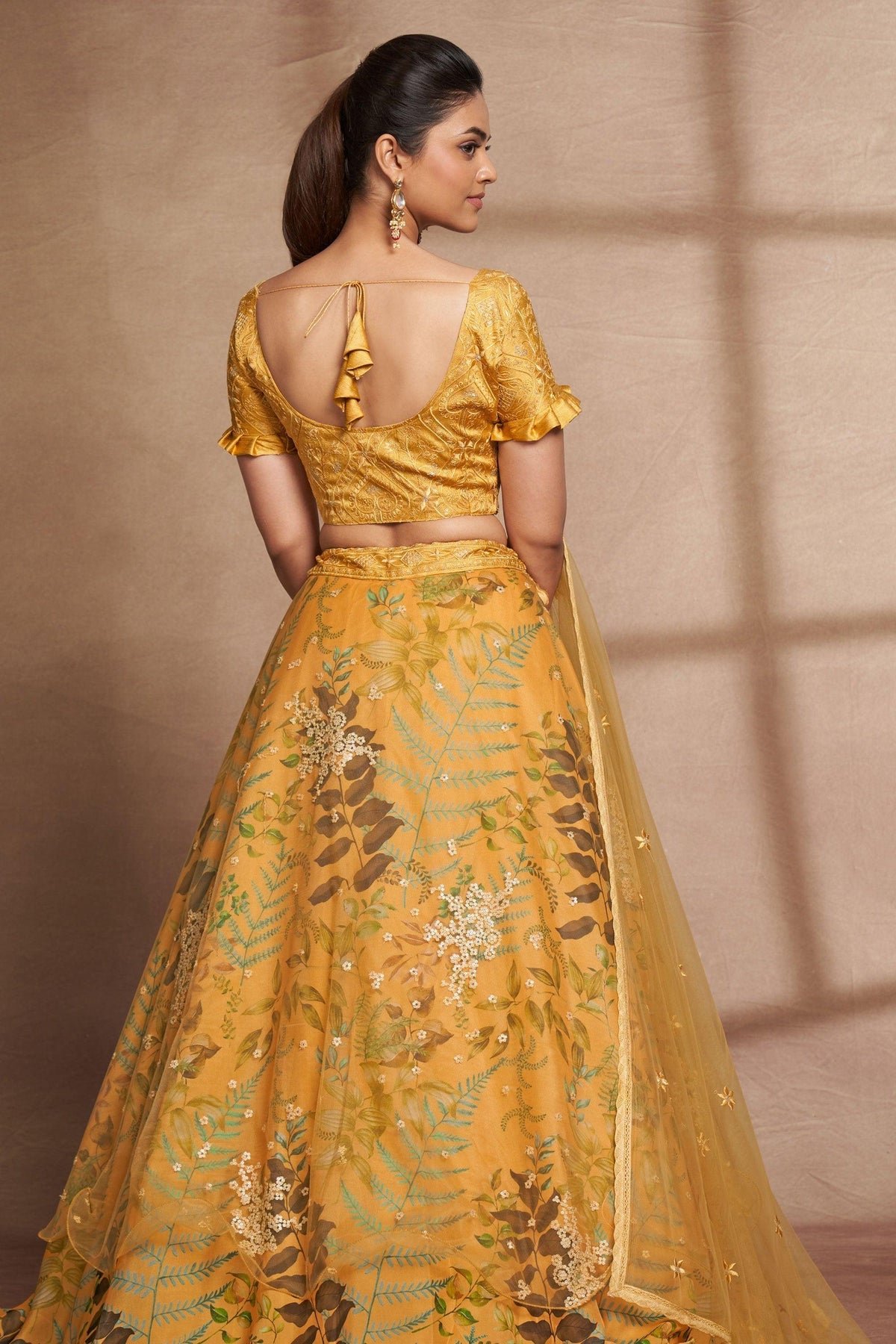 - lehenga is semi-stitched with can-can and canvas. It can be customized up to 42 inches.
