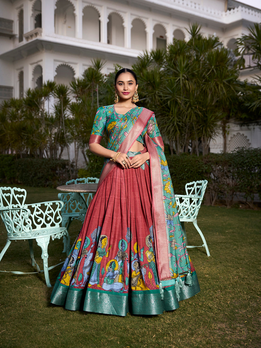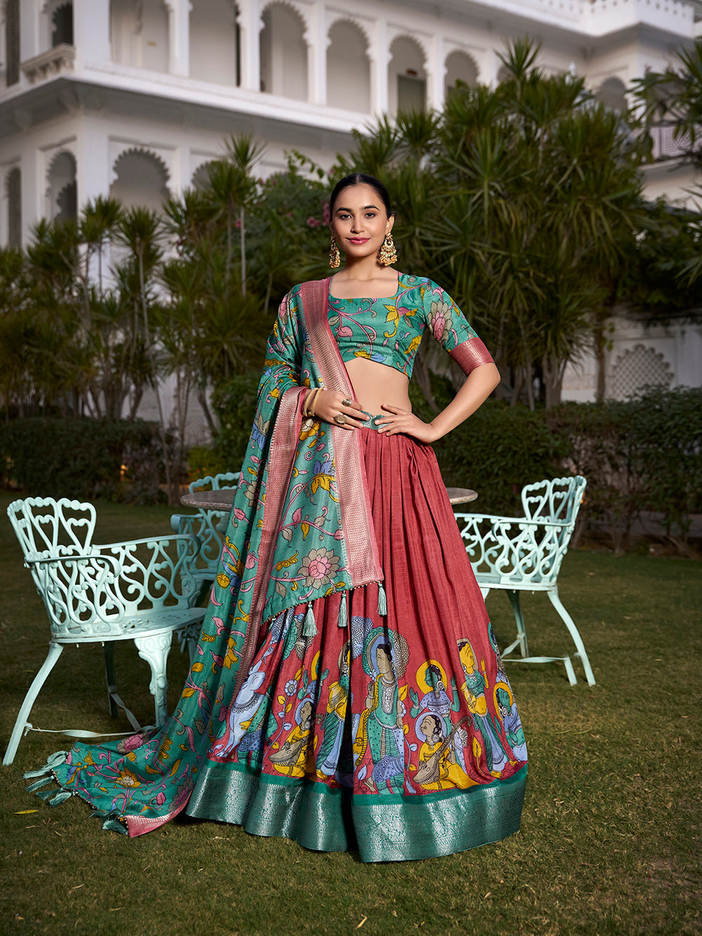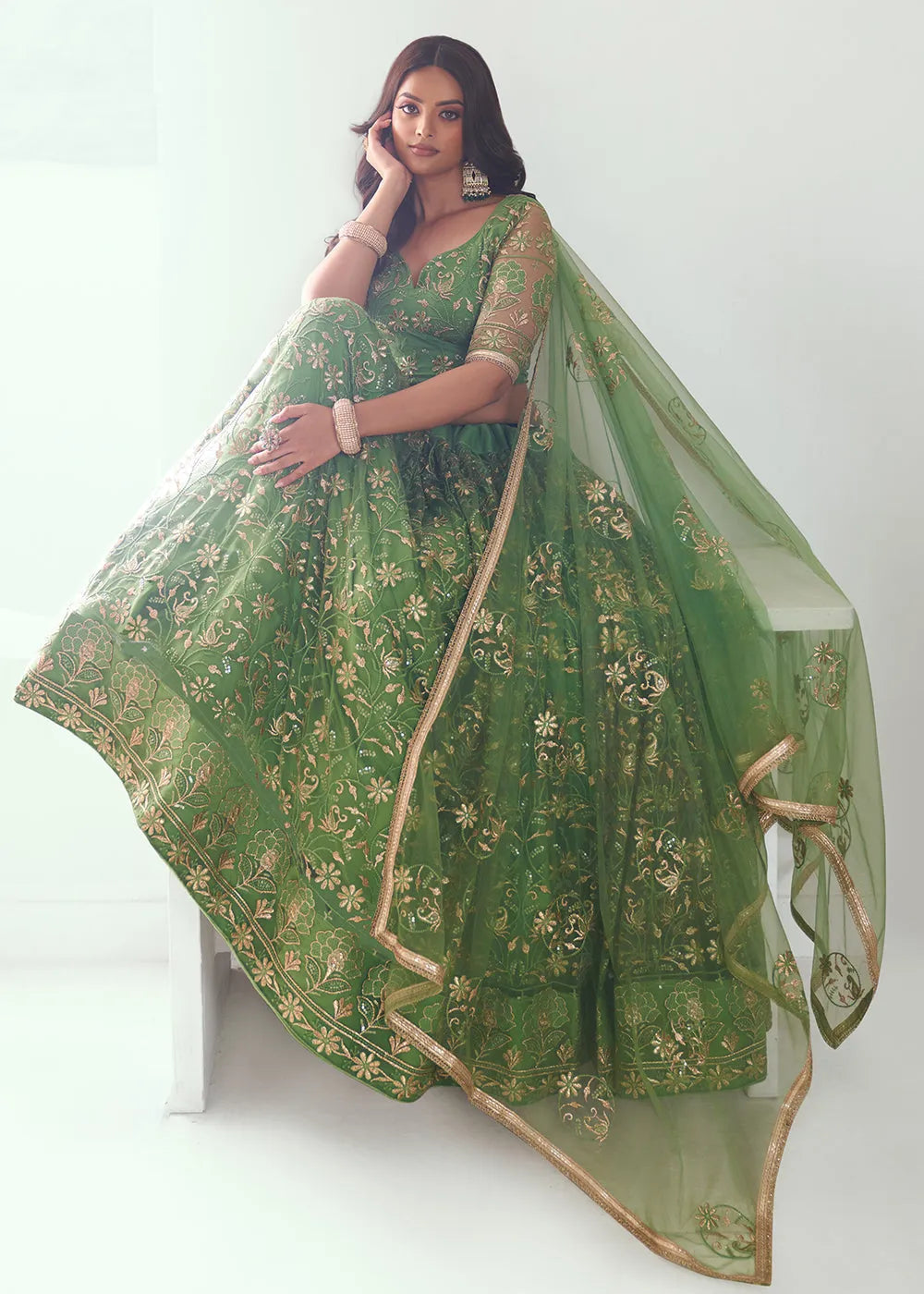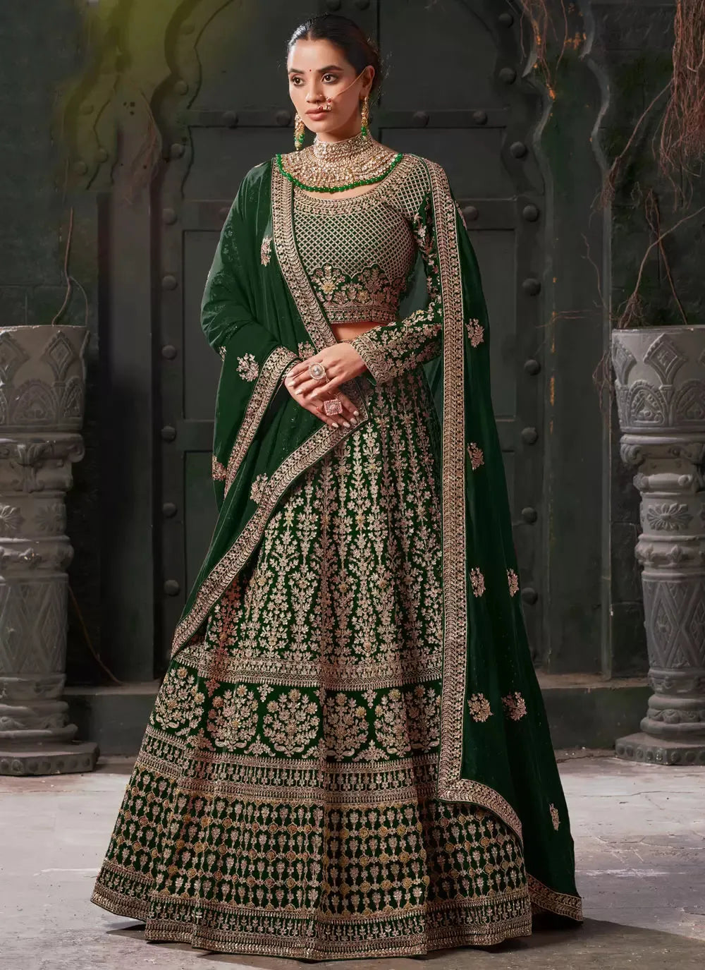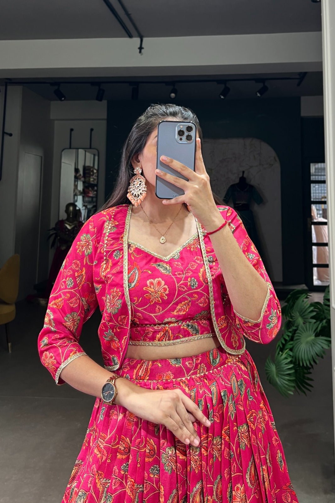 - lehenga is semi-stitched with can-can and canvas. It can be customized up to 42 inches.