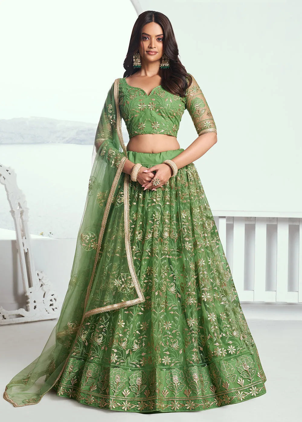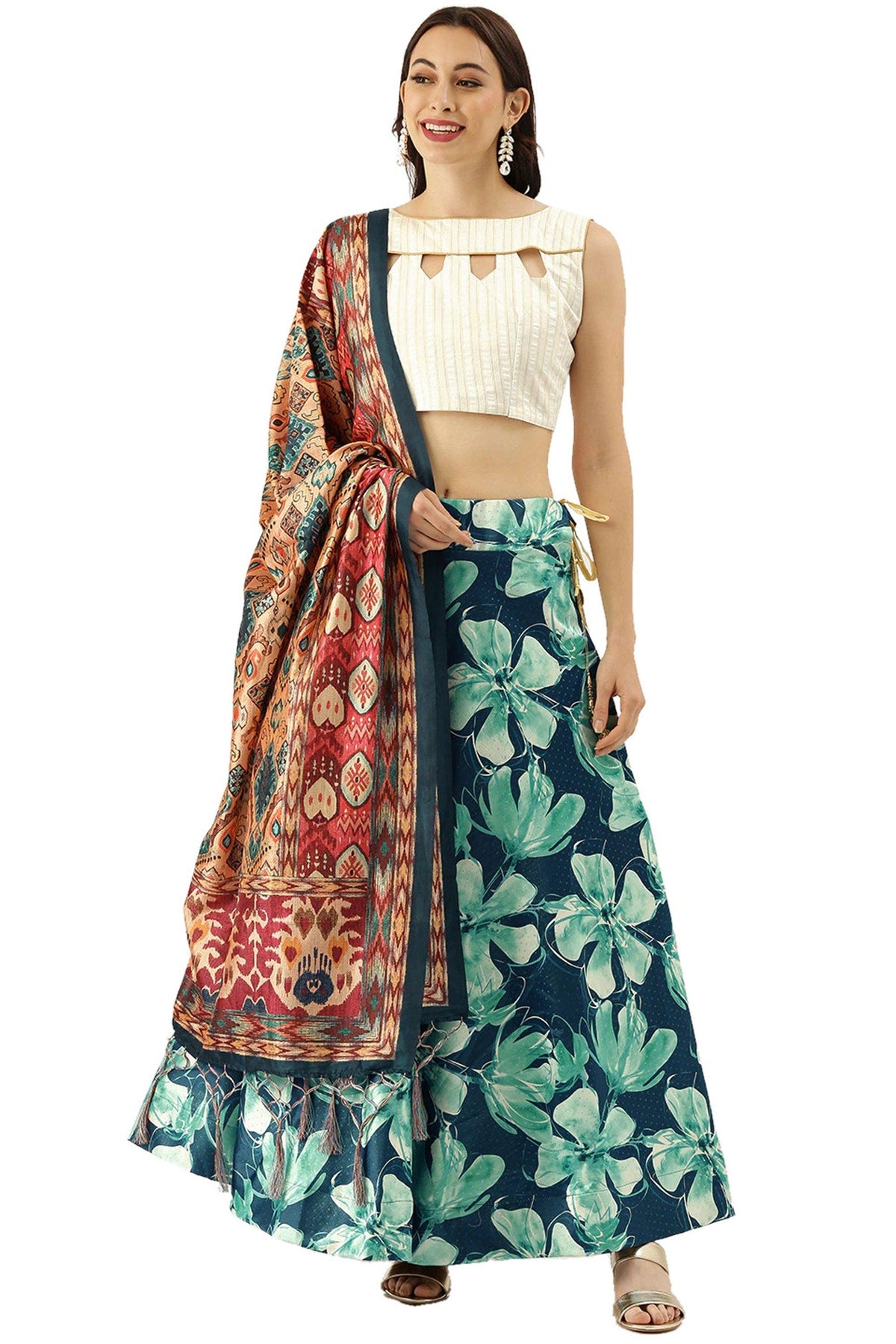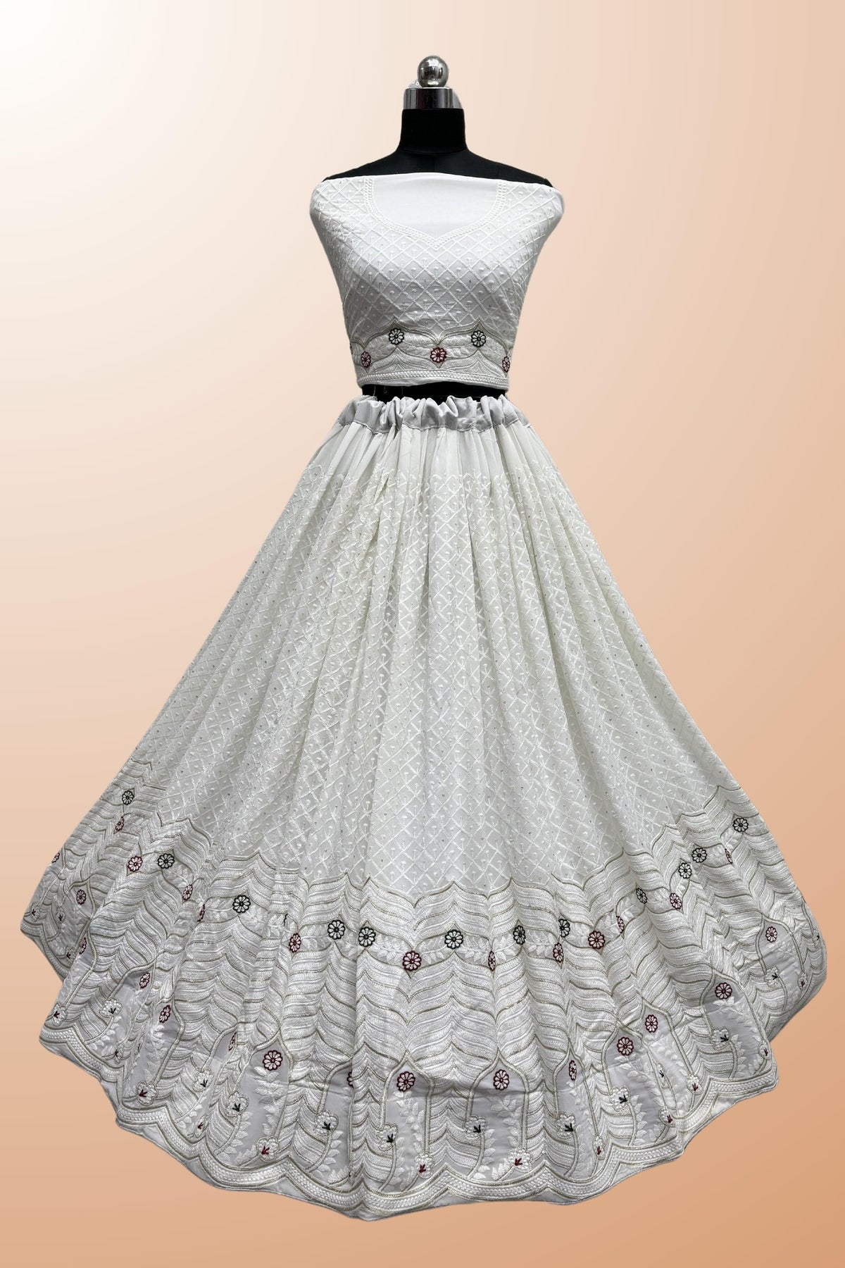 - You can wear this white lehenga choli at weddings, functions or any occasion. Drape this lehenga choli with different jewelry to look attractive.