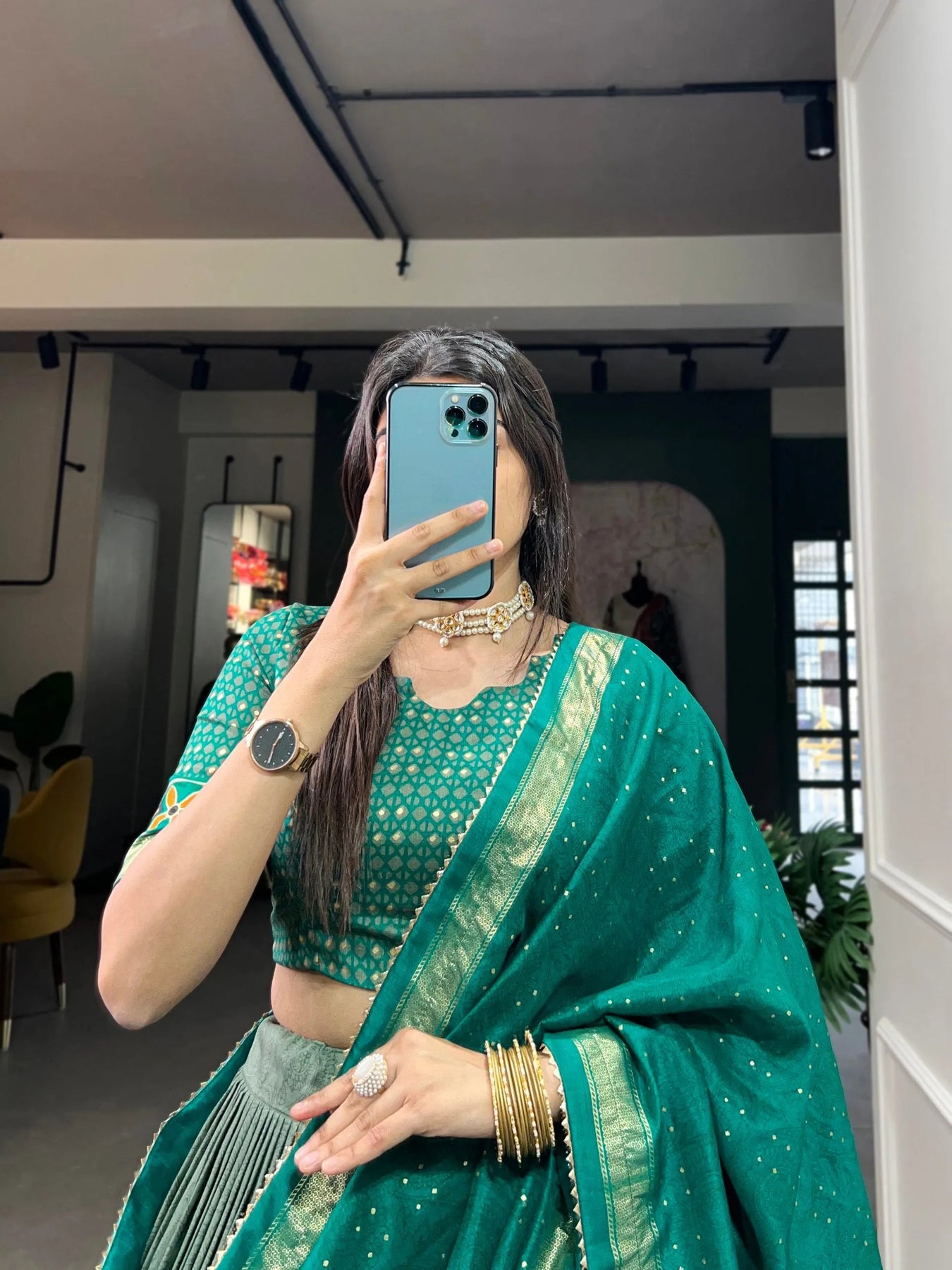 - There is beautiful lagdi patta in the bottom of lehenga which increase the look of lehenga.