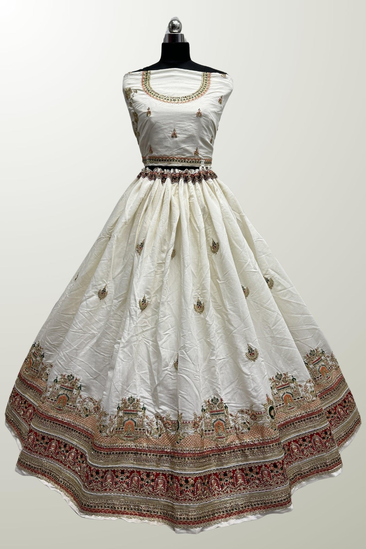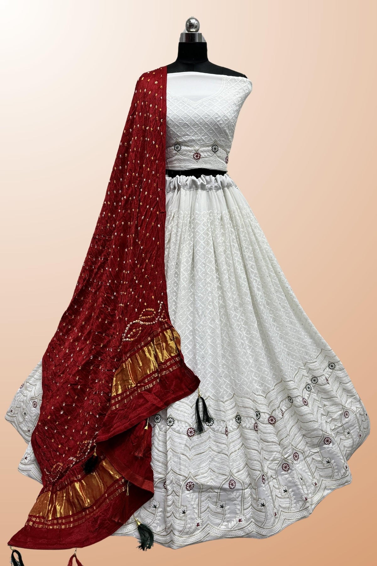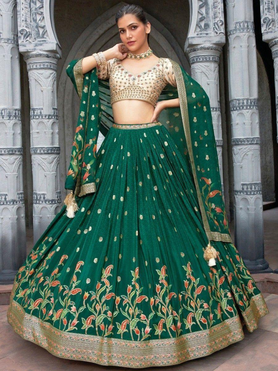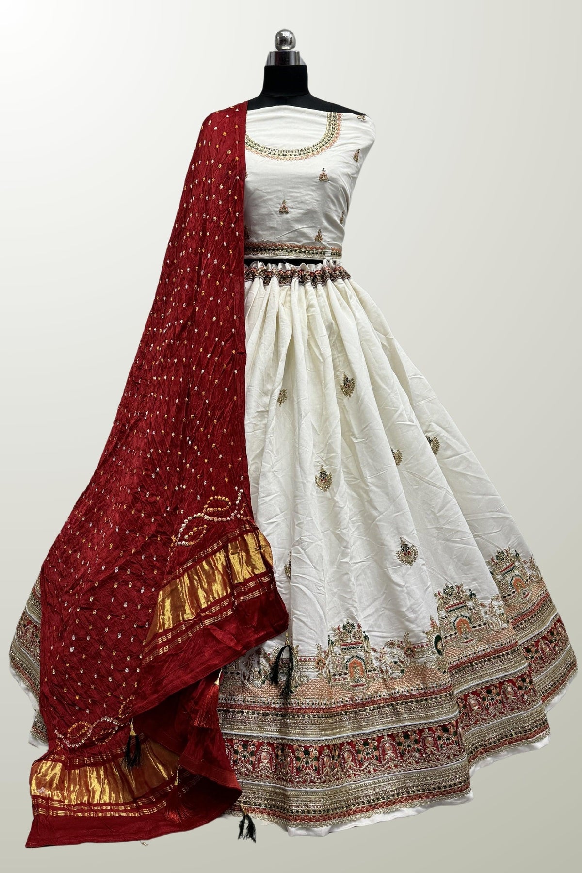 White Color Dyeing With Lagdi Patta Gaji Silk Lehenga Choli