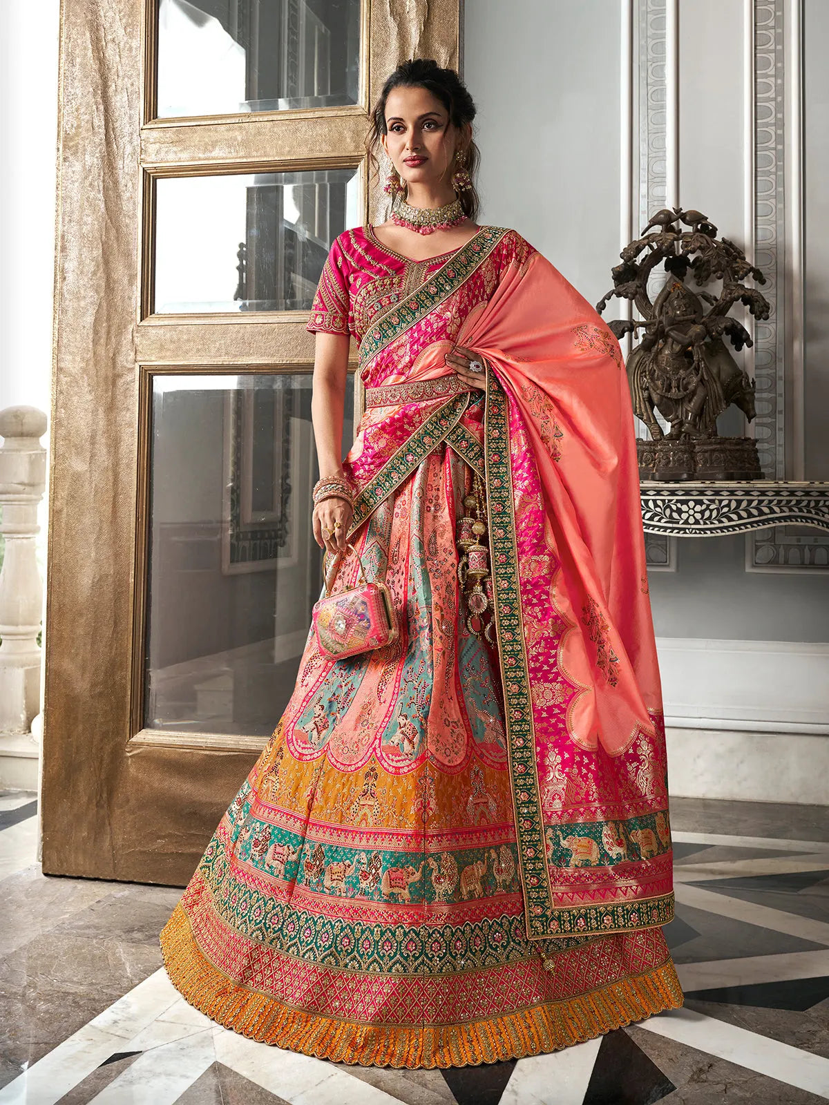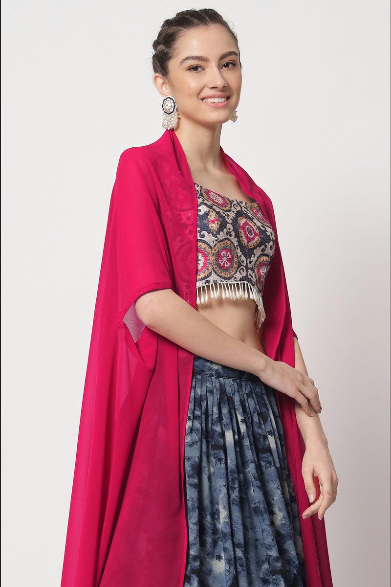 - It also comes with a gaji silk dupatta which has bandhani print and tassels.