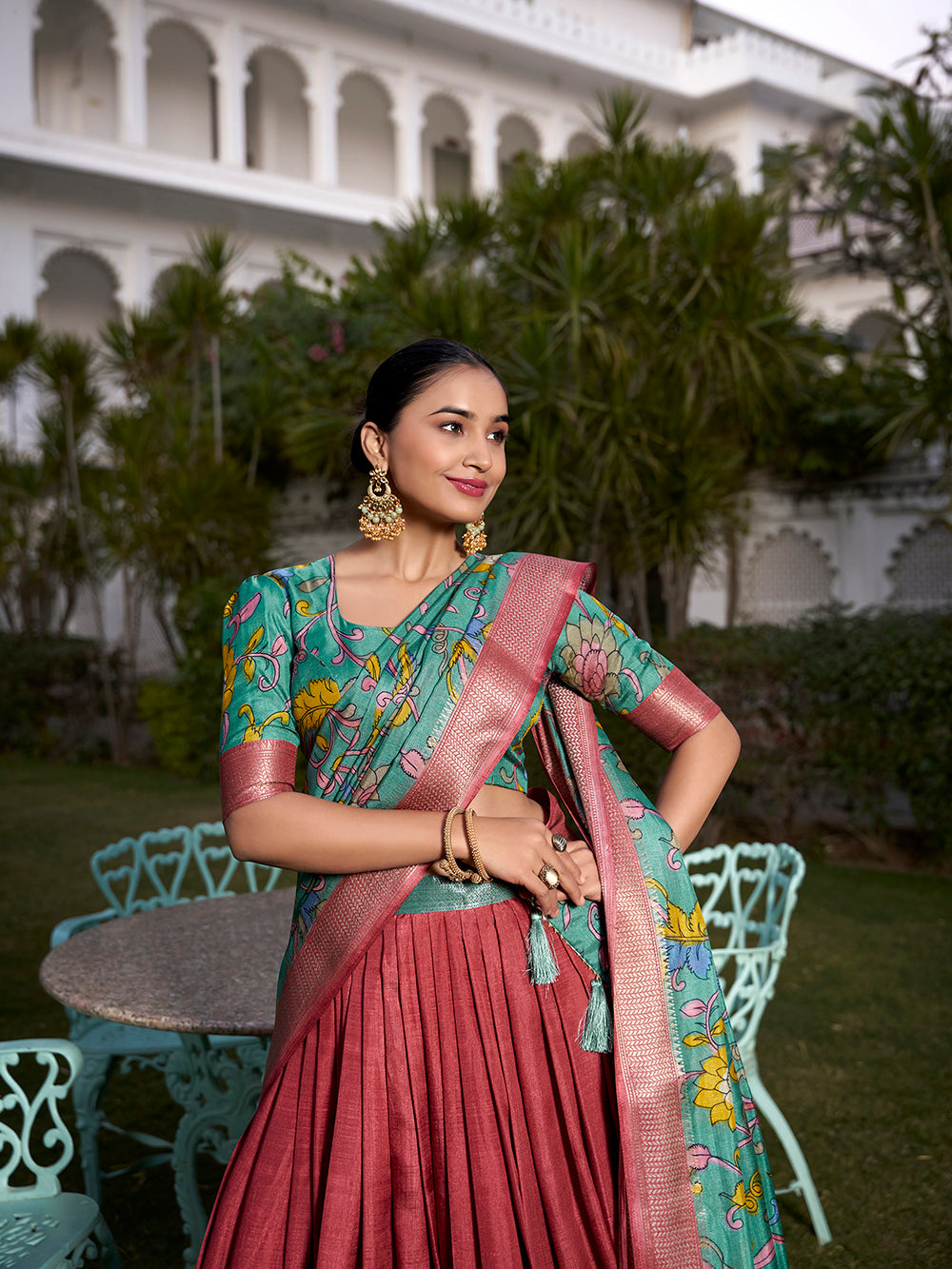 - It's available with fully unstitched similar blouse material.