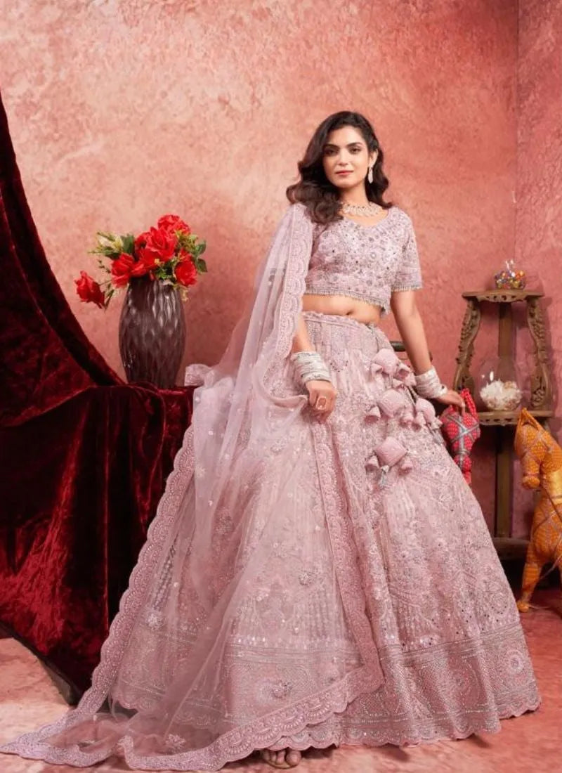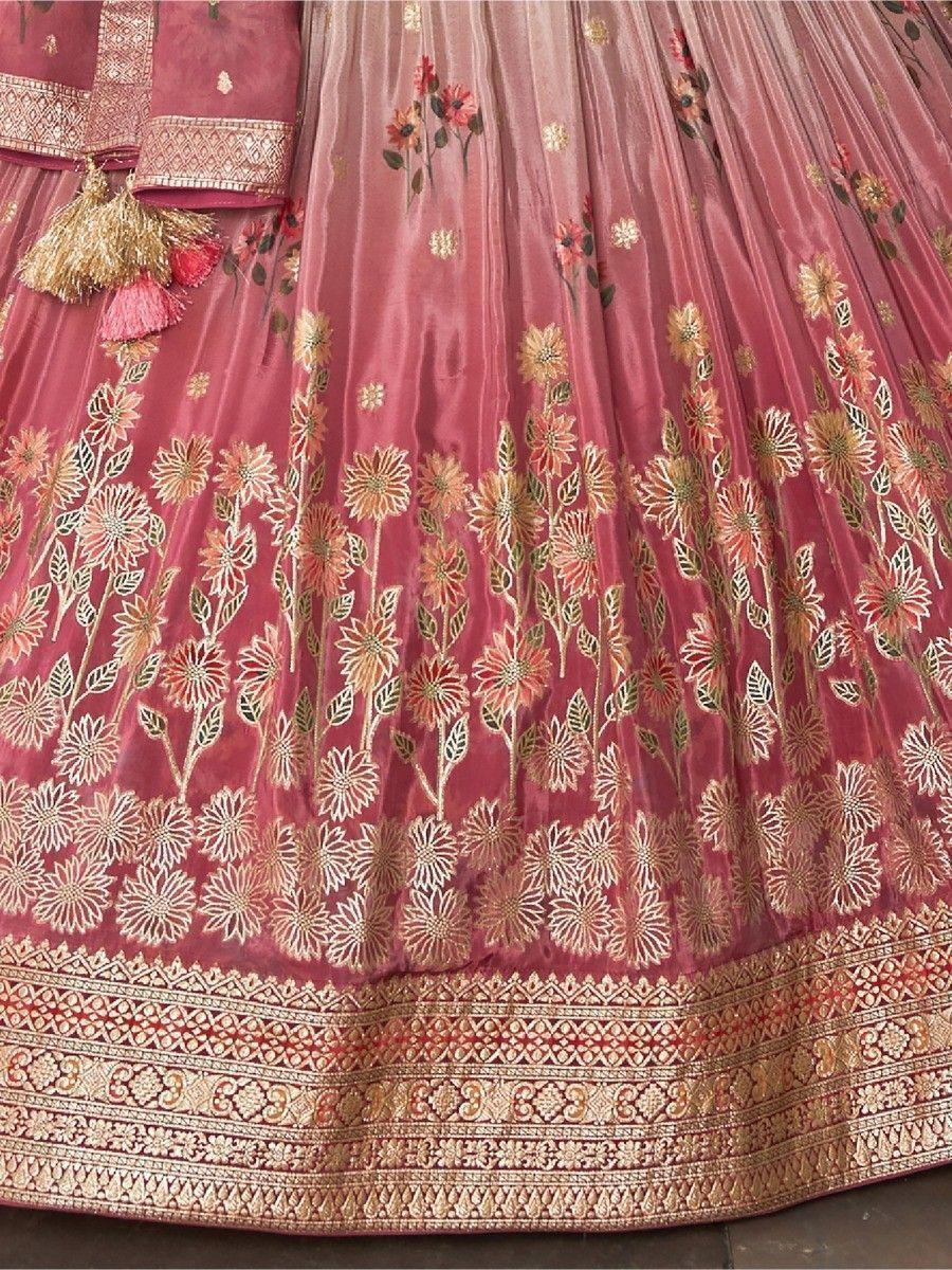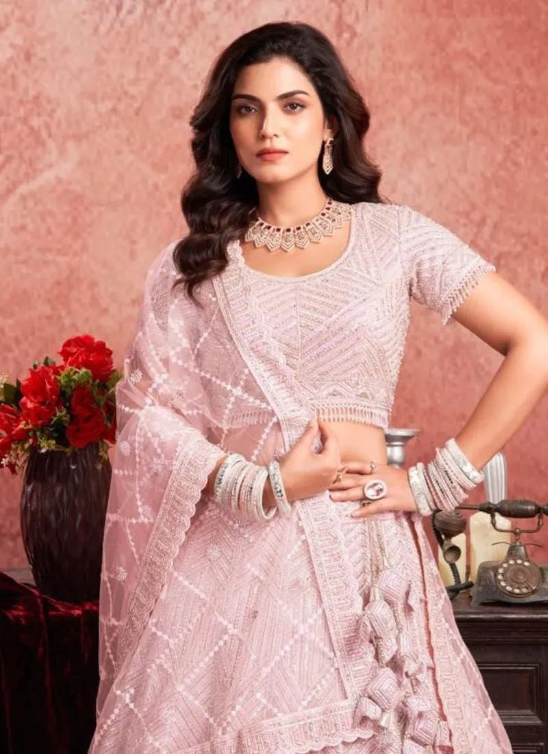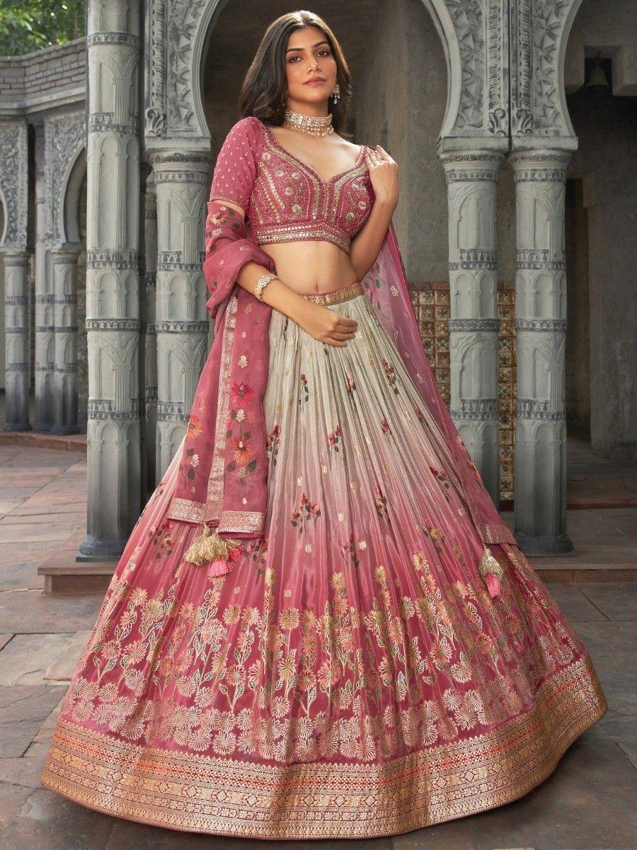 Enhance your ethnic wardrobe with this exquisite pink Dola silk lehenga choli set from Suratikart. Its luxurious fabric, intricate detailing, and vibrant design make it a remarkable choice for any special occasion, allowing you to look and feel your best.