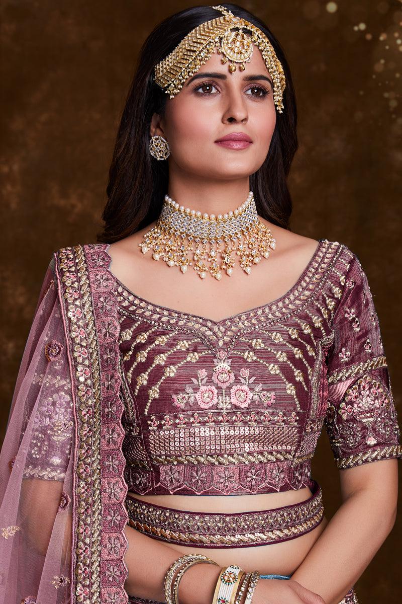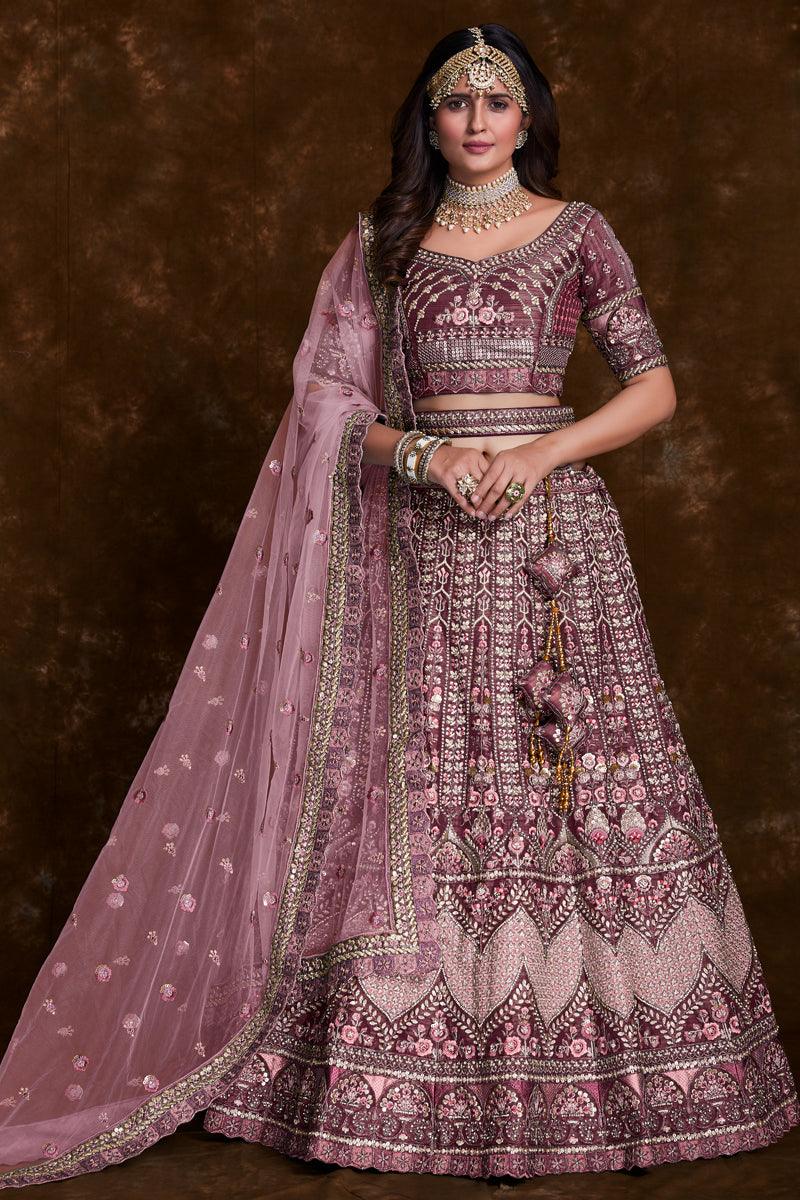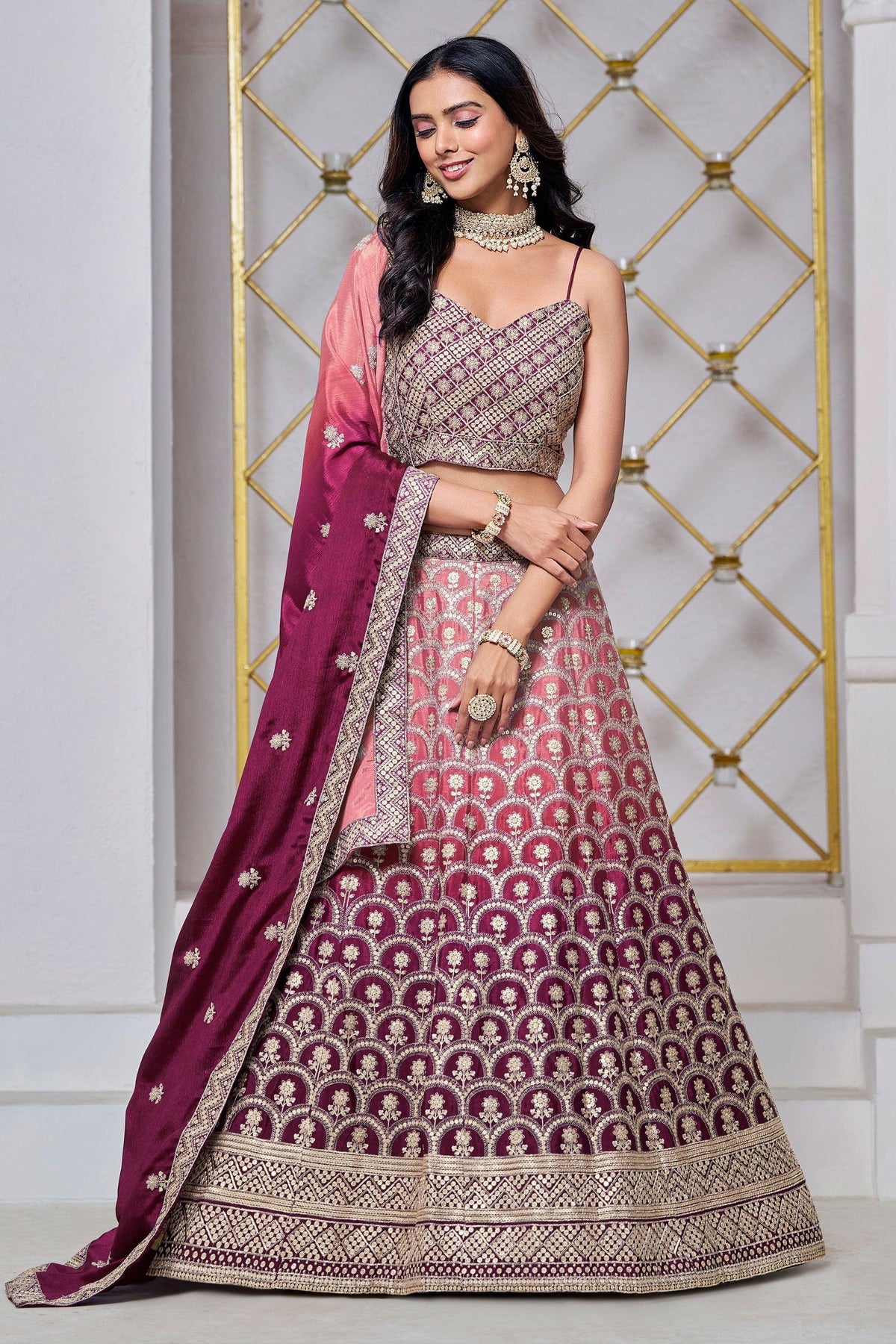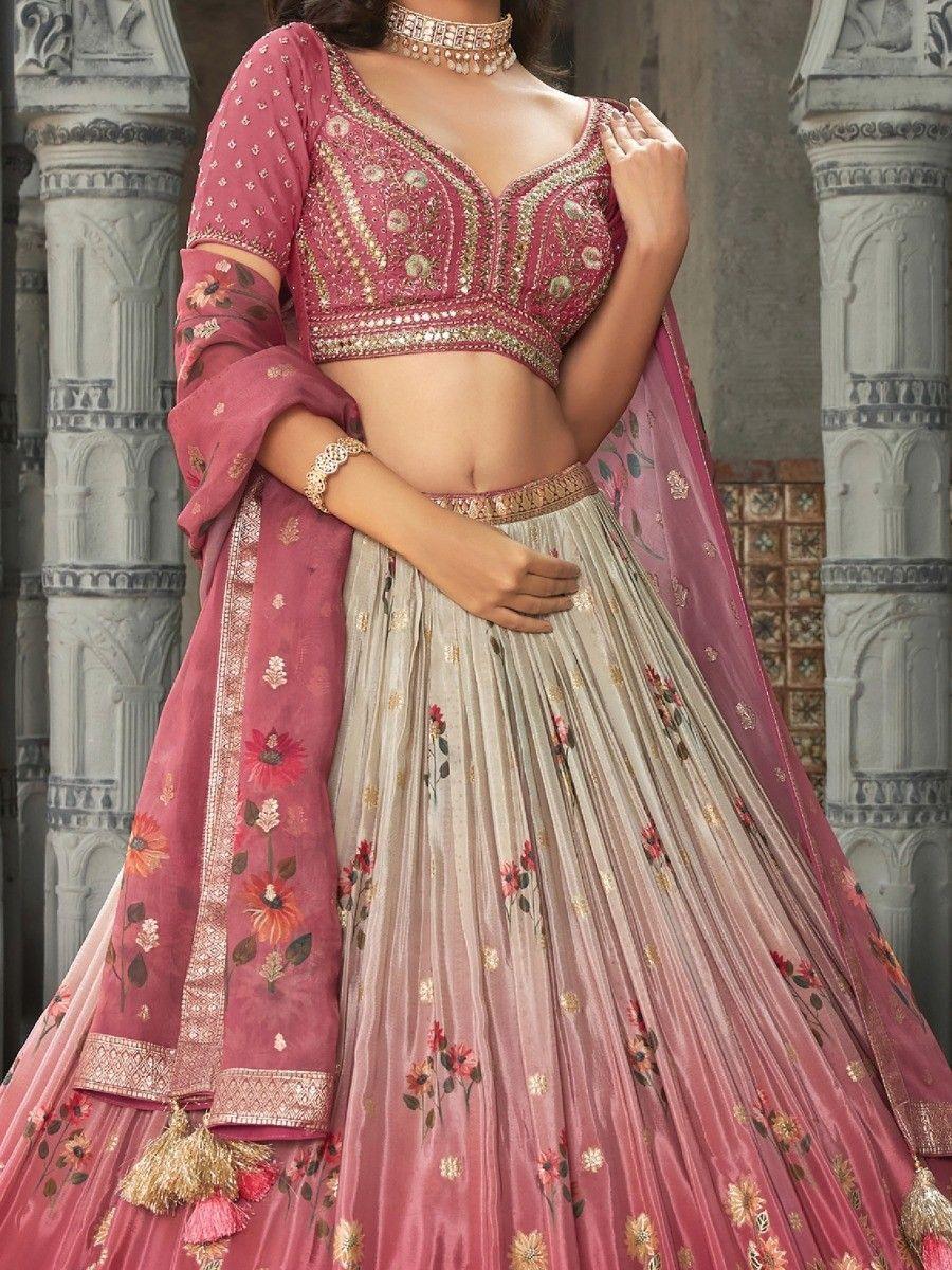 Enhance your ethnic wardrobe with this exquisite pink Dola silk lehenga choli set from Suratikart. Its luxurious fabric, intricate detailing, and vibrant design make it a remarkable choice for any special occasion, allowing you to look and feel your best.